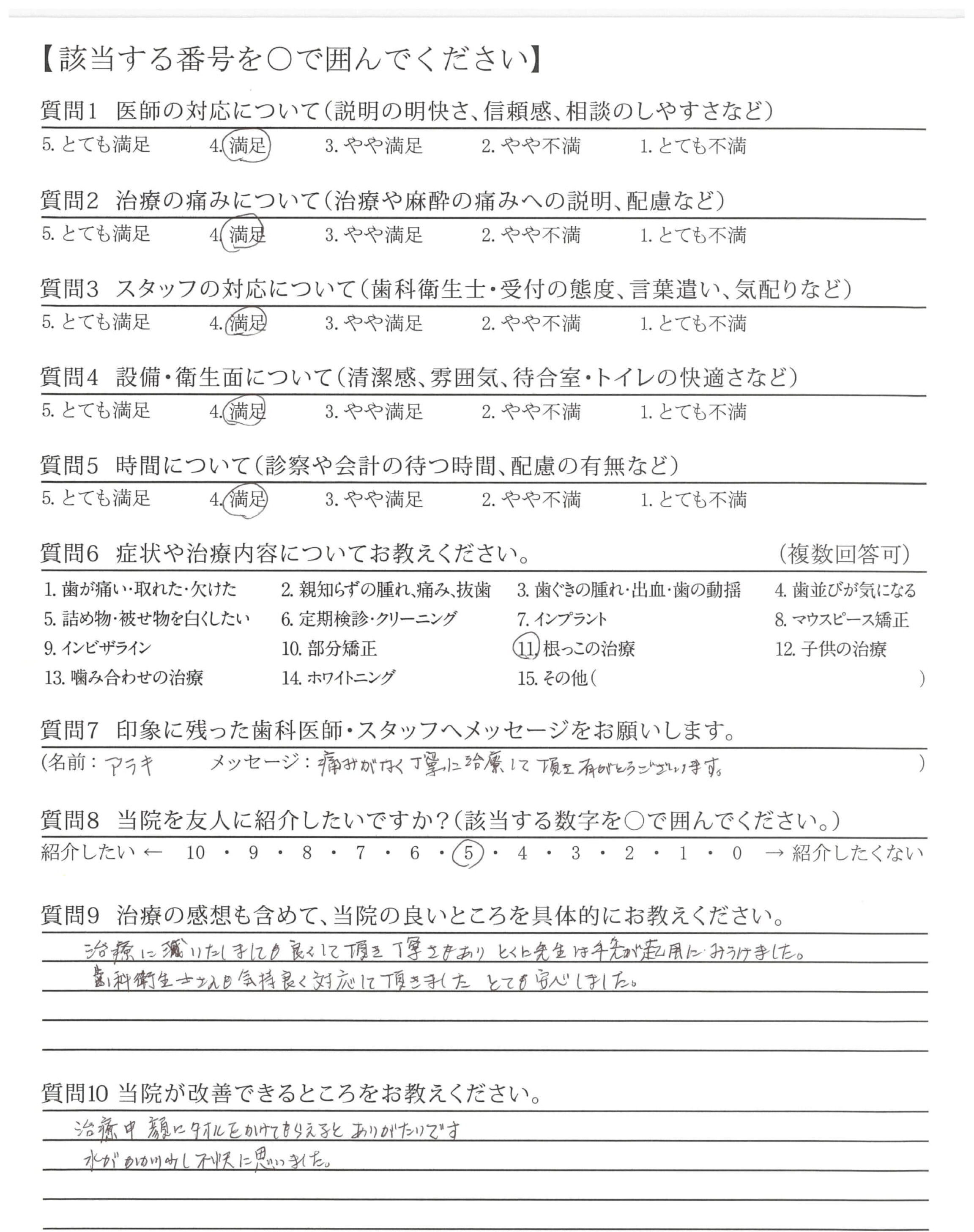 計画的に治療をすすめて下さり、その都度丁寧に説明して下さって安心感がありました。