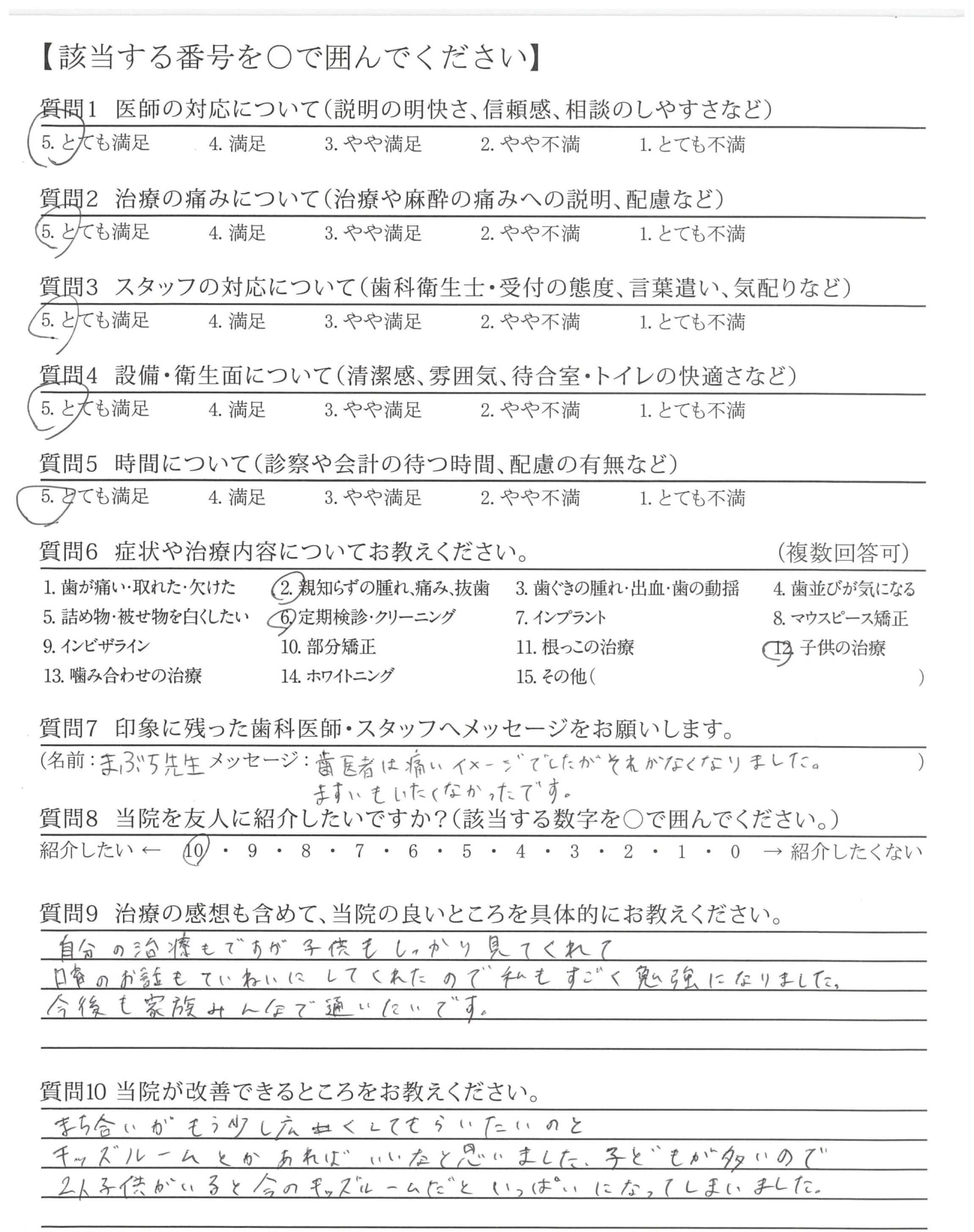 自分の治療もですが子供もしっかり見てくれて口育のお話もていねいにしてくれたので私もすごく勉強になりました。