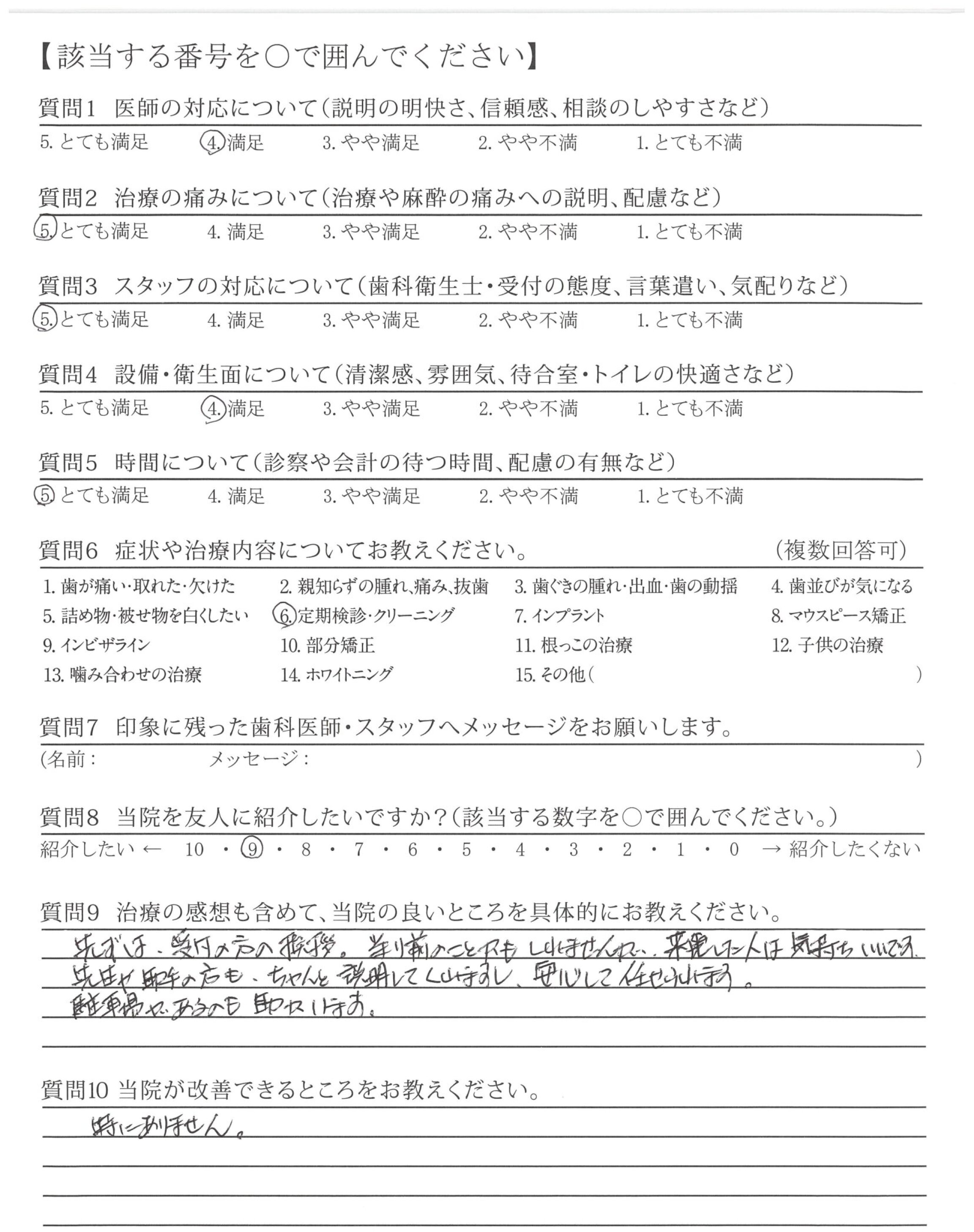 ・治療中の声かけも気配りができてて、良かった。(安心できた)
