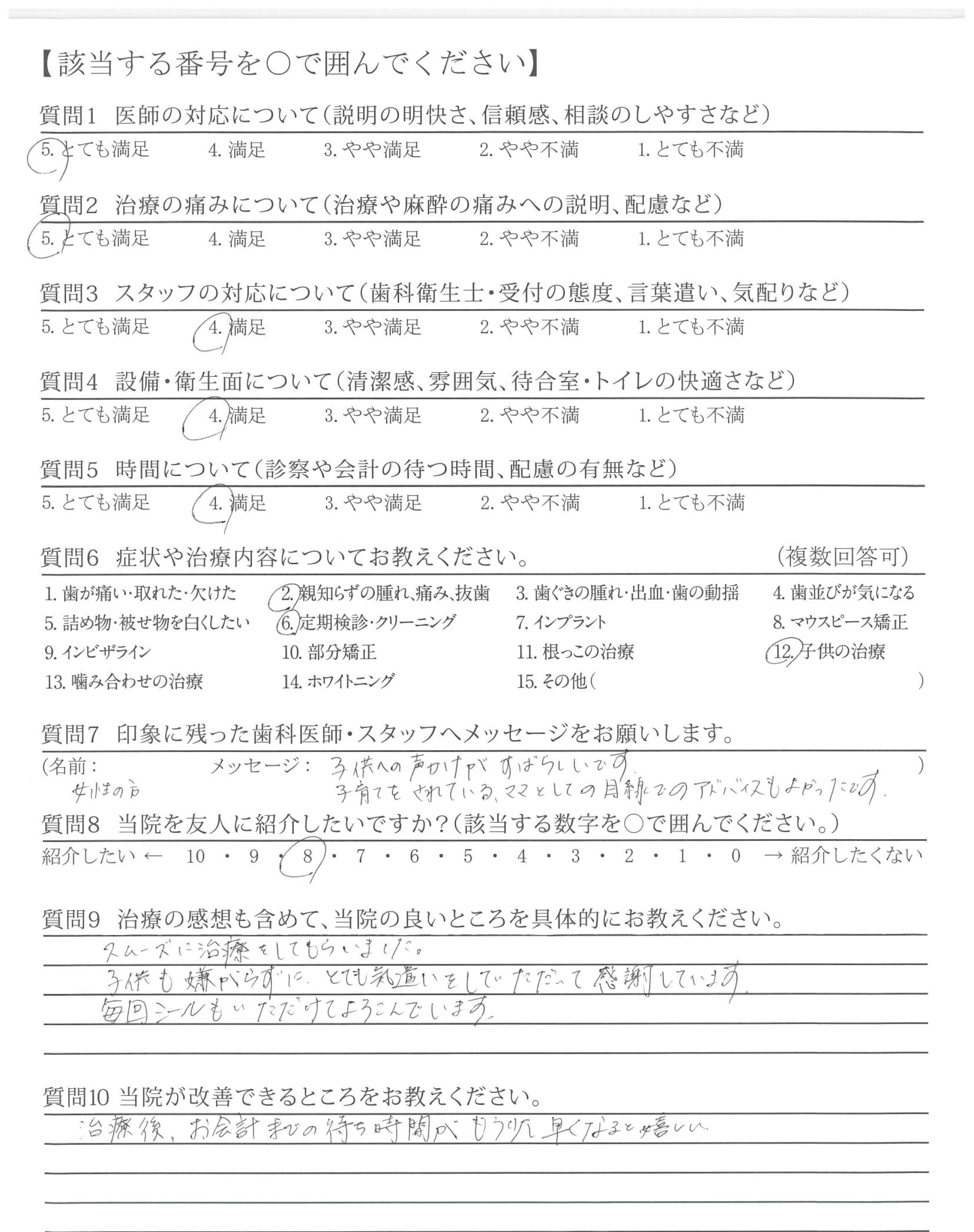 子供も嫌がらずに、とても気遣いをしていただいて感謝しています。