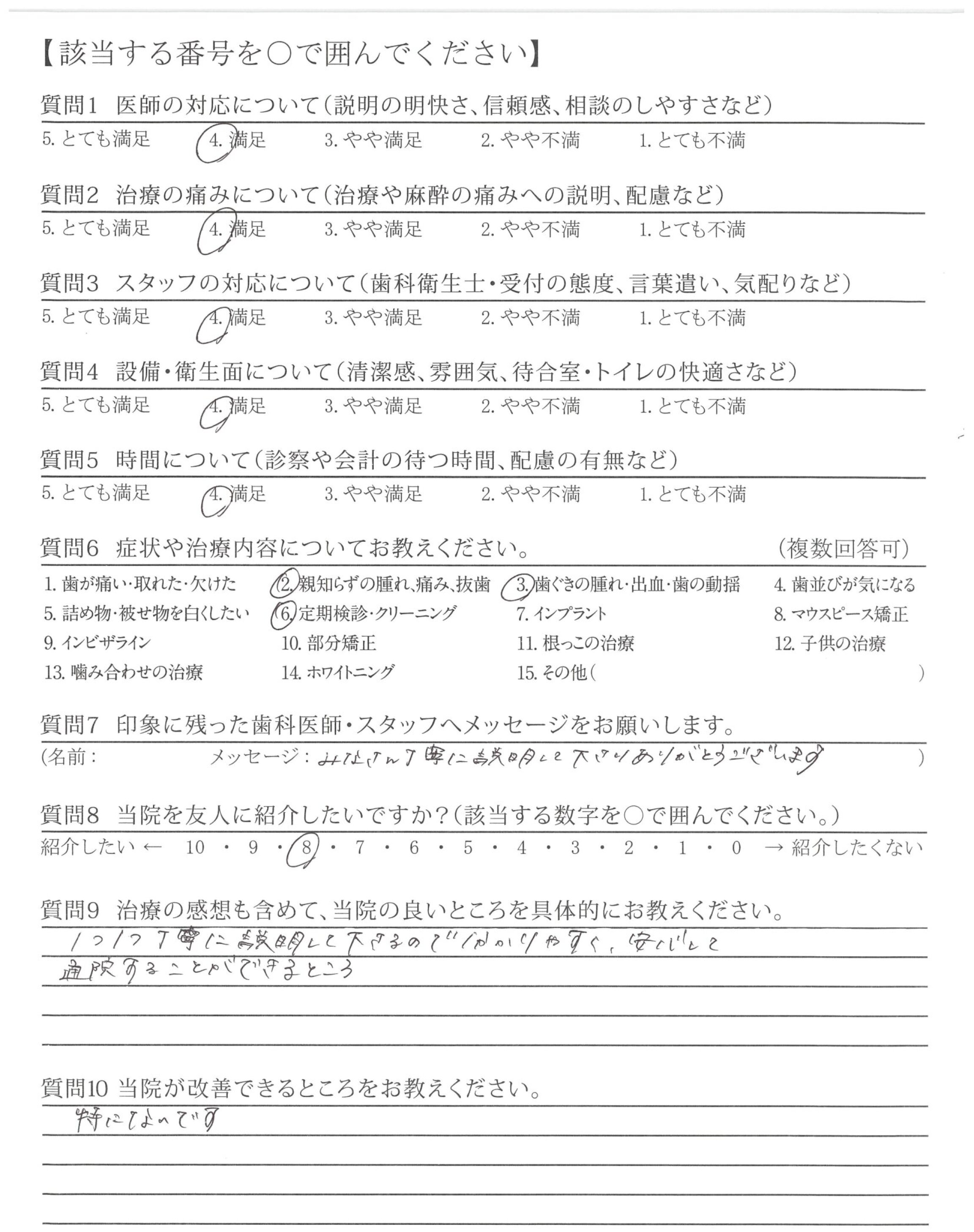 | 歯科医師の対応 | ![]() ![]() ![]() ![]() 4.62 |
