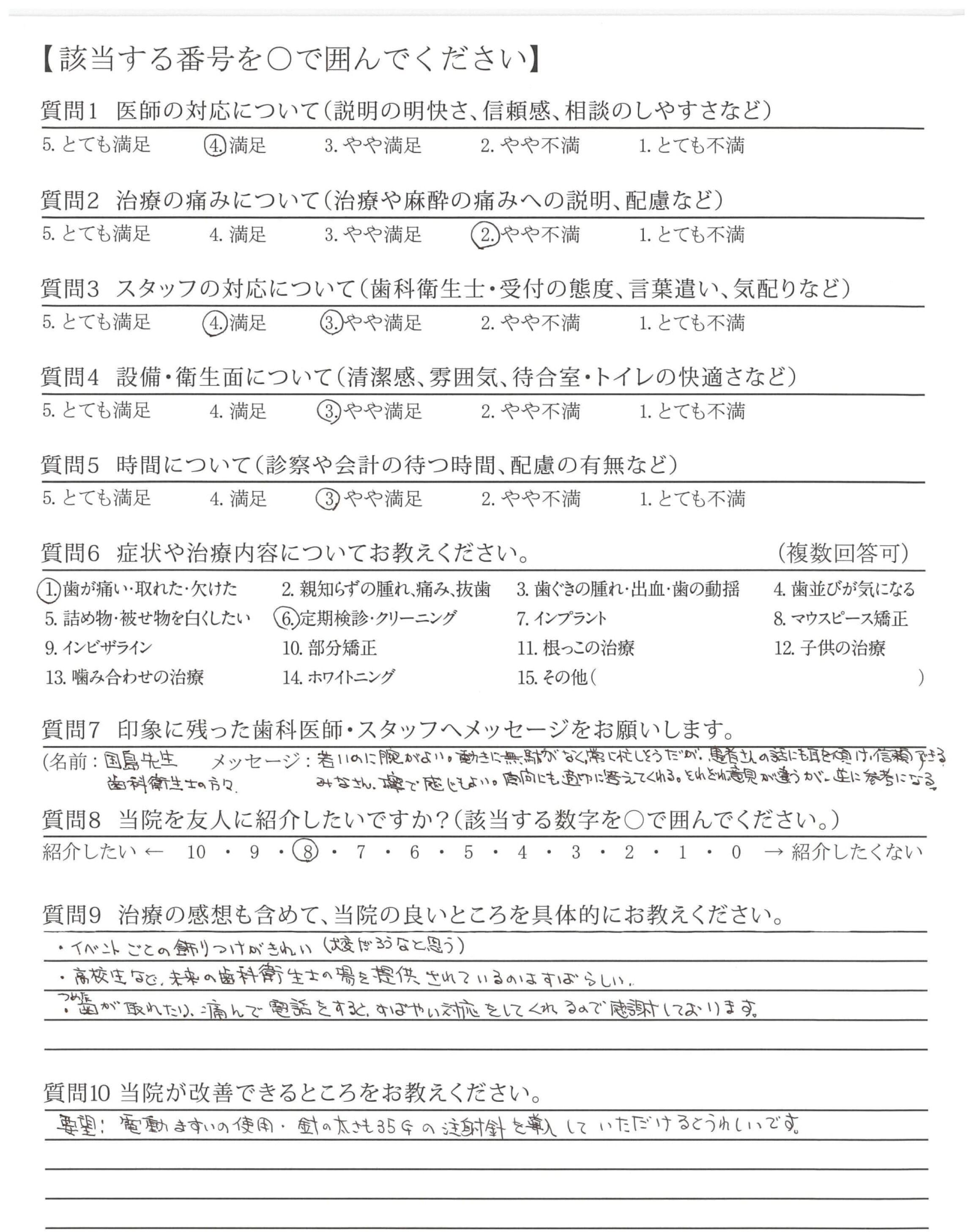 要望;電動ますいの使用・針の太さも35Gの注射針を導入していただけるとうれしいです。