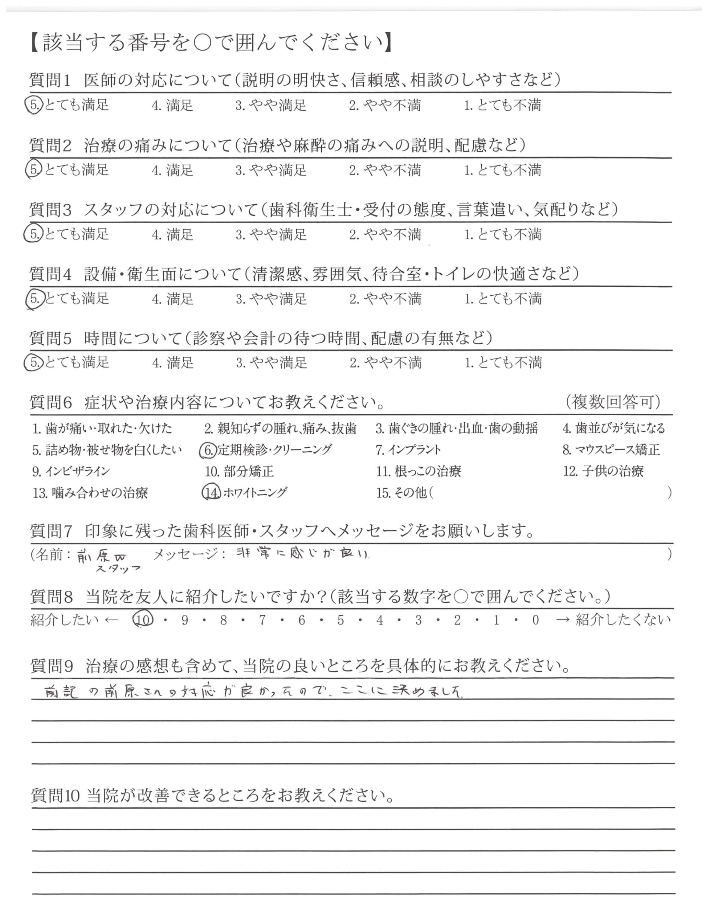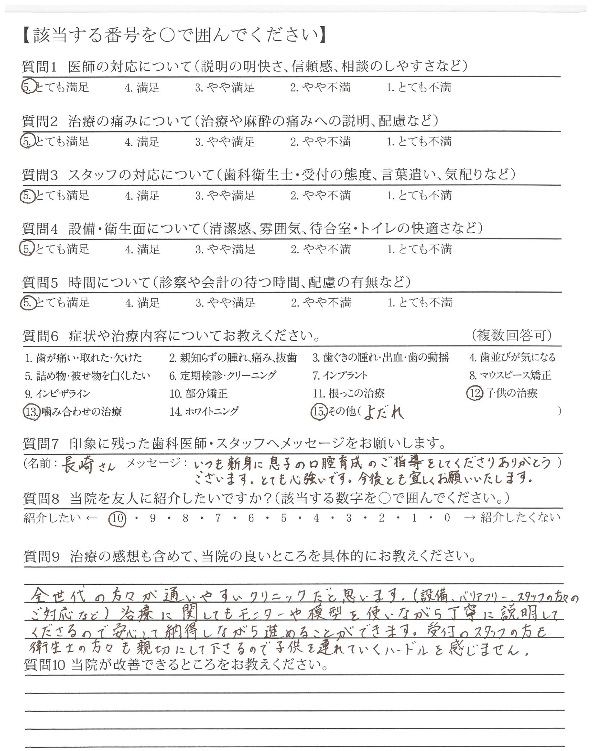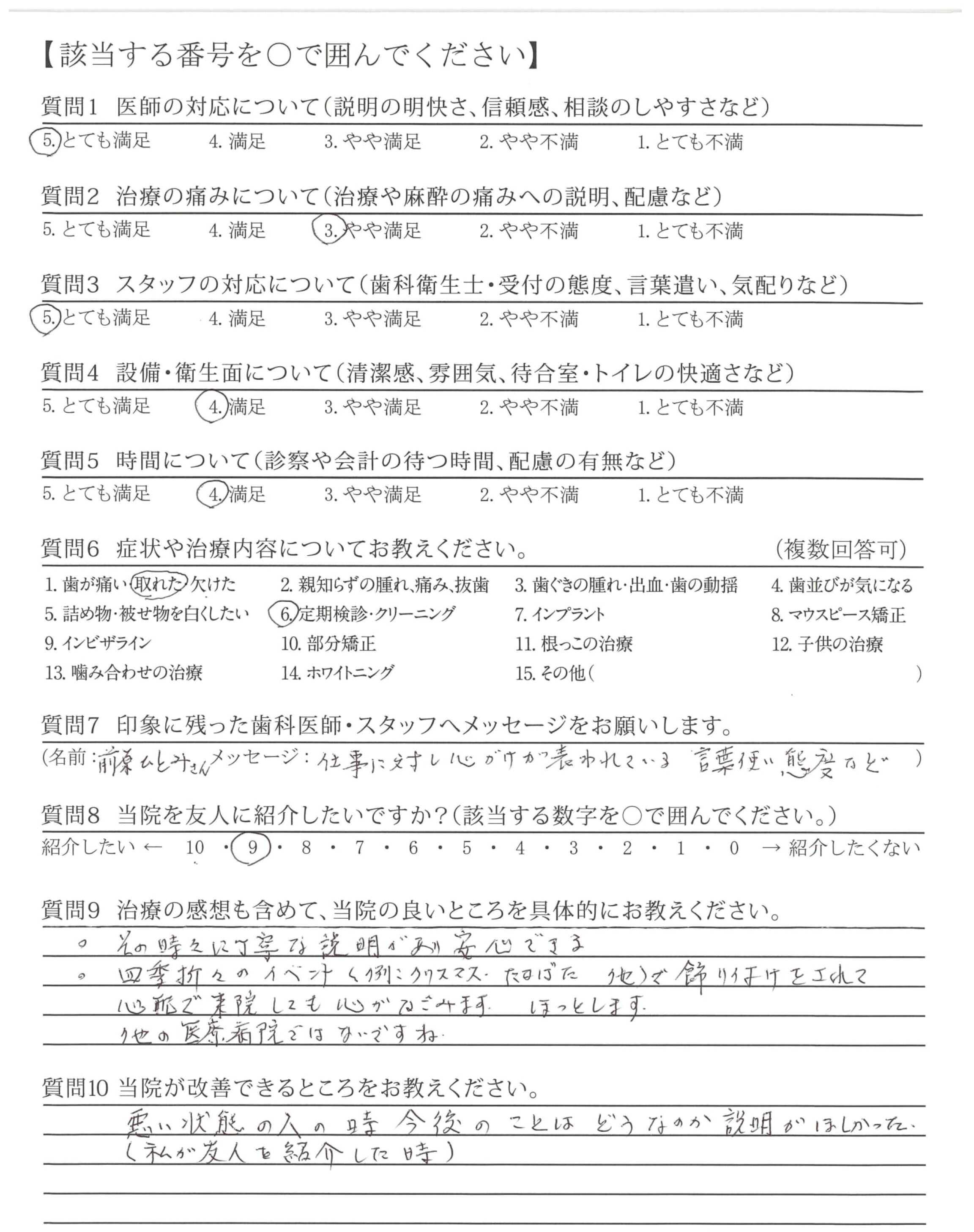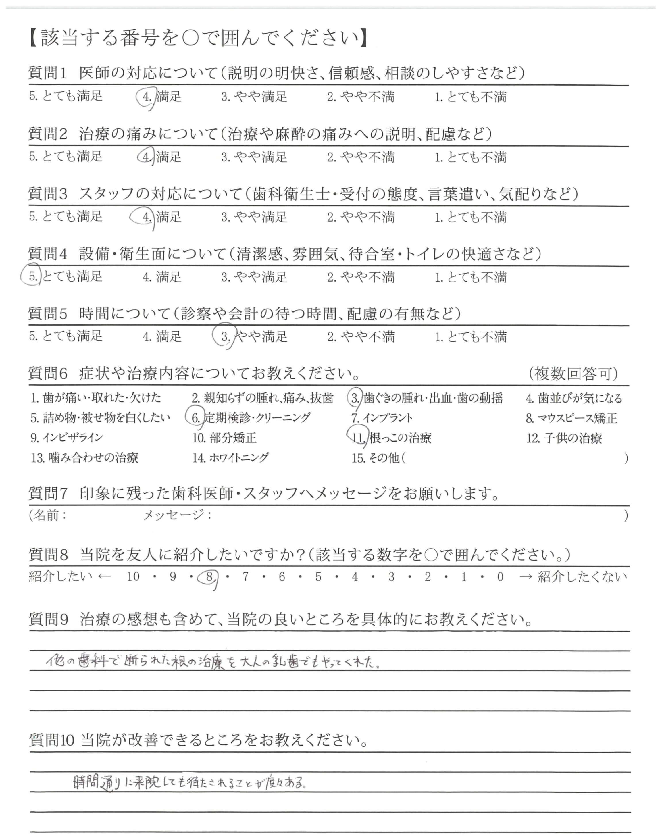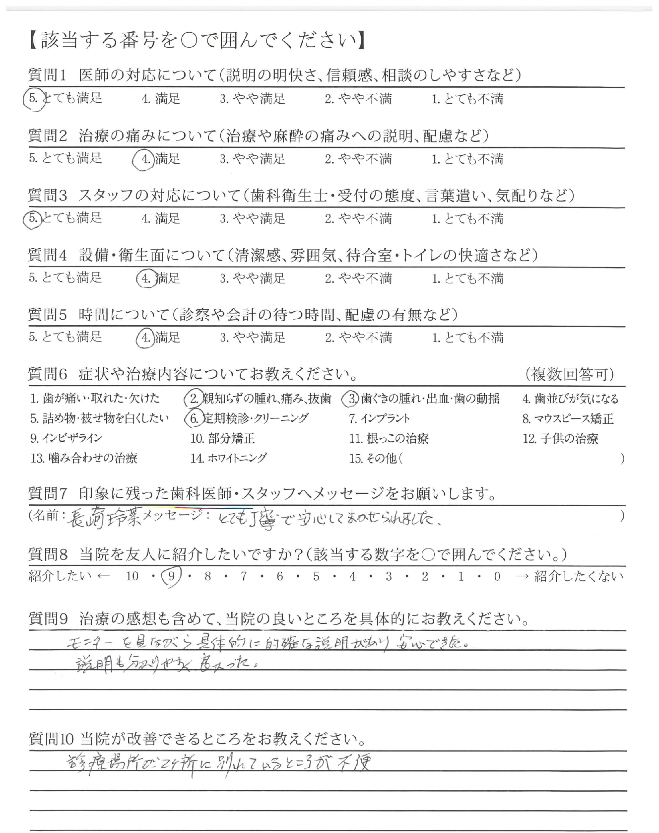 素晴らしい技術で治療して頂きありがとう御座いました。