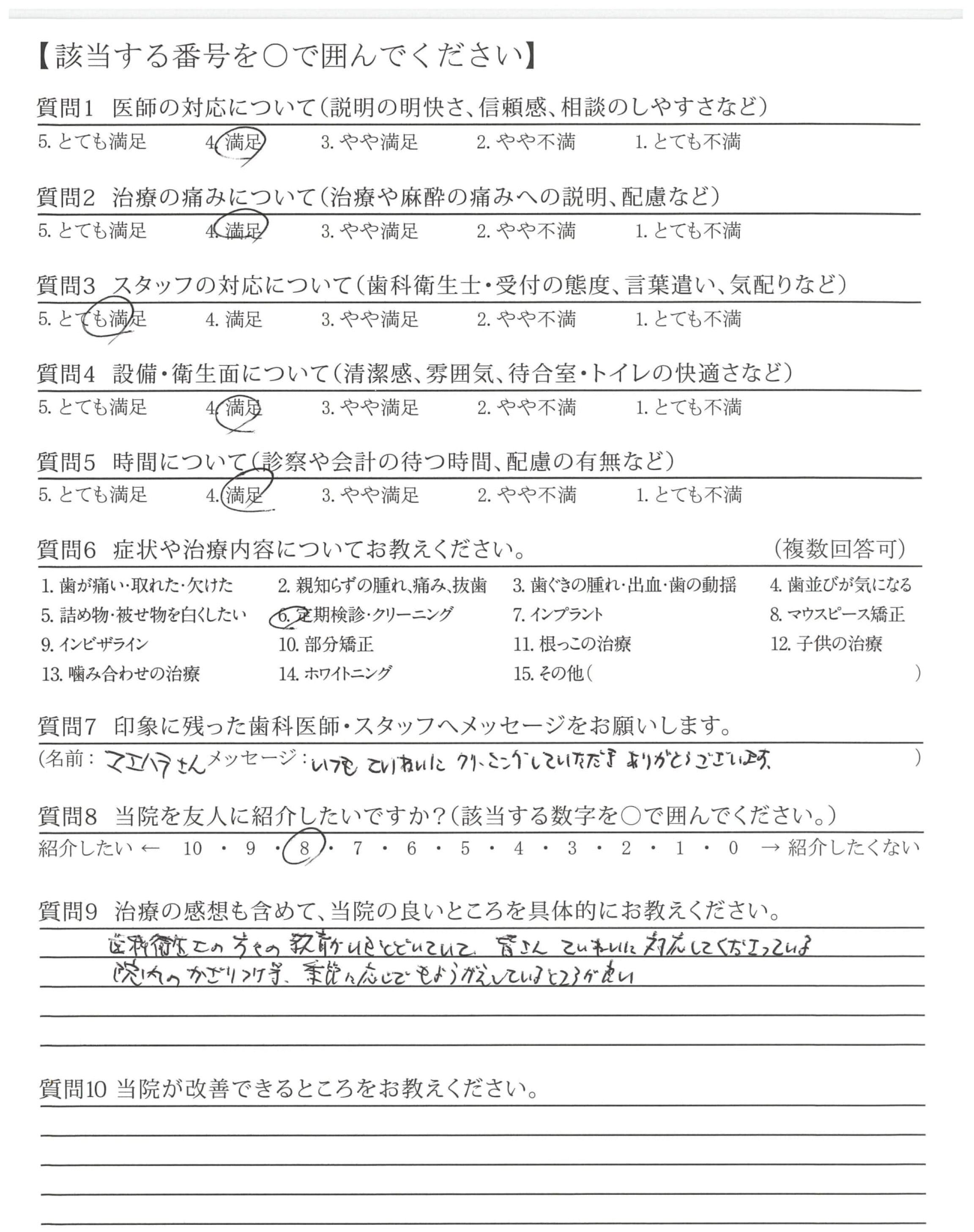 これからも定期検診・クリーニングをして頂き歯を大切にしたいと思います。
