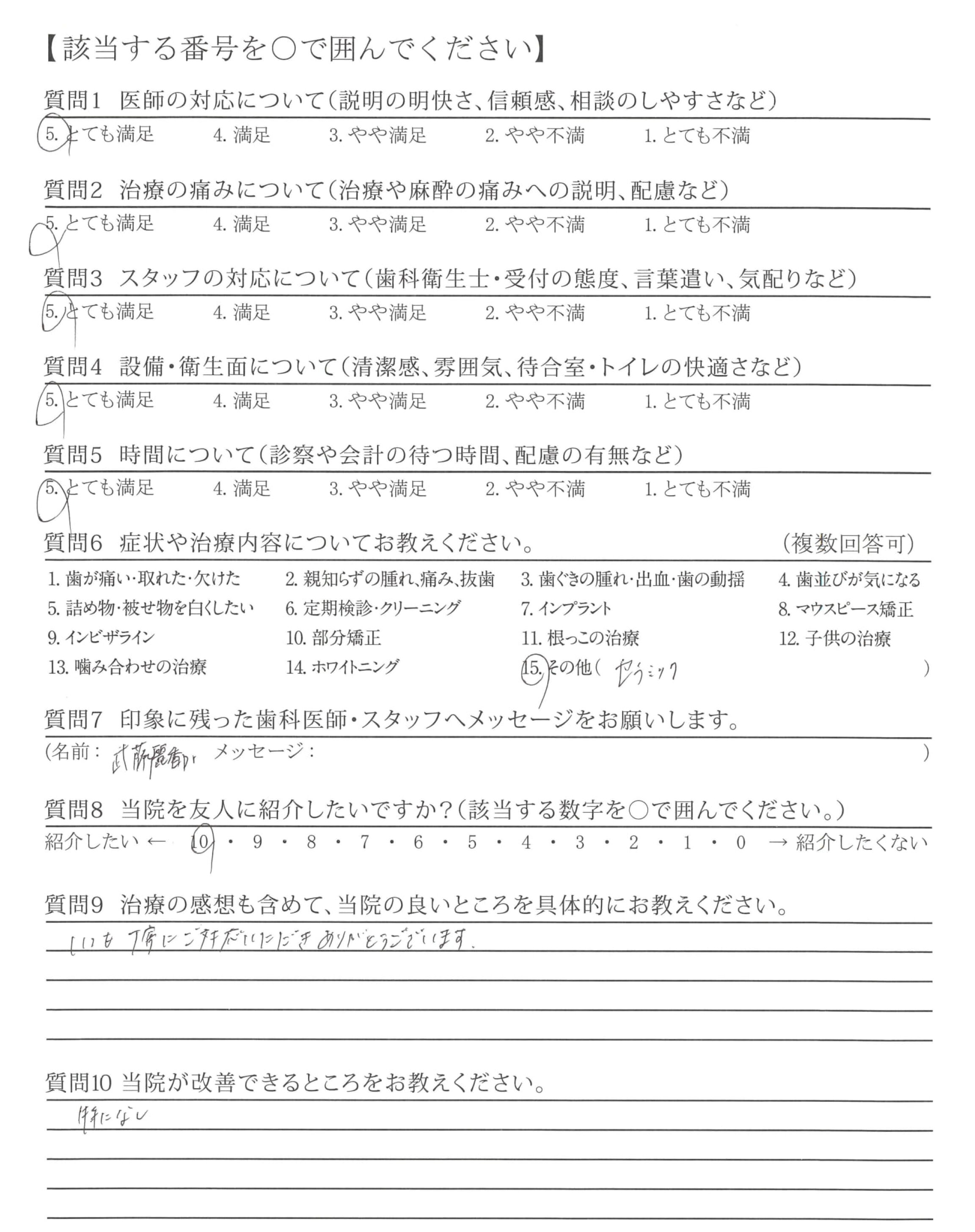 すごく説明と治療がていねいだと思います。ありがとうございます。