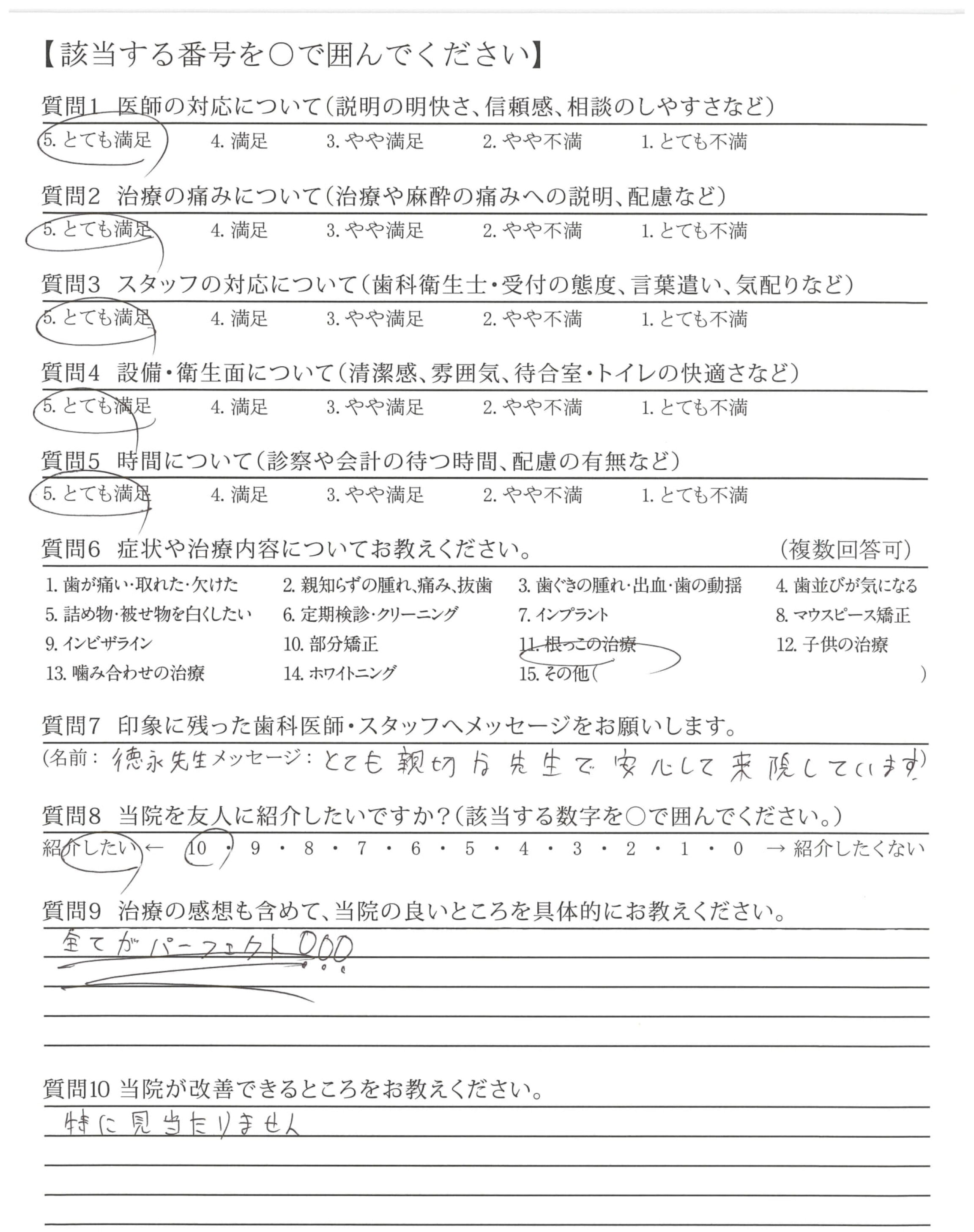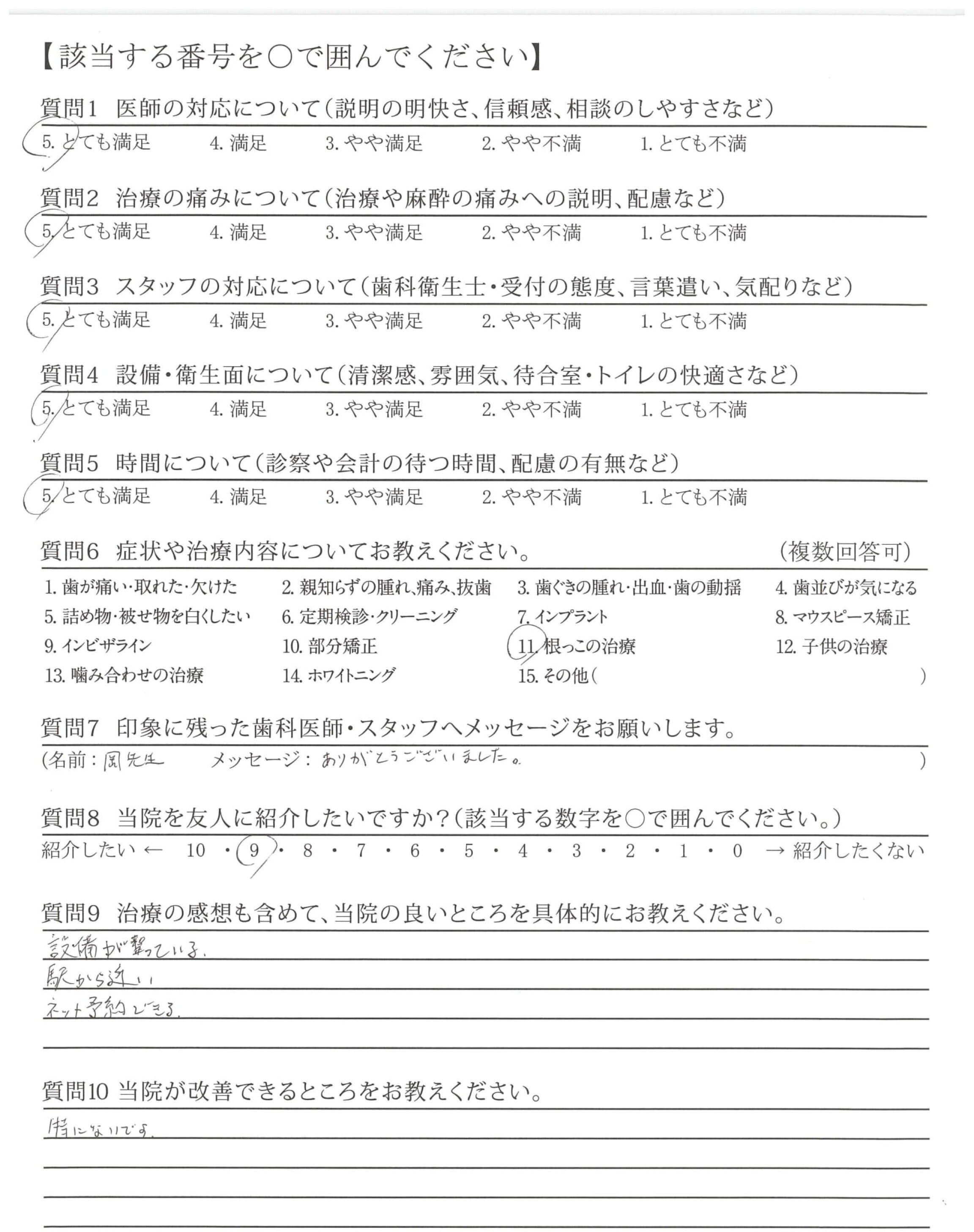 いつもていねいに説明していただき、本当に安心して治療が受けられます。ありがとうございます。