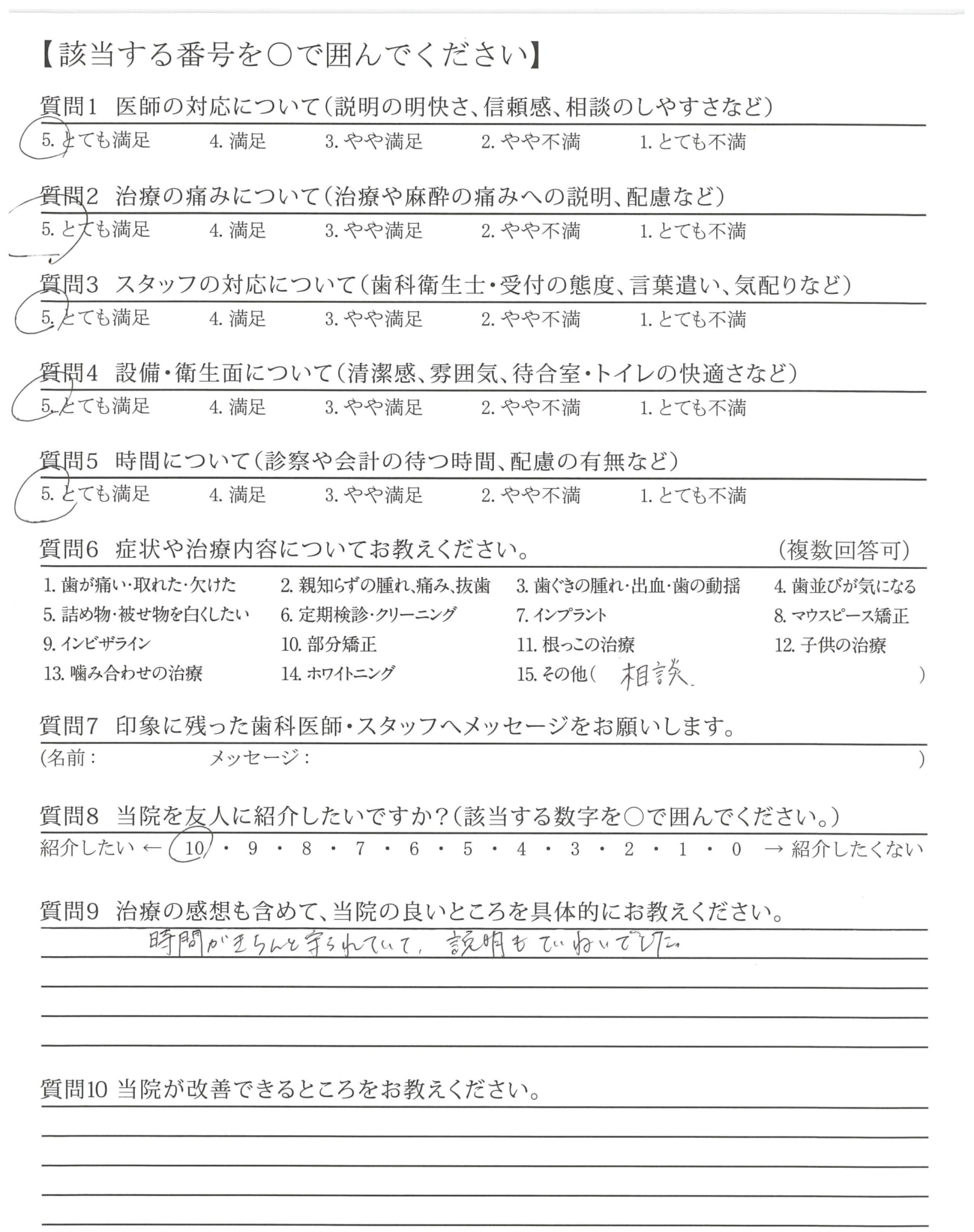・治療前に十分な説明があり安心して治療を受けることができた。