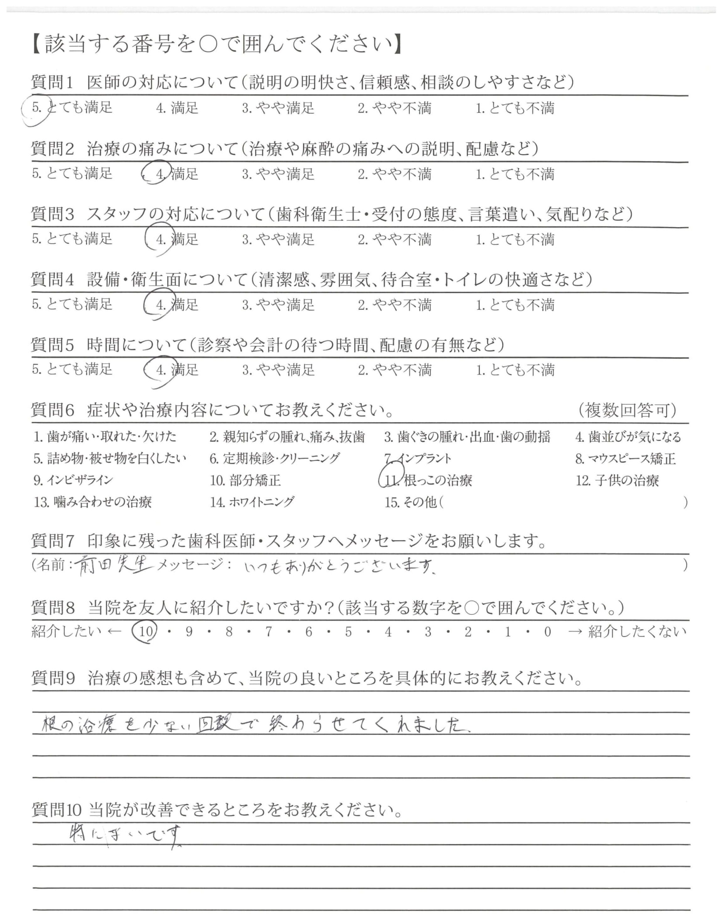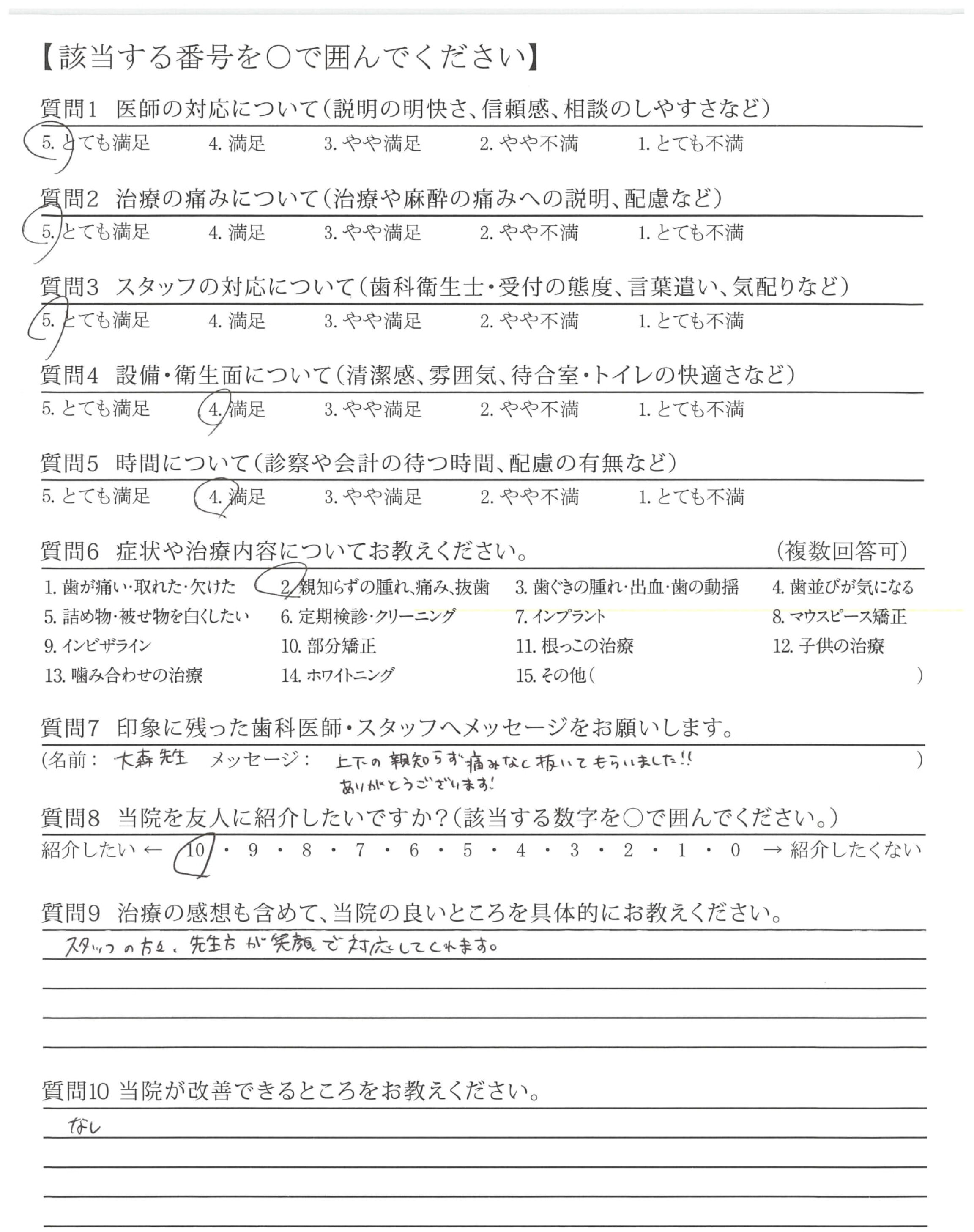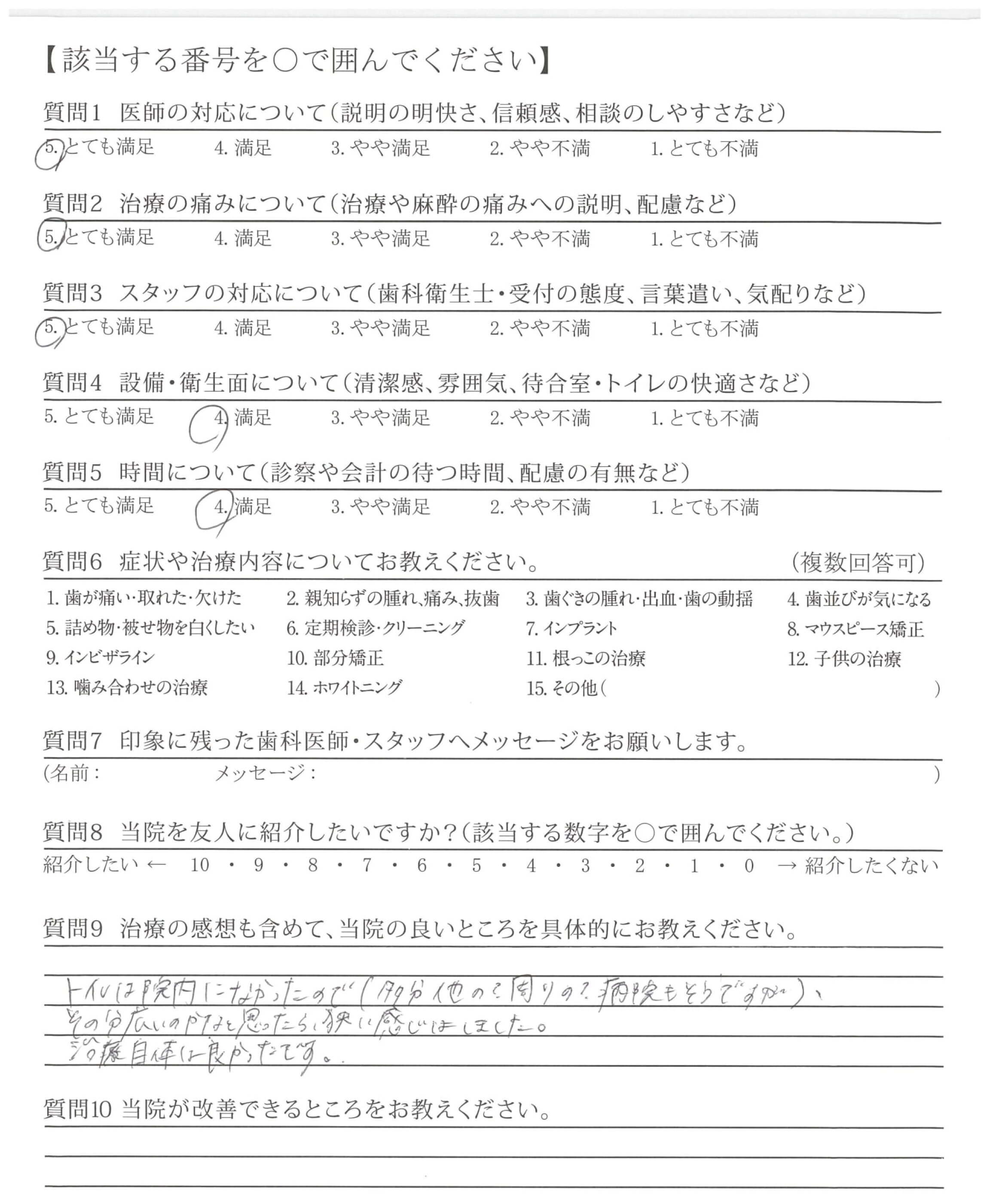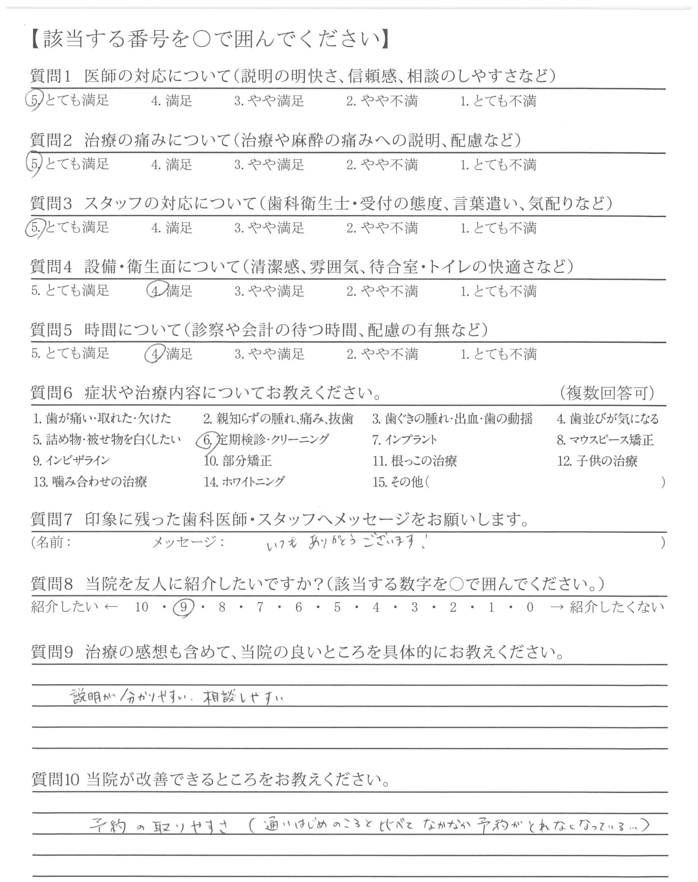 | 歯科医師の対応 | ![]() ![]() ![]() ![]() 4.89 |