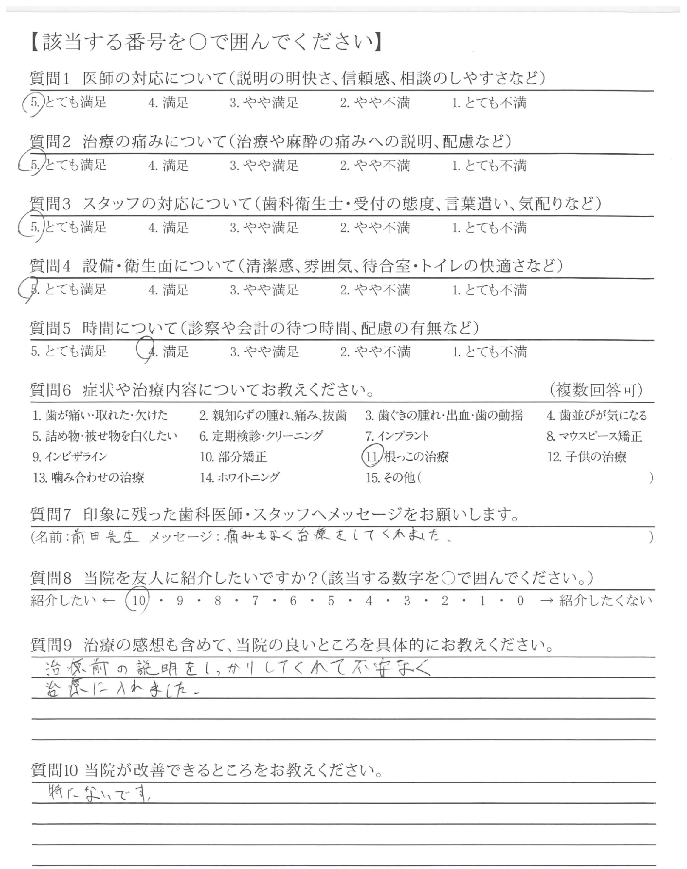 | 治療の痛みへの配慮 | ![]() ![]() ![]() ![]() 4.81 |