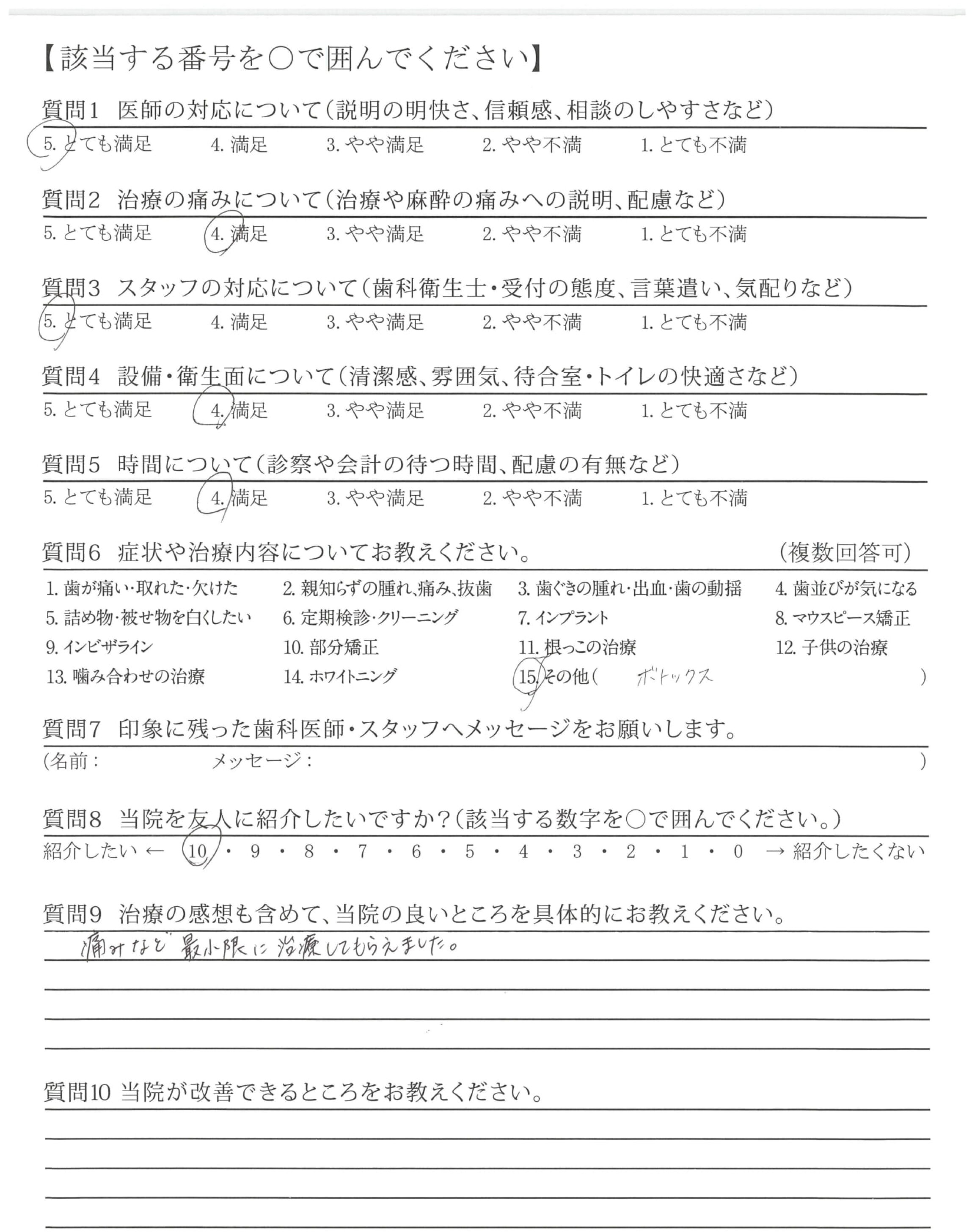 先生の治療も丁寧で、都度痛みかくにんしてもらって、良かったです。