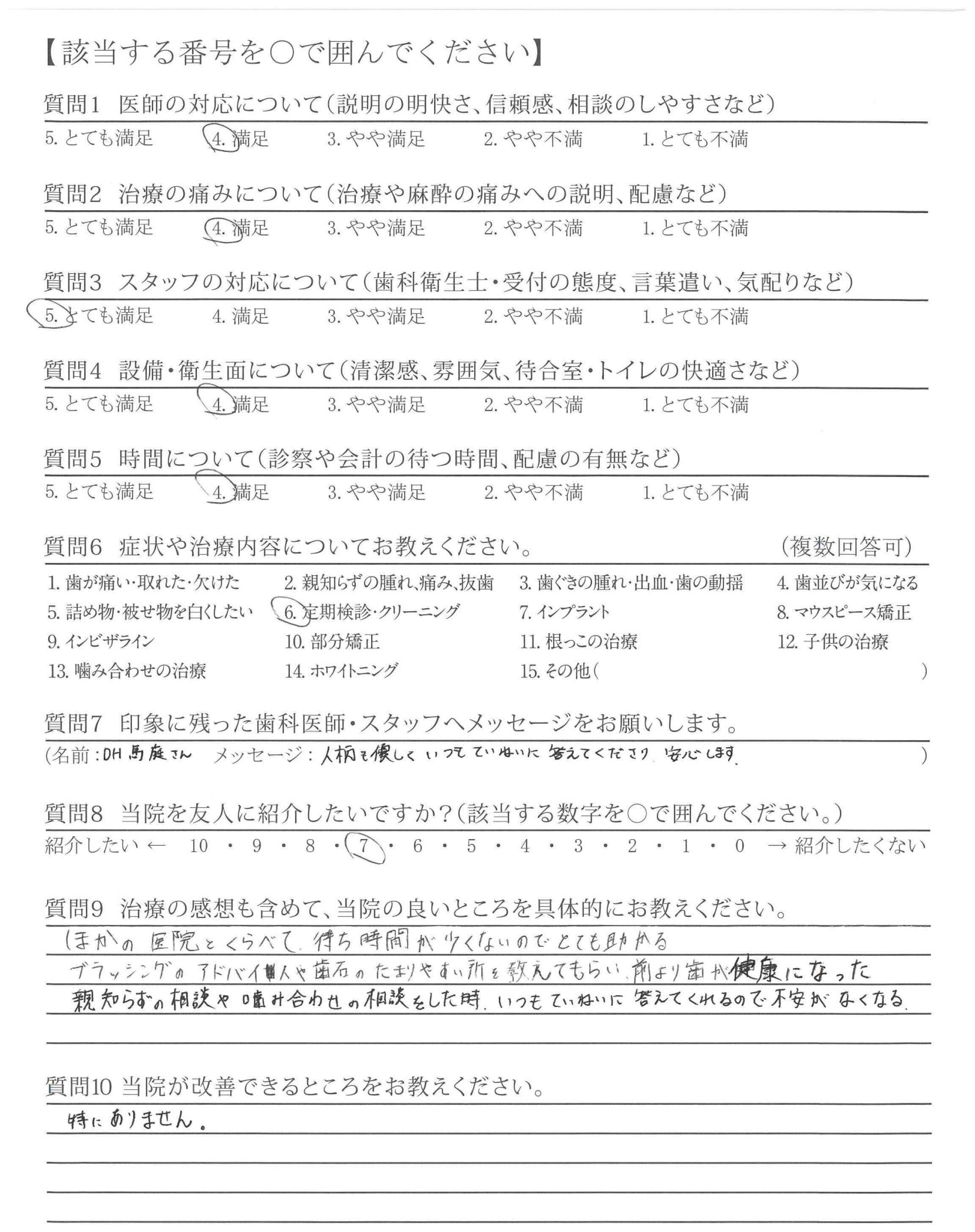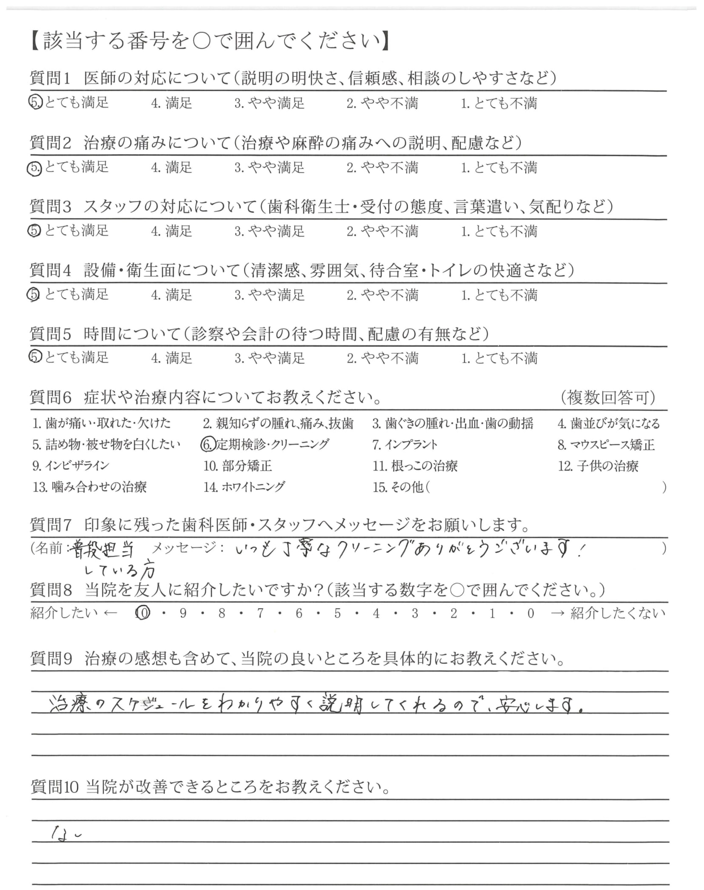 ブラッシングのアドバイスや歯石のたまりやすい所を教えてもらい、前より歯が健康になった