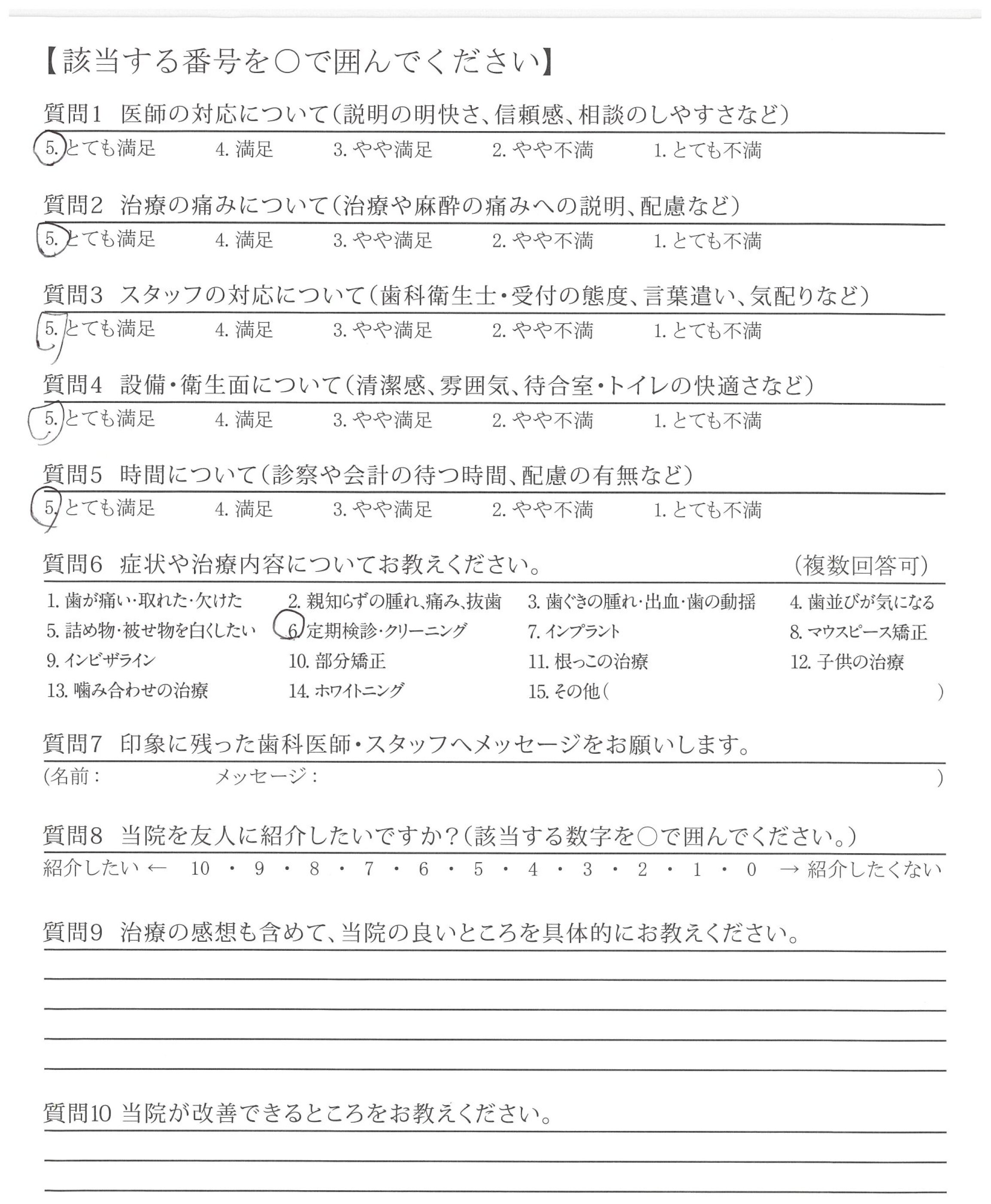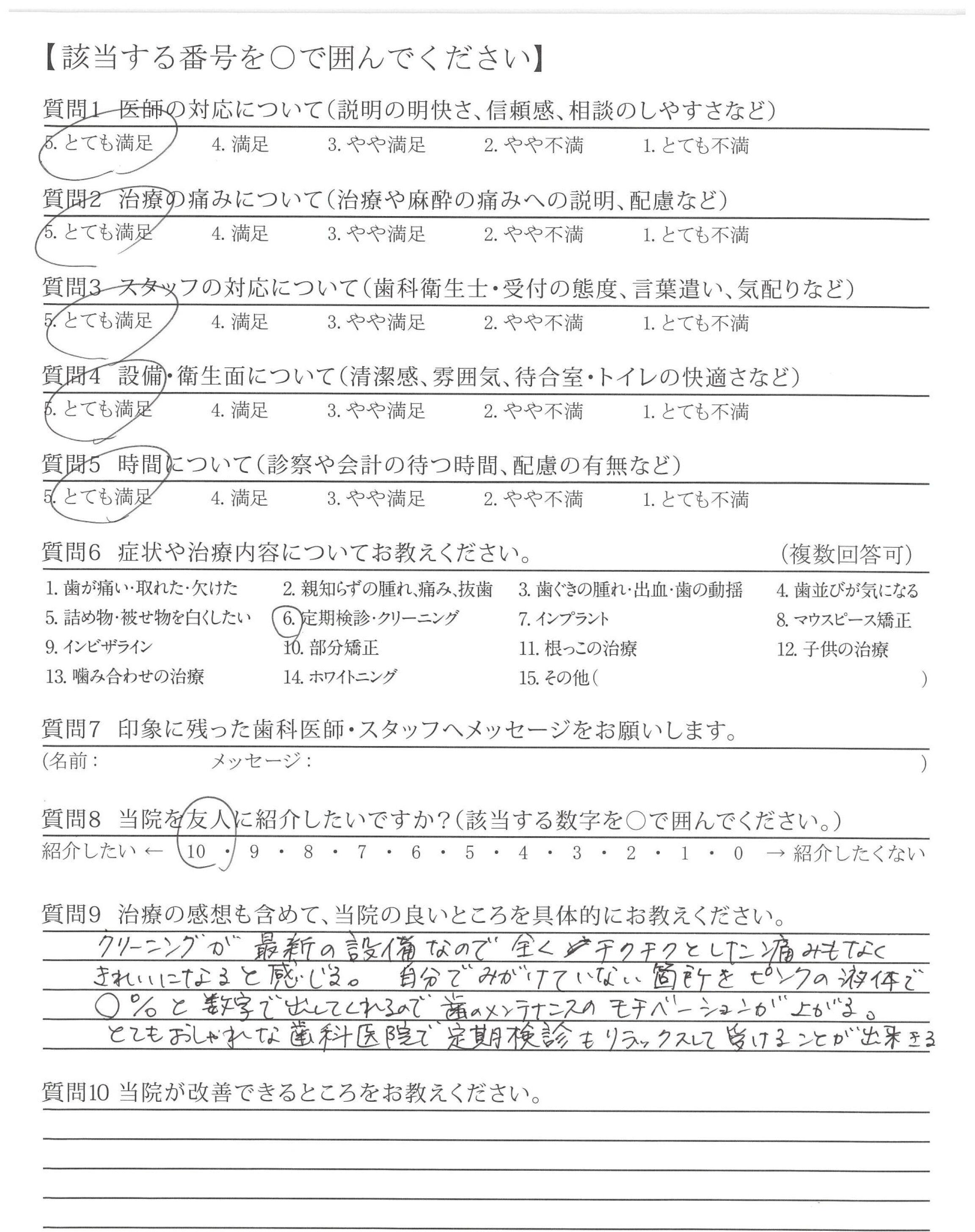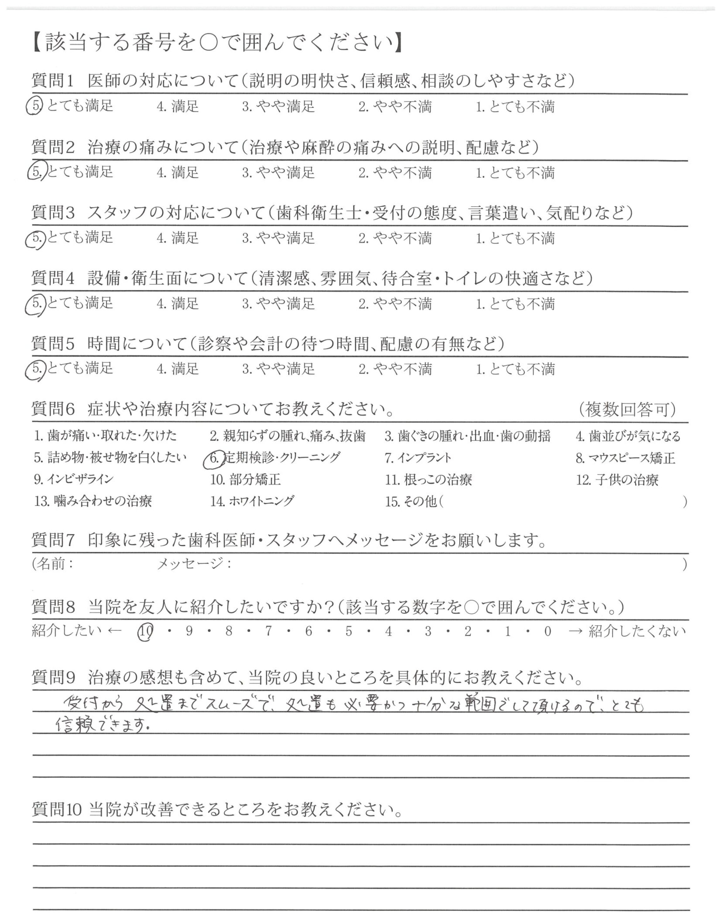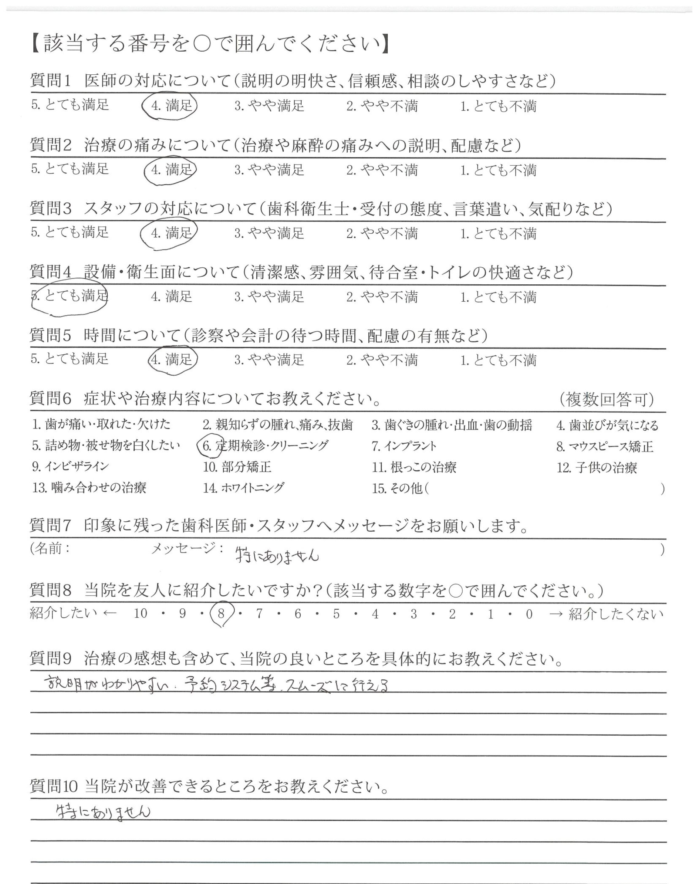 定期検診も対応いいと思います。