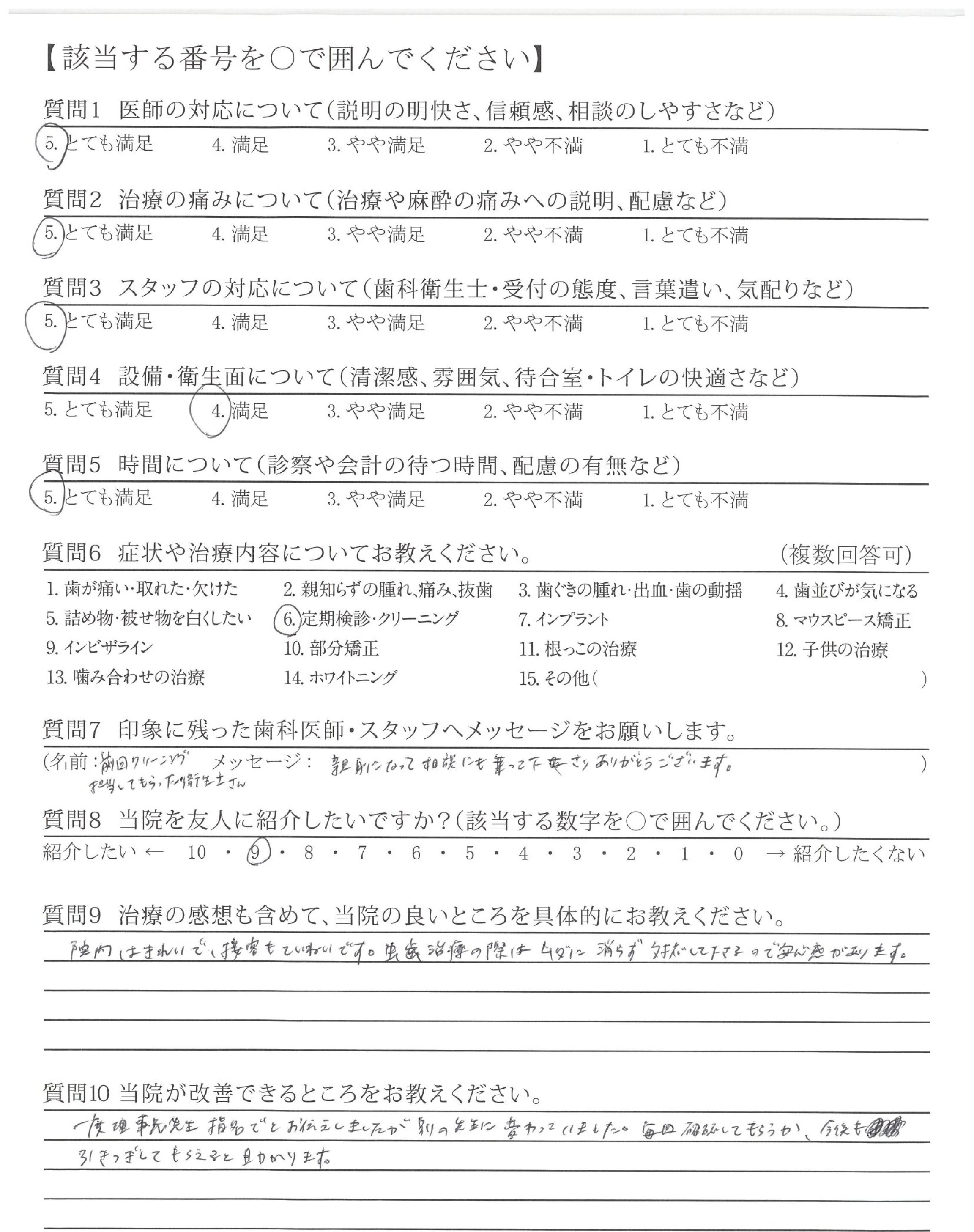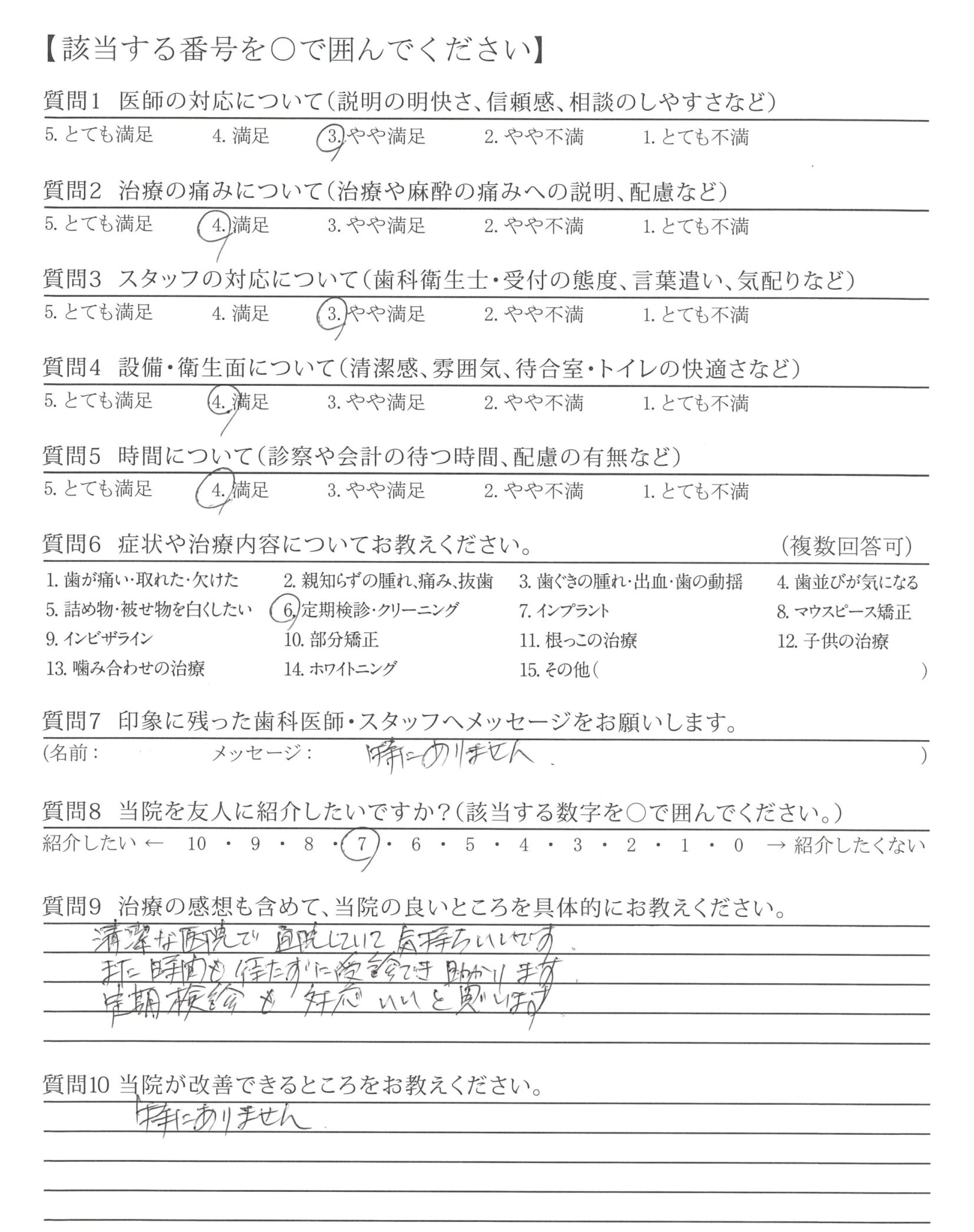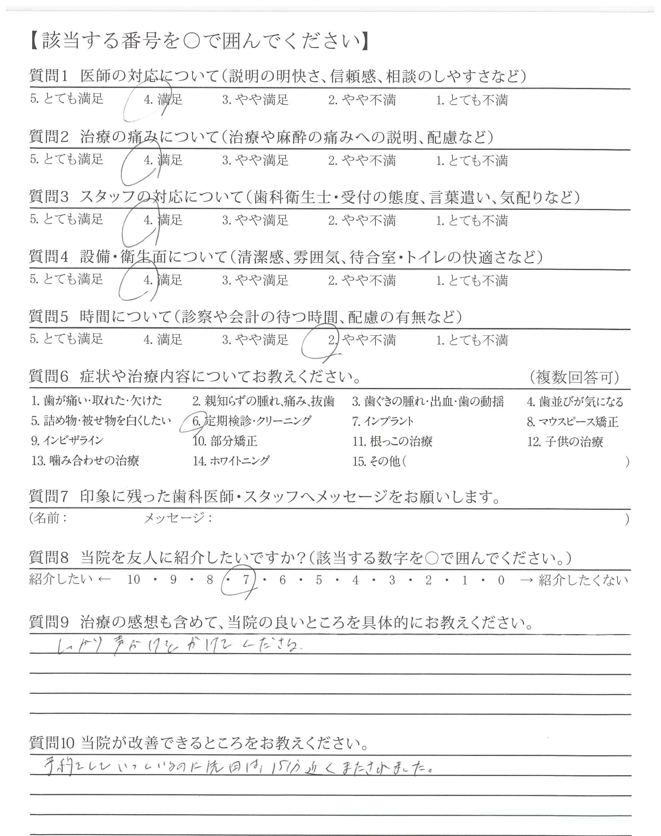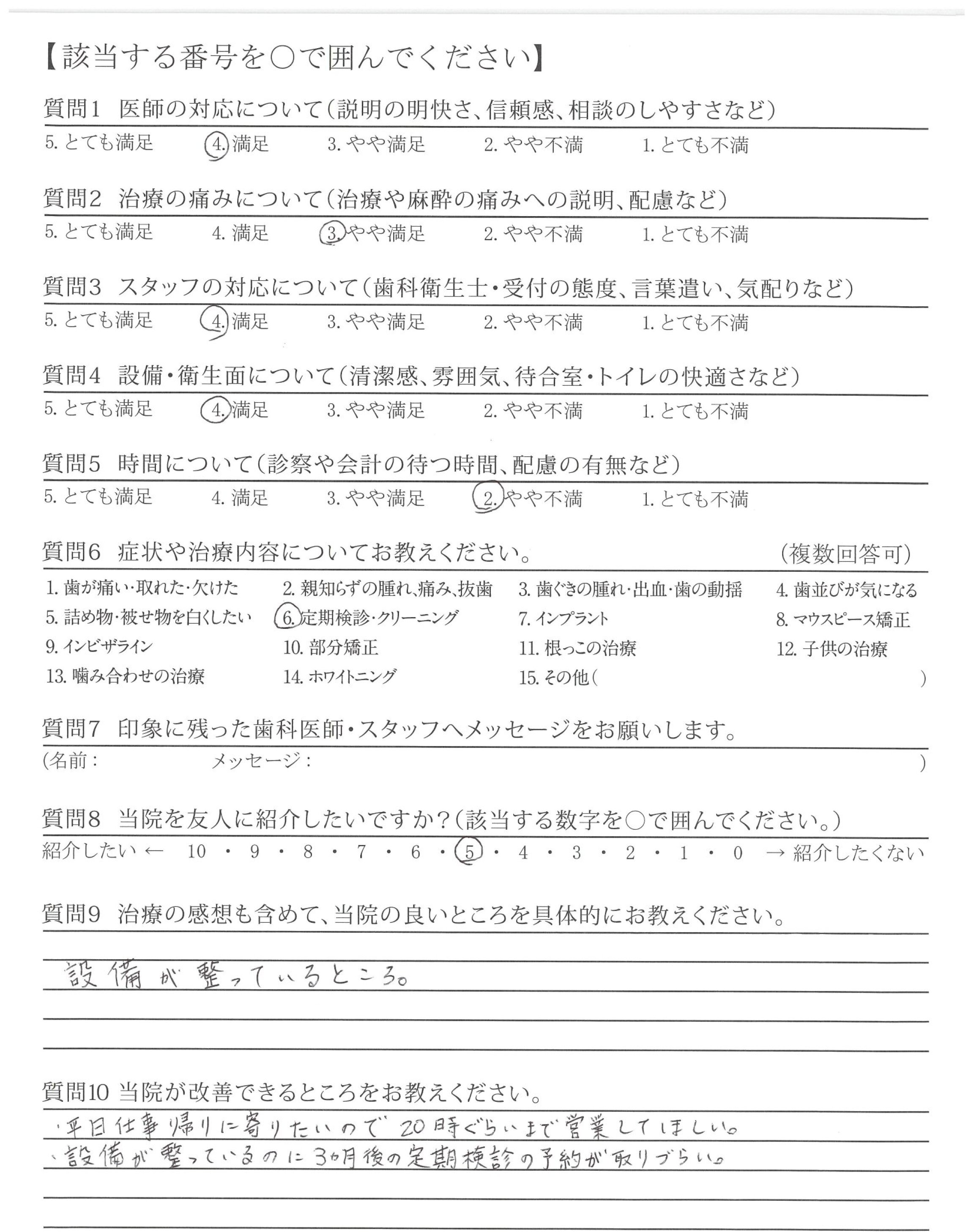 ・設備が整っているのに3ヵ月後の定期検診の予約が取りづらい。