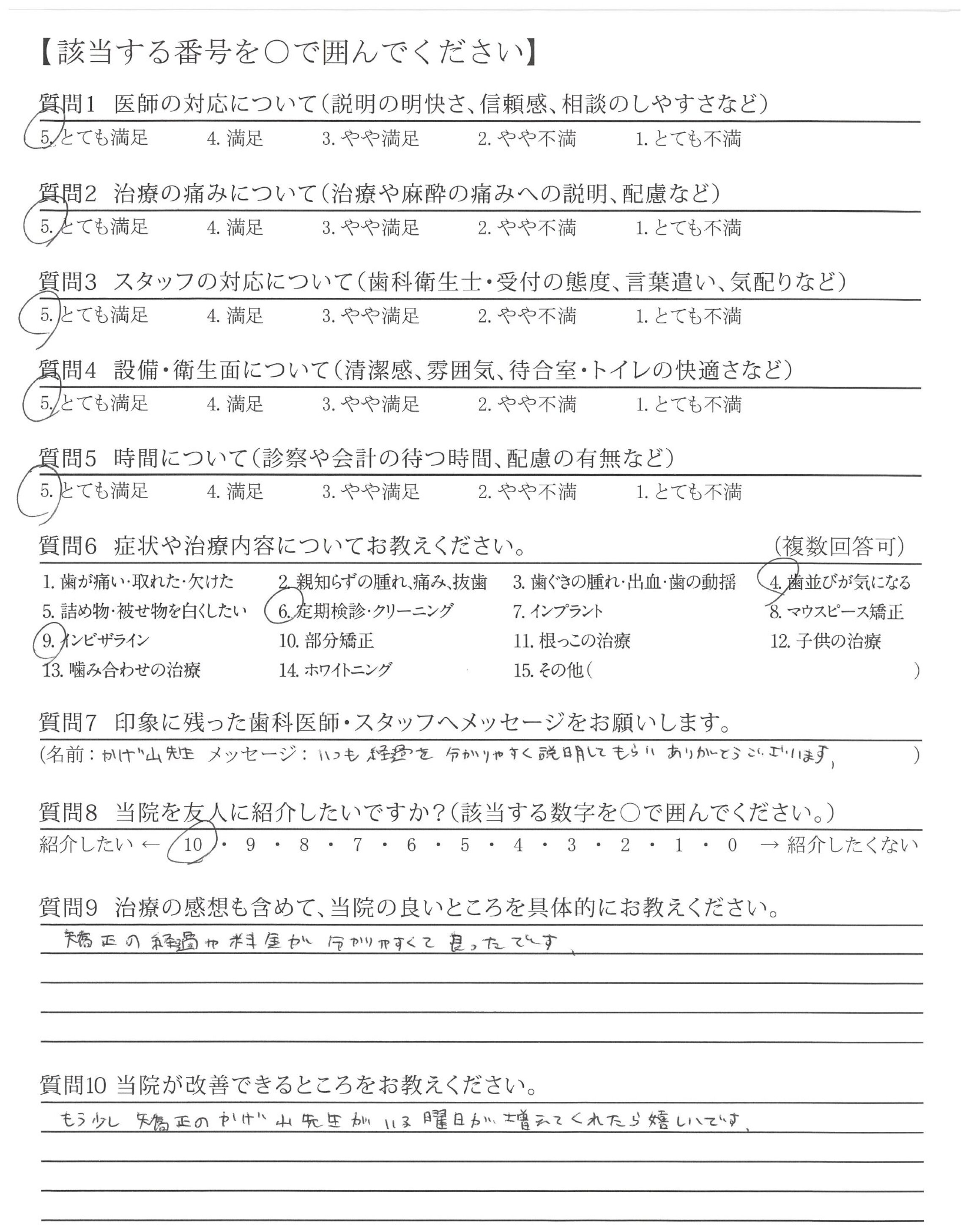 もう少し矯正のかげ山先生がいる曜日が増えてくれたら嬉しいです。