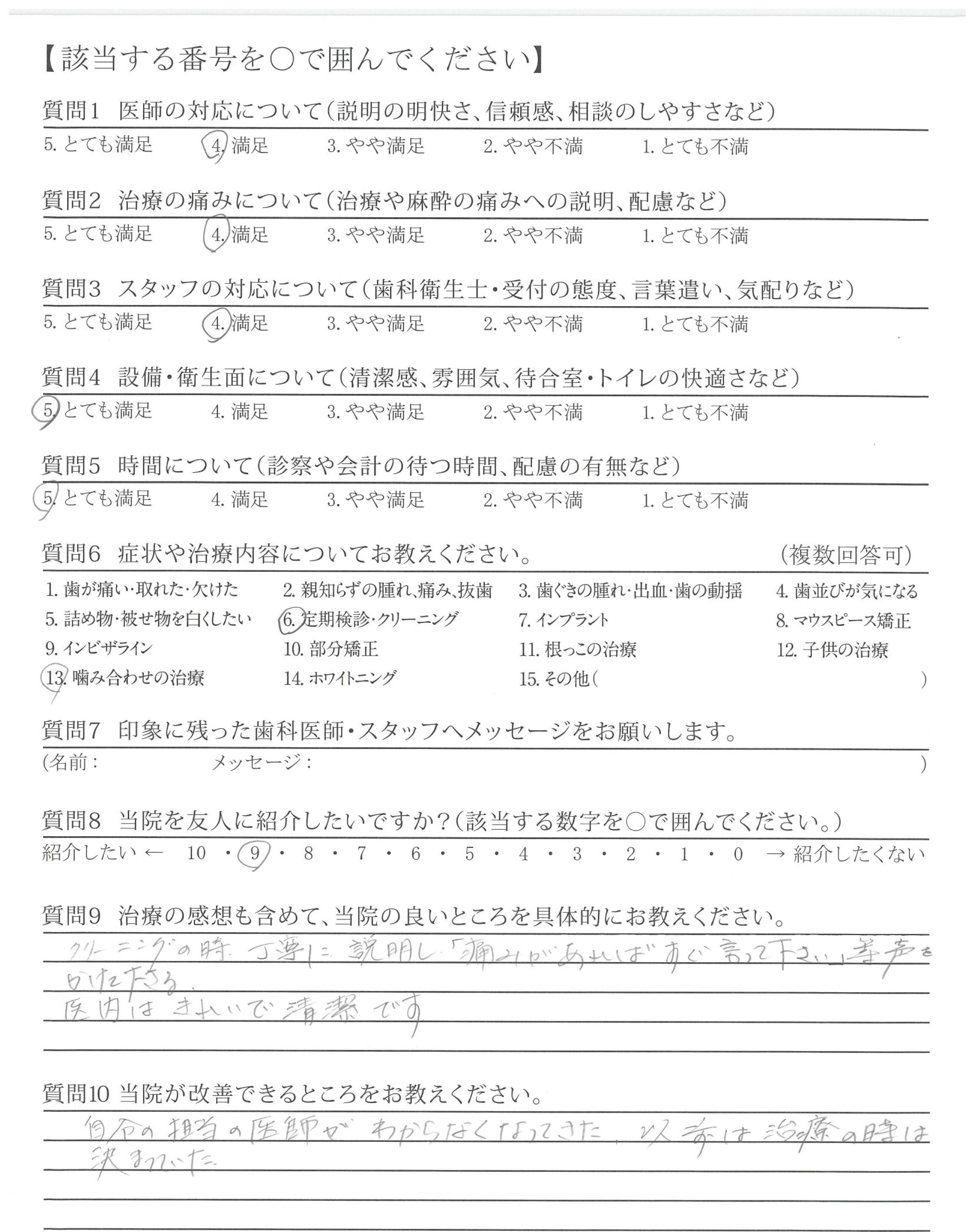 | 歯科医師の対応 | ![]() ![]() ![]() ![]() 4.46 |