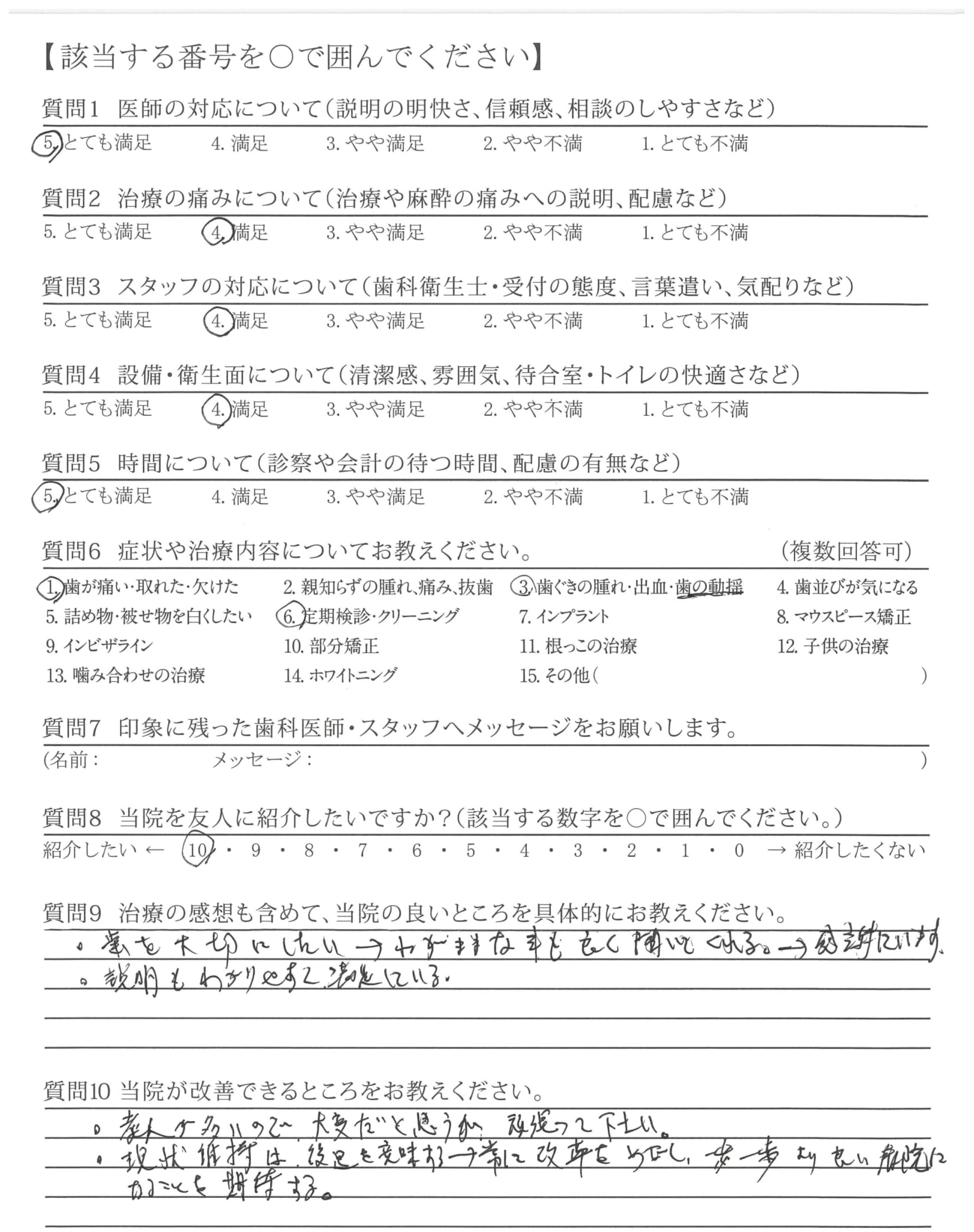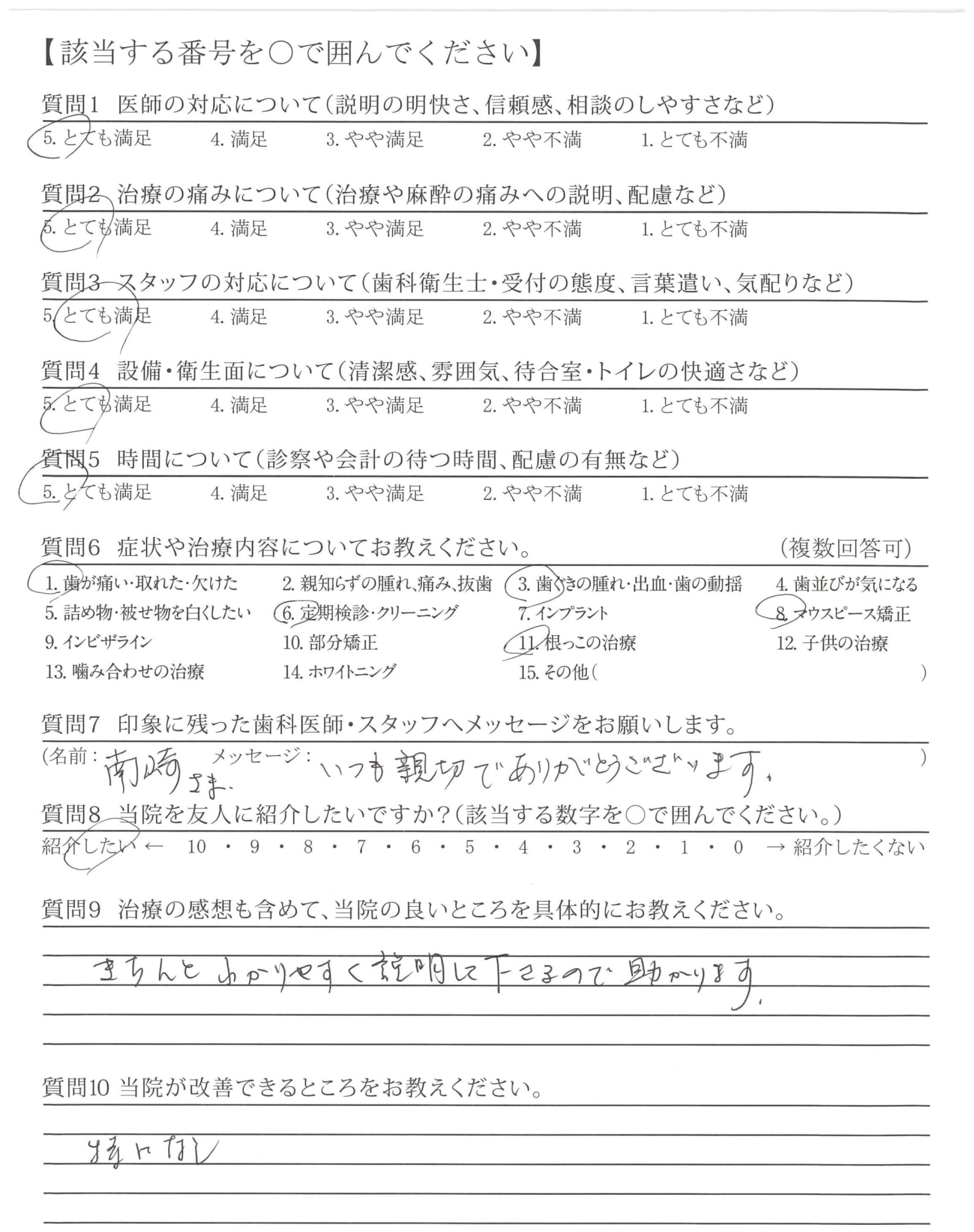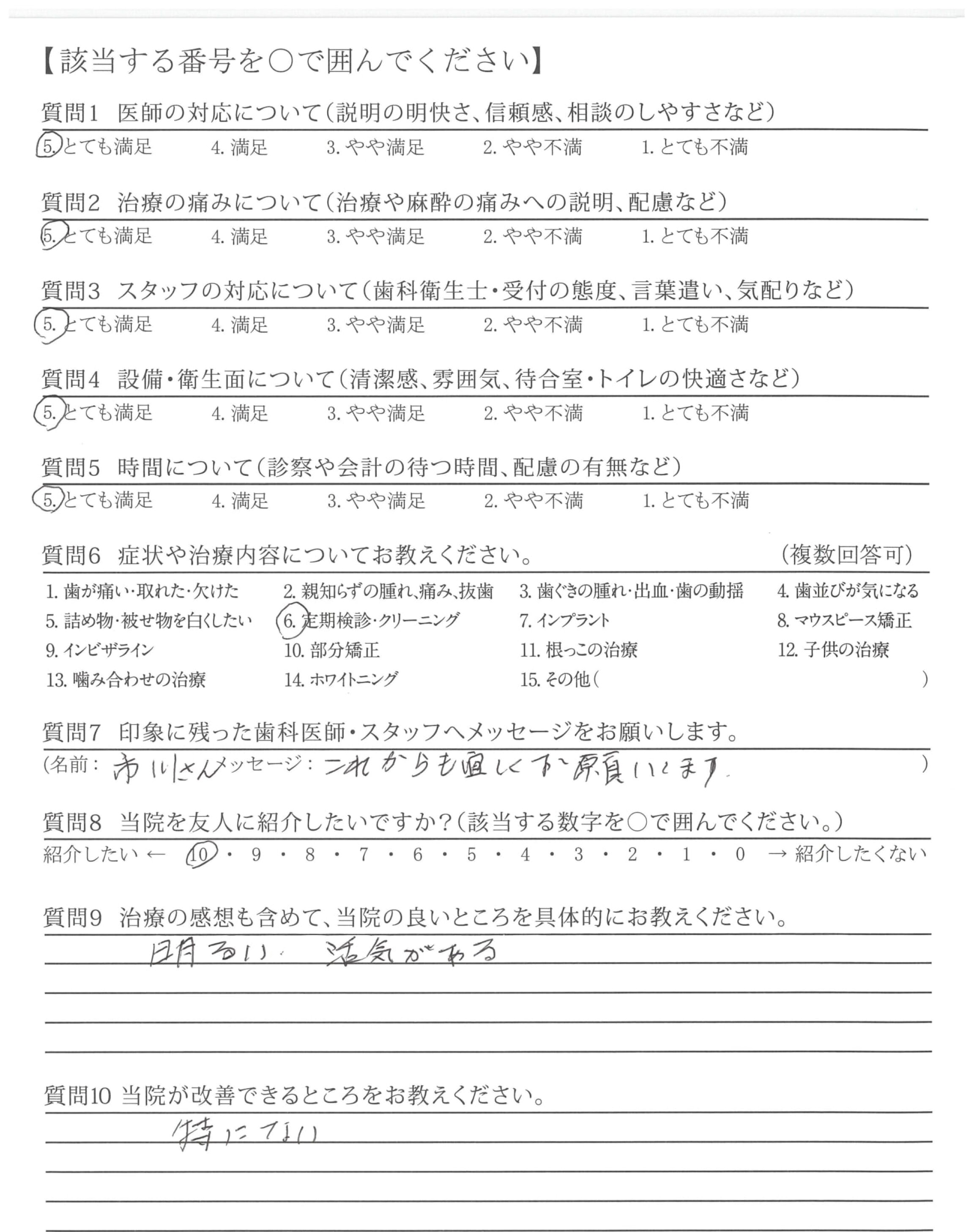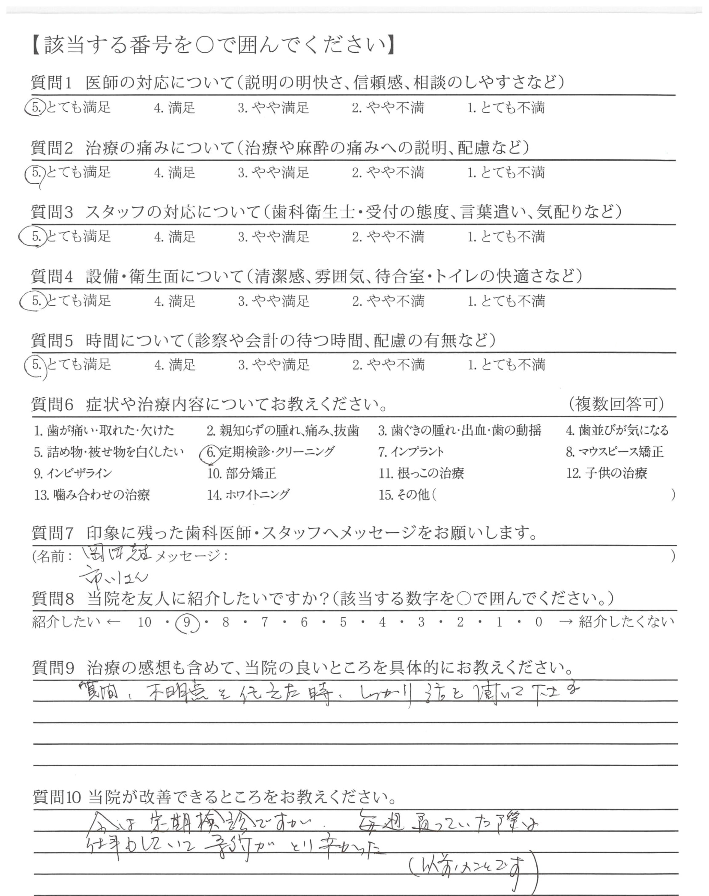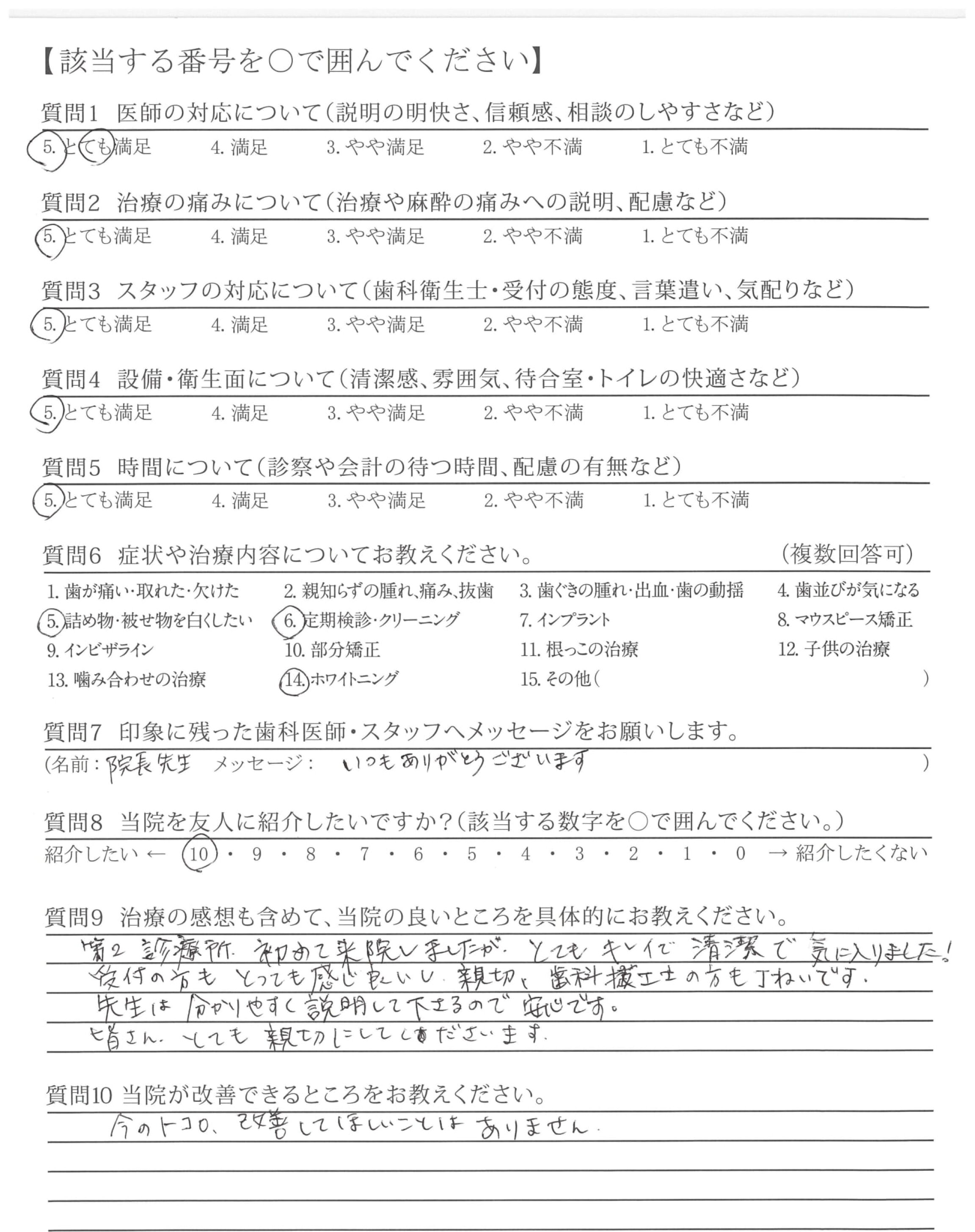 ・歯を大切にしたい→わがままな事も良く聞いてくれる。→感謝しています。