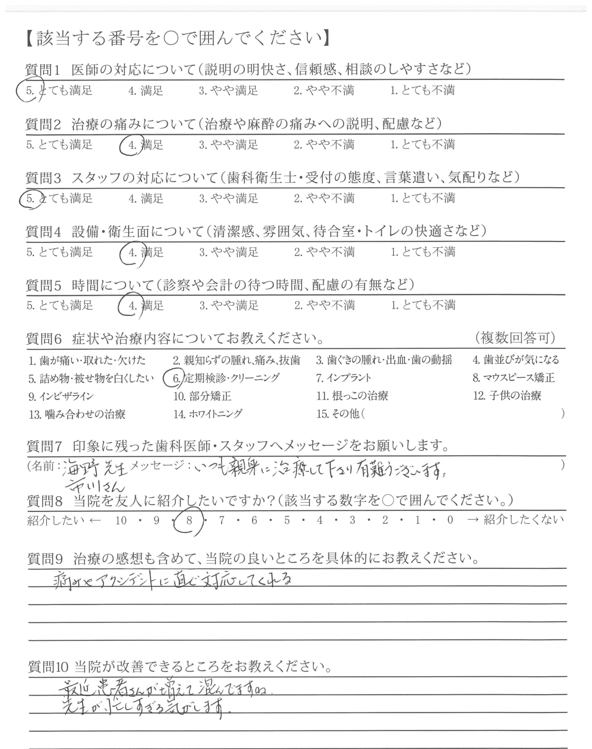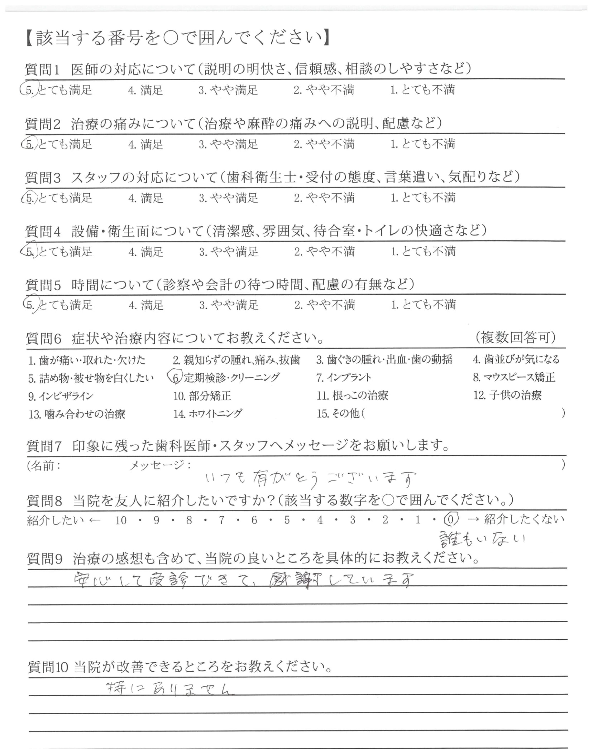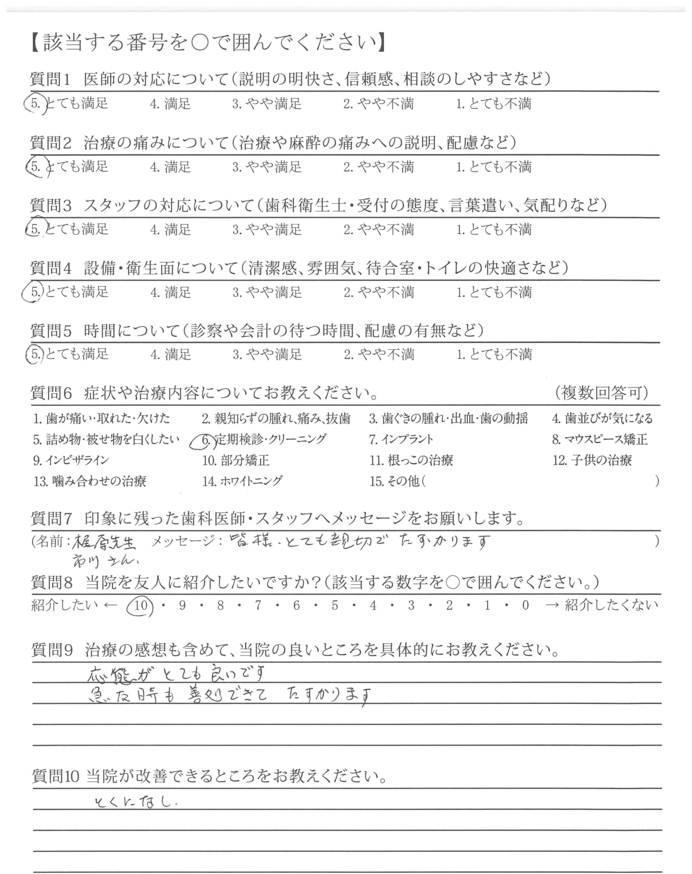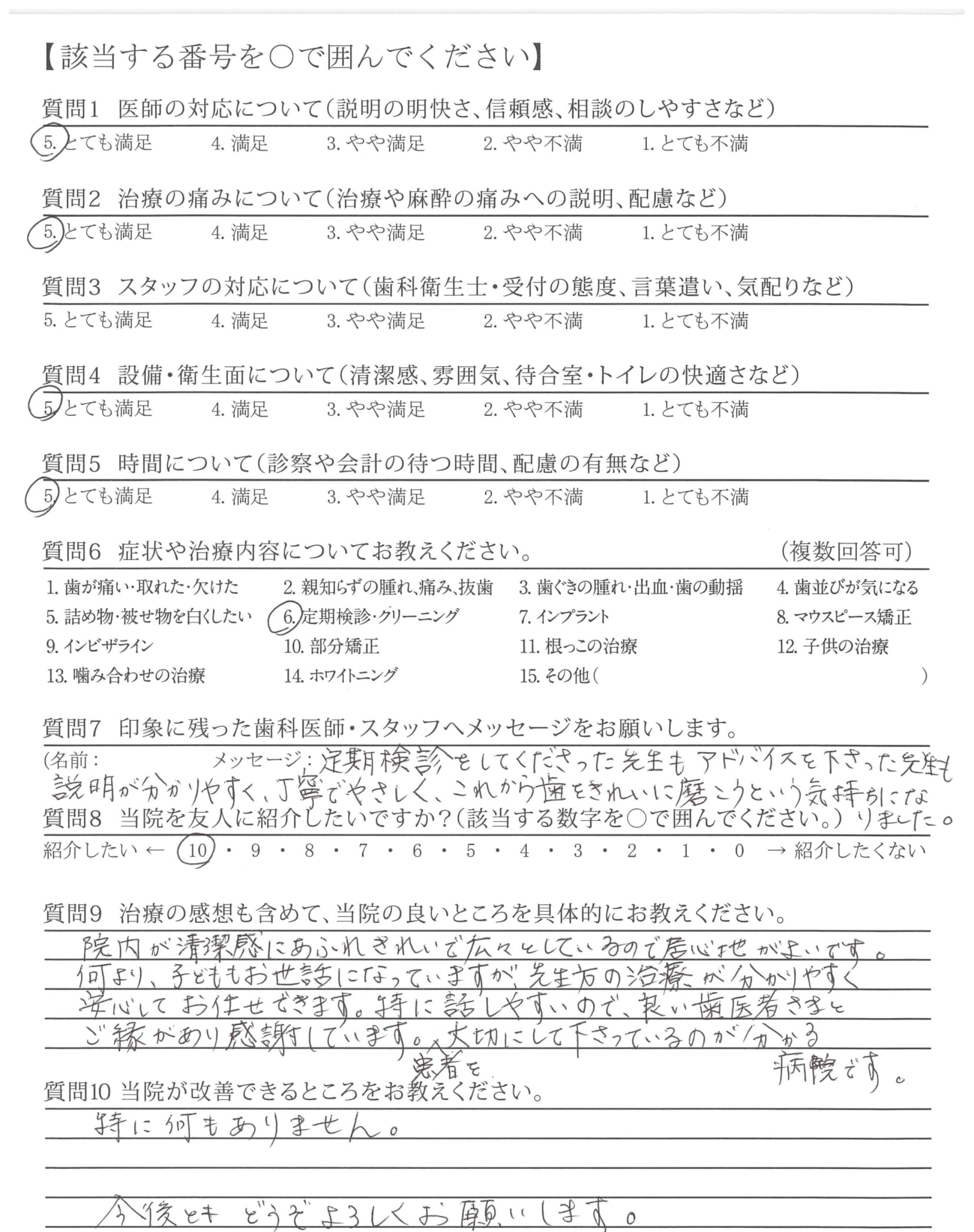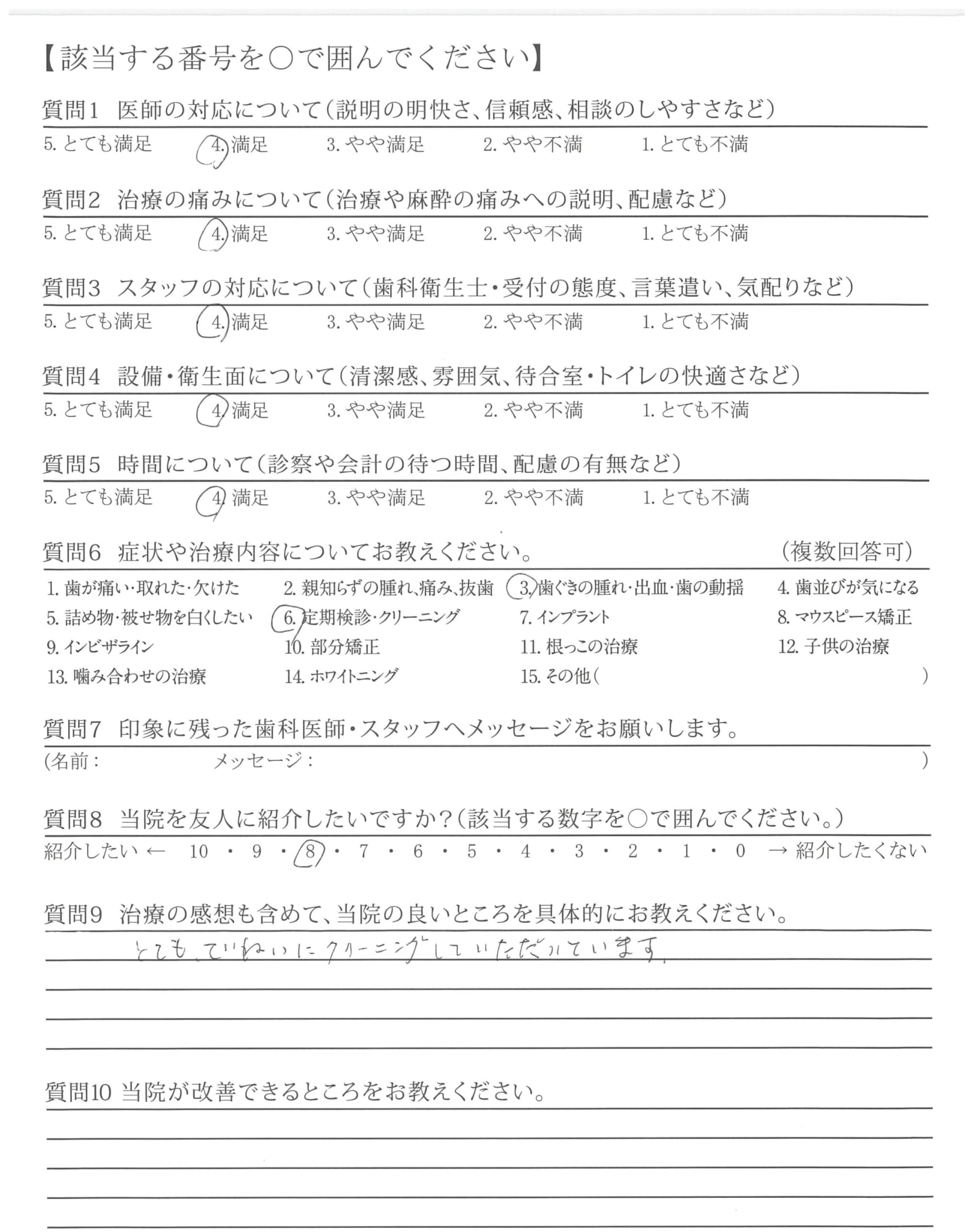 ・歯を大切にしたい→わがままな事も良く聞いてくれる。→感謝しています。