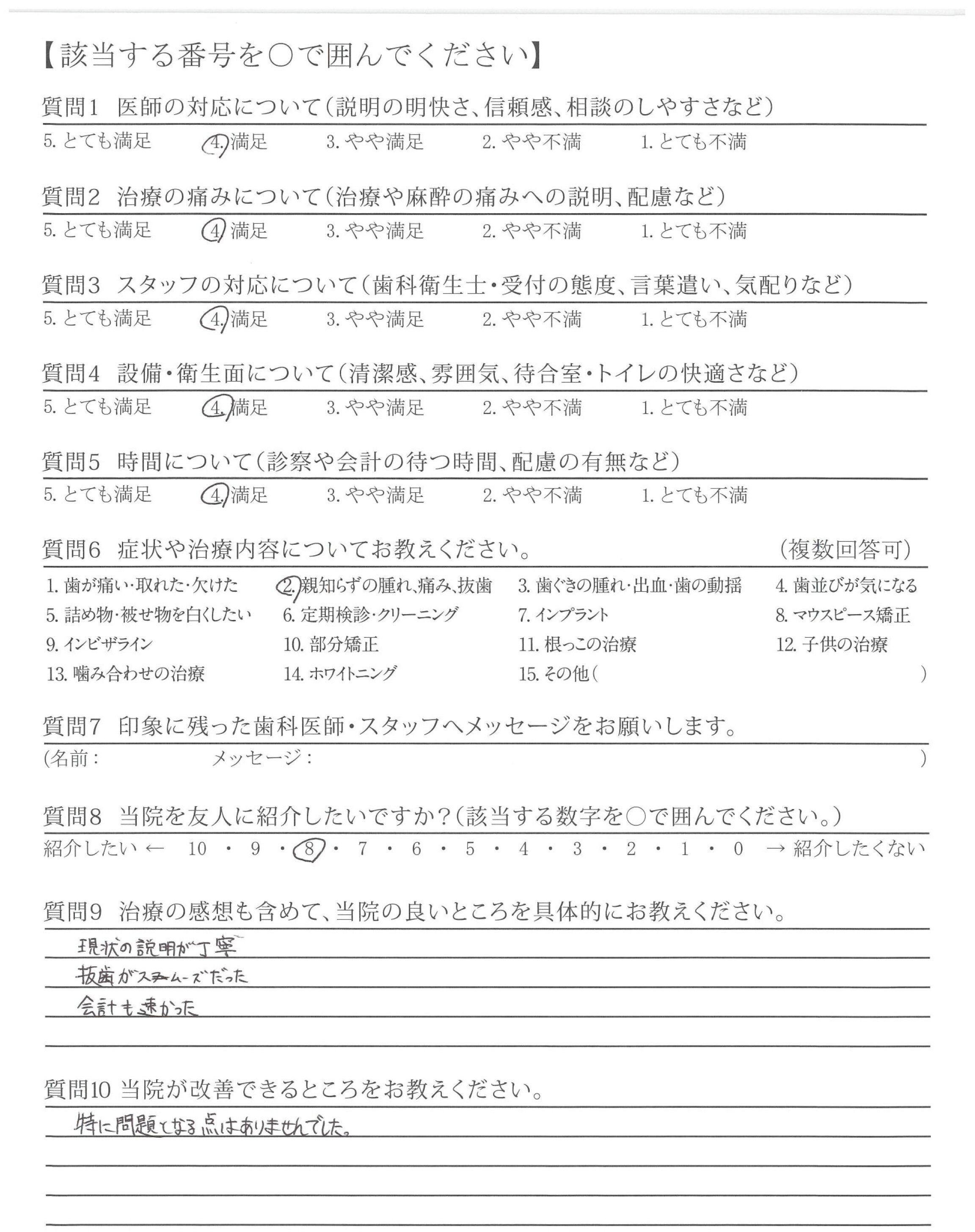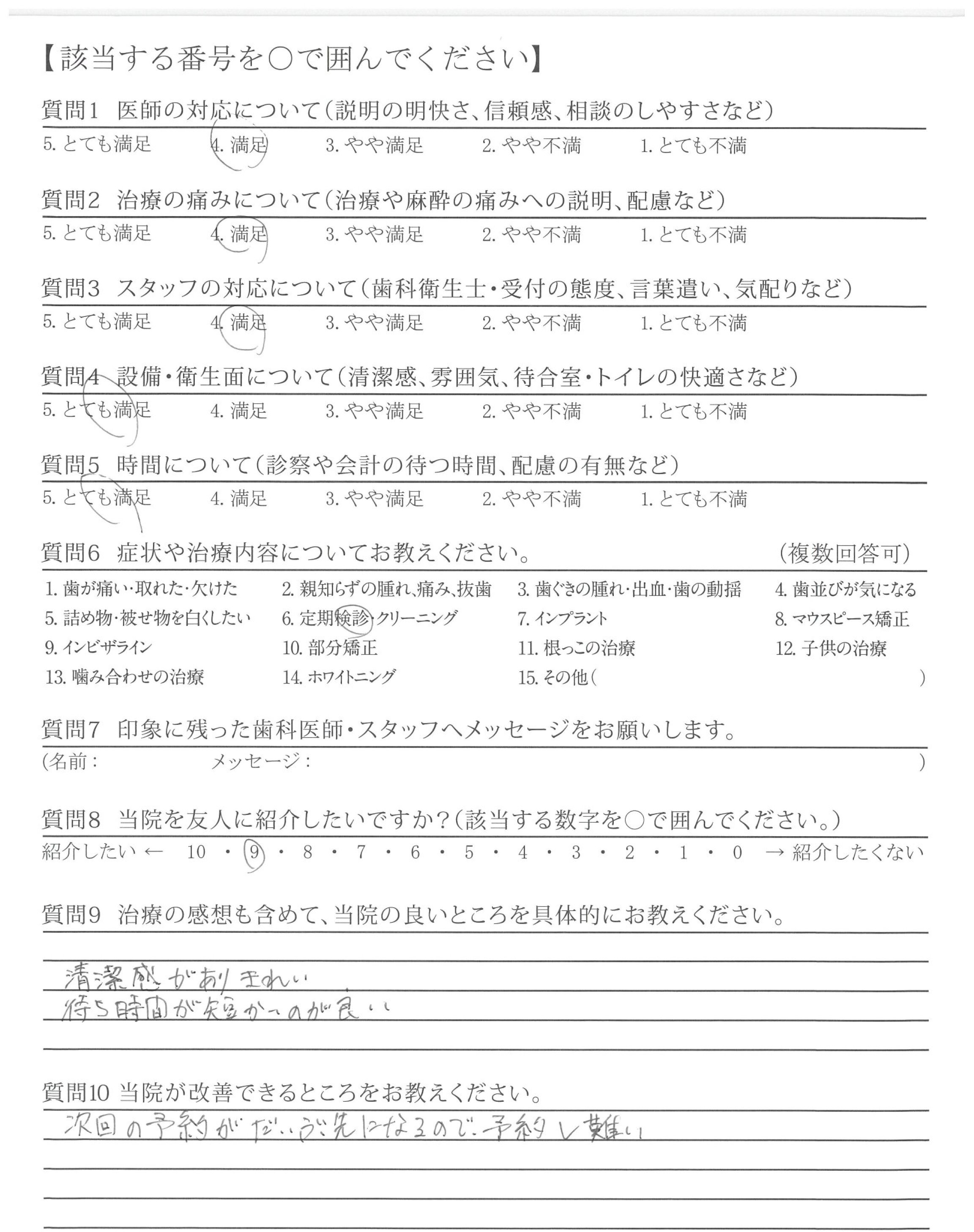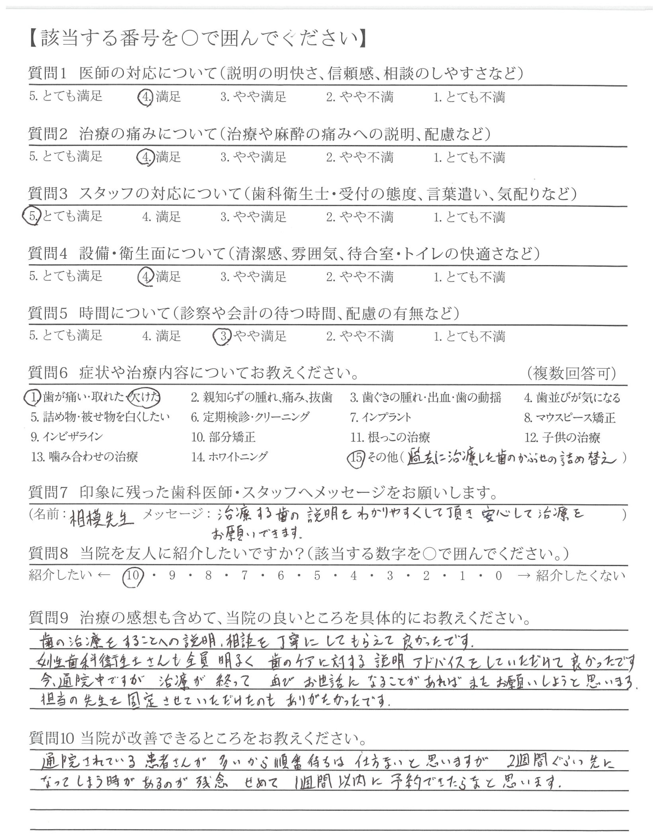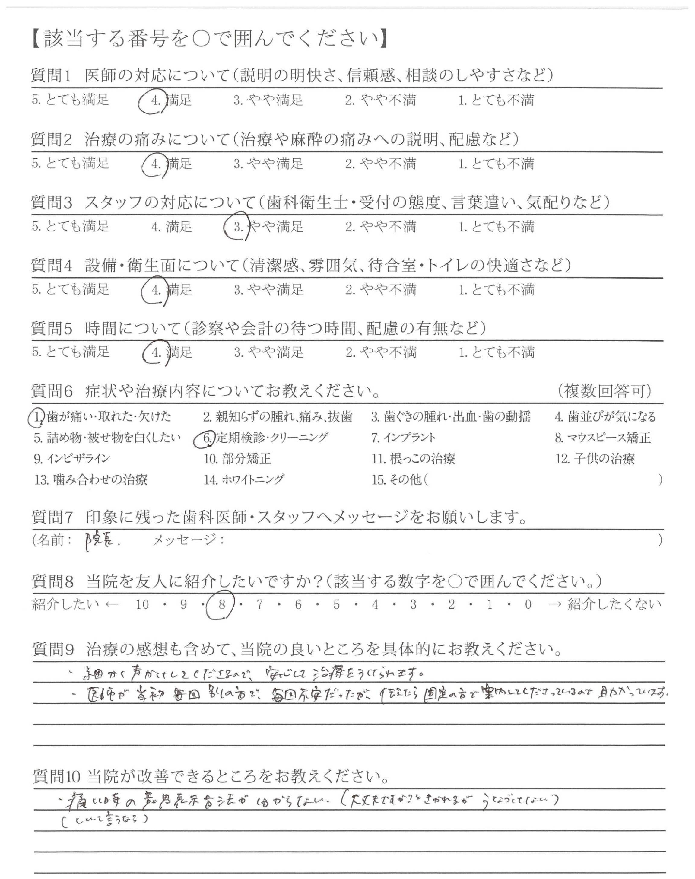 | 歯科医師の対応 | ![]() ![]() ![]() ![]() 4.40 |