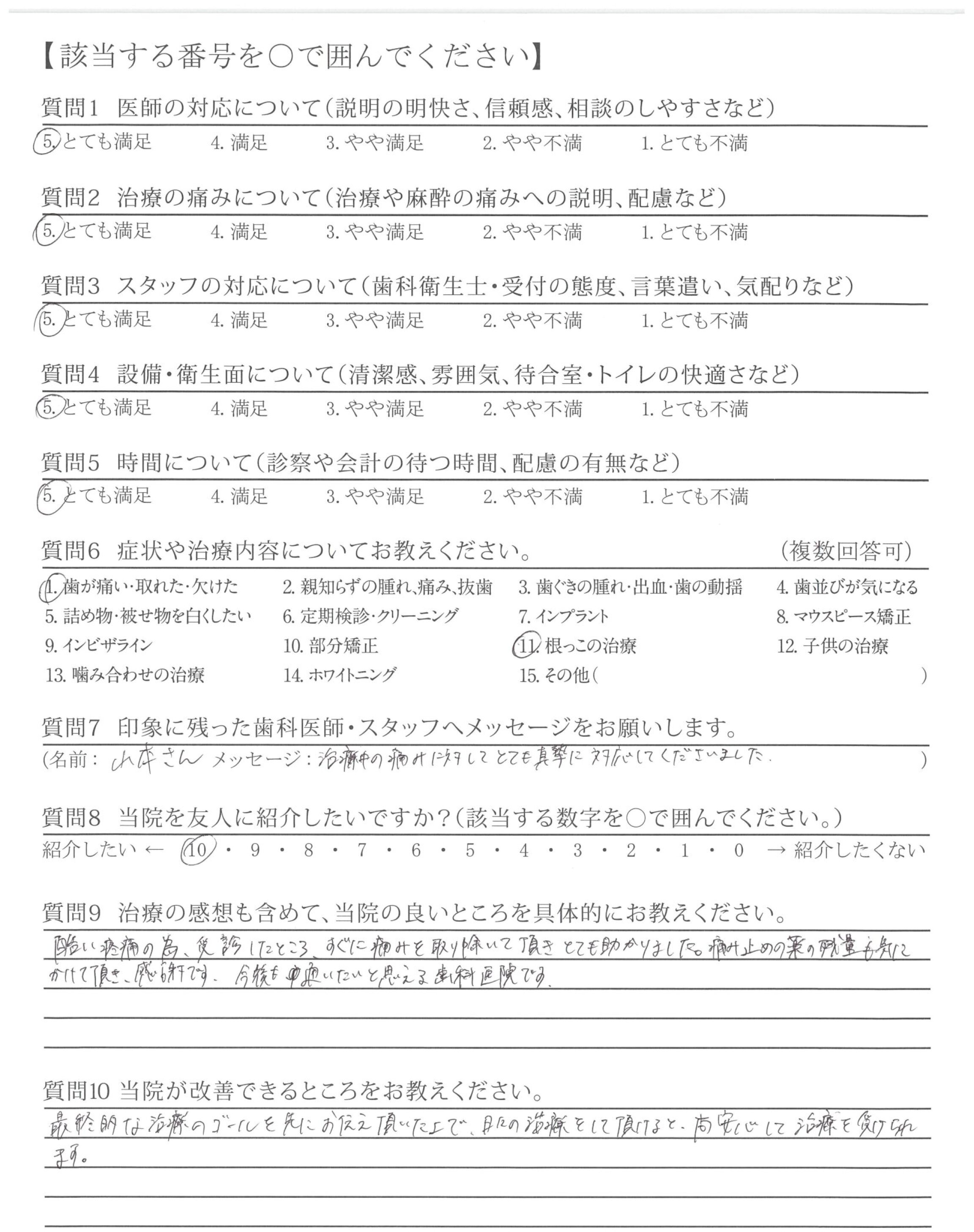 酷い疼痛の為、受診したところ、すぐに痛みを取り除いて頂きとても助かりました。