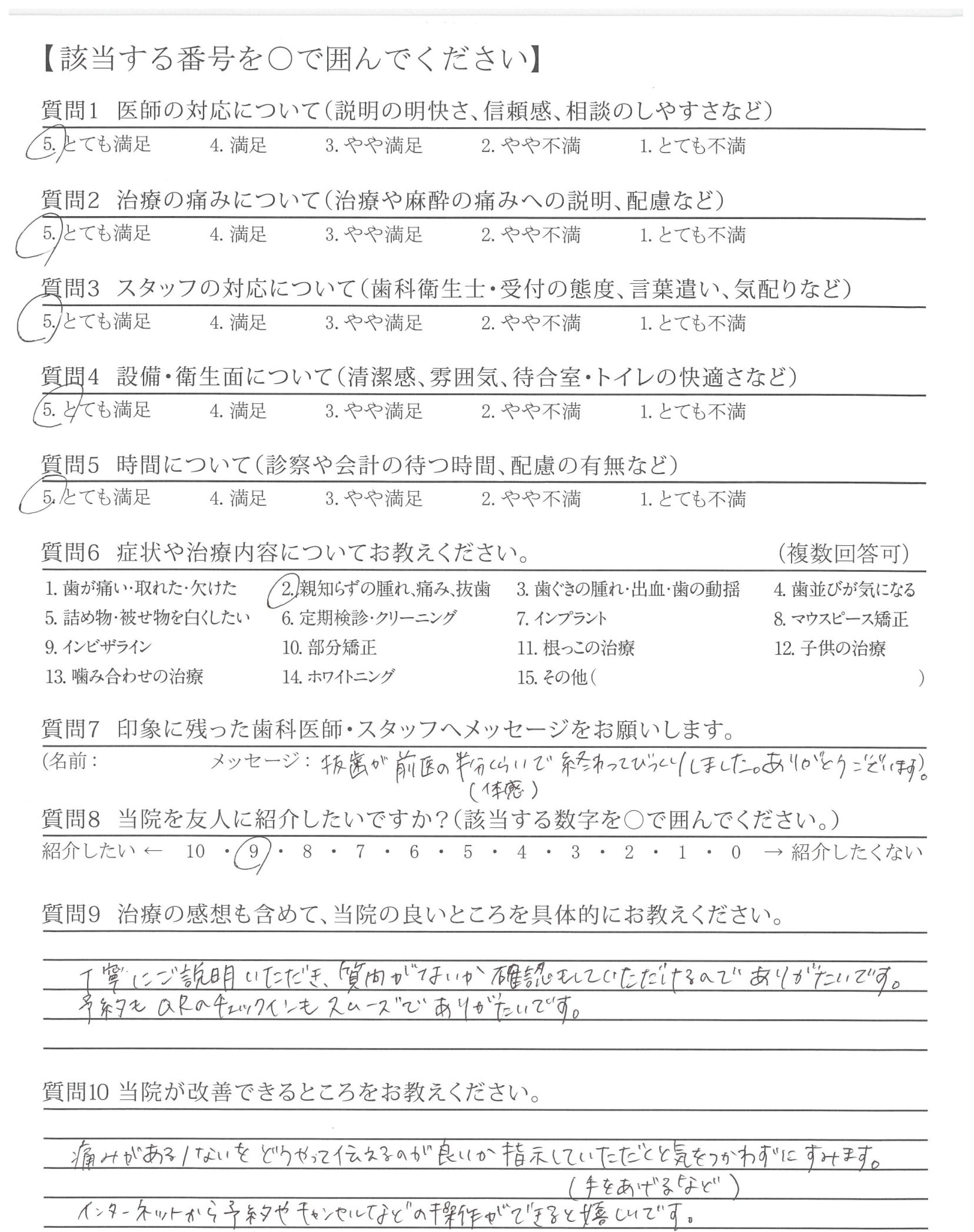 抜歯が前医の半分くらい(体感)で終わってびっくりしました。ありがとうございます。