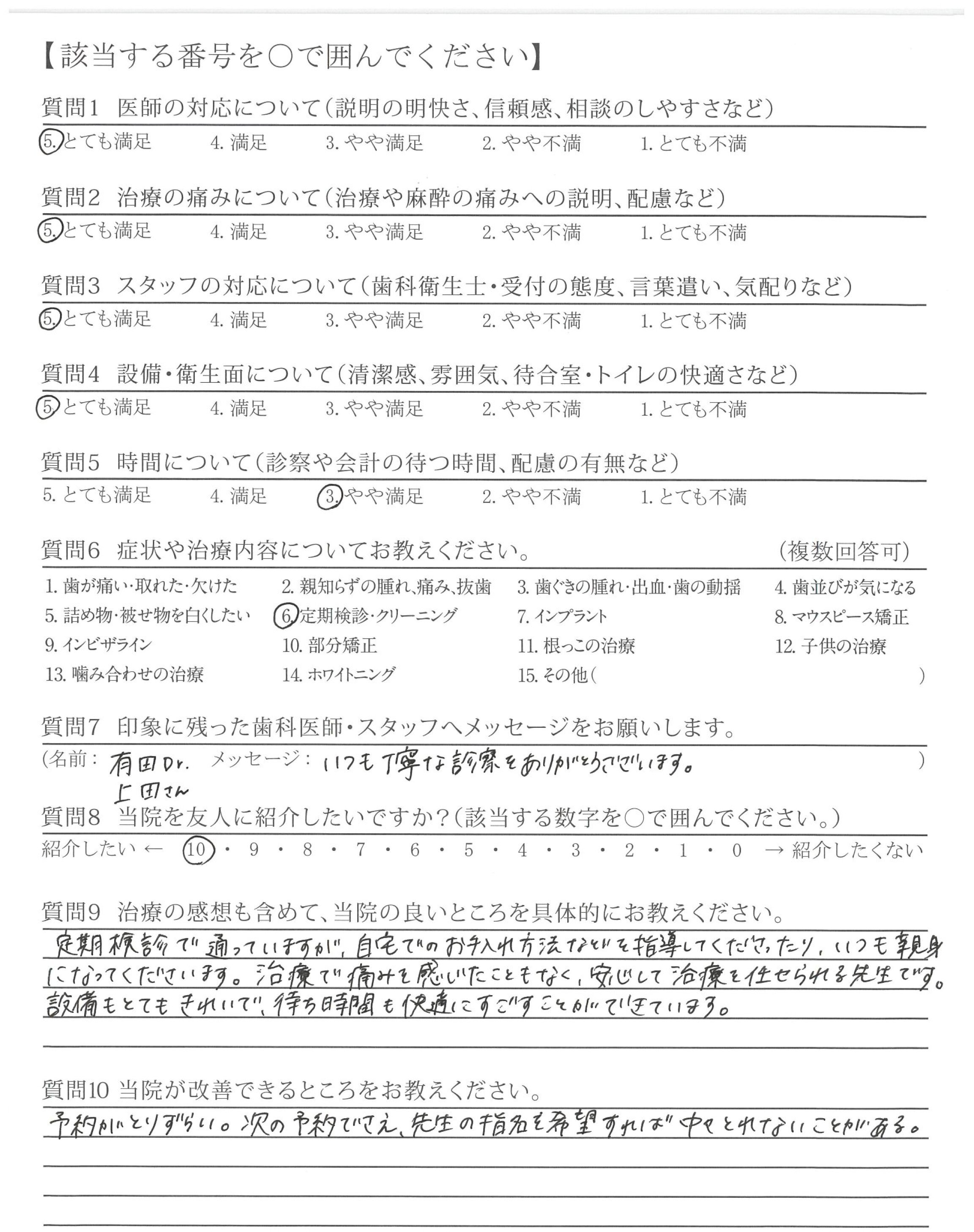 いつも丁寧な診察をありがとうございます。