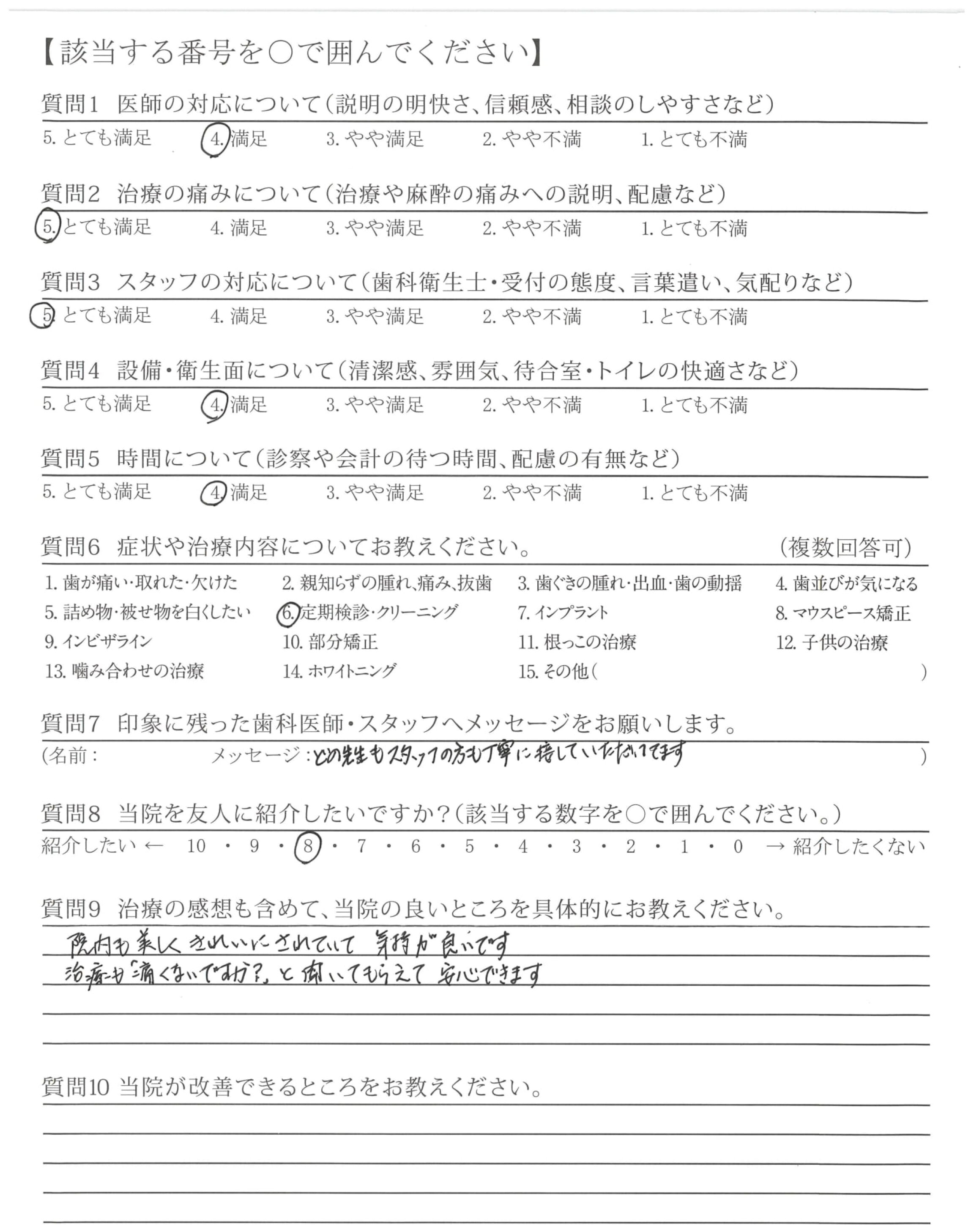 治療が終了日迄何の苦痛もなく、むしろ楽しみながら終えることができました。