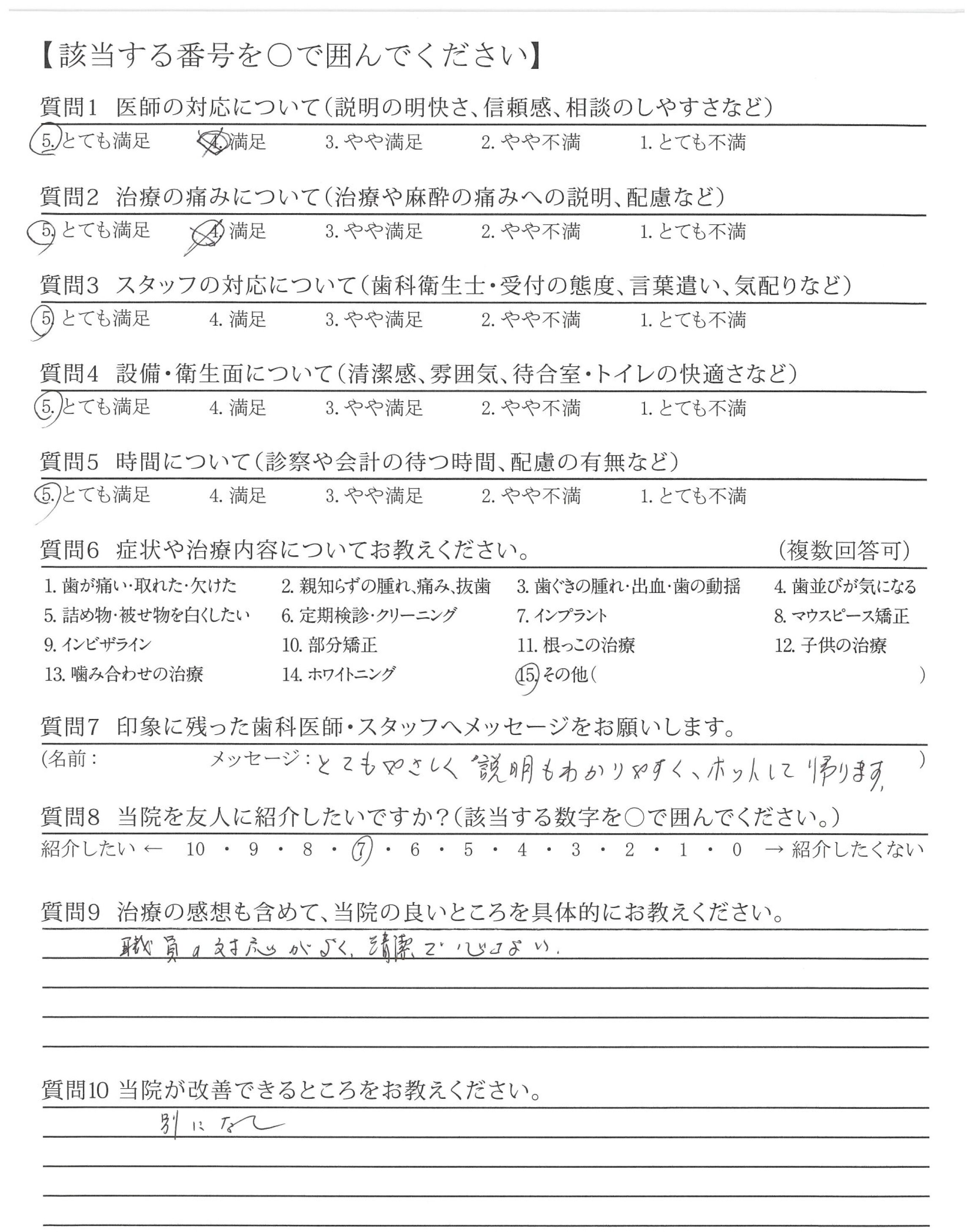 他院に比べて説明がわかりやすく、納得しやすかったです