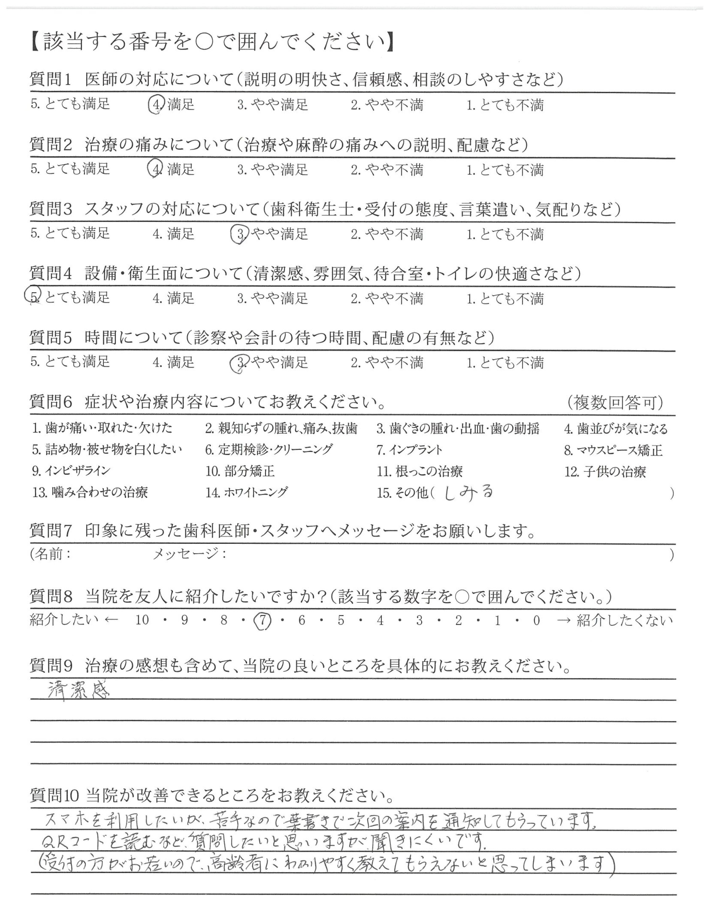 治療方法を明確に説明していただき、安心してまかせられた。