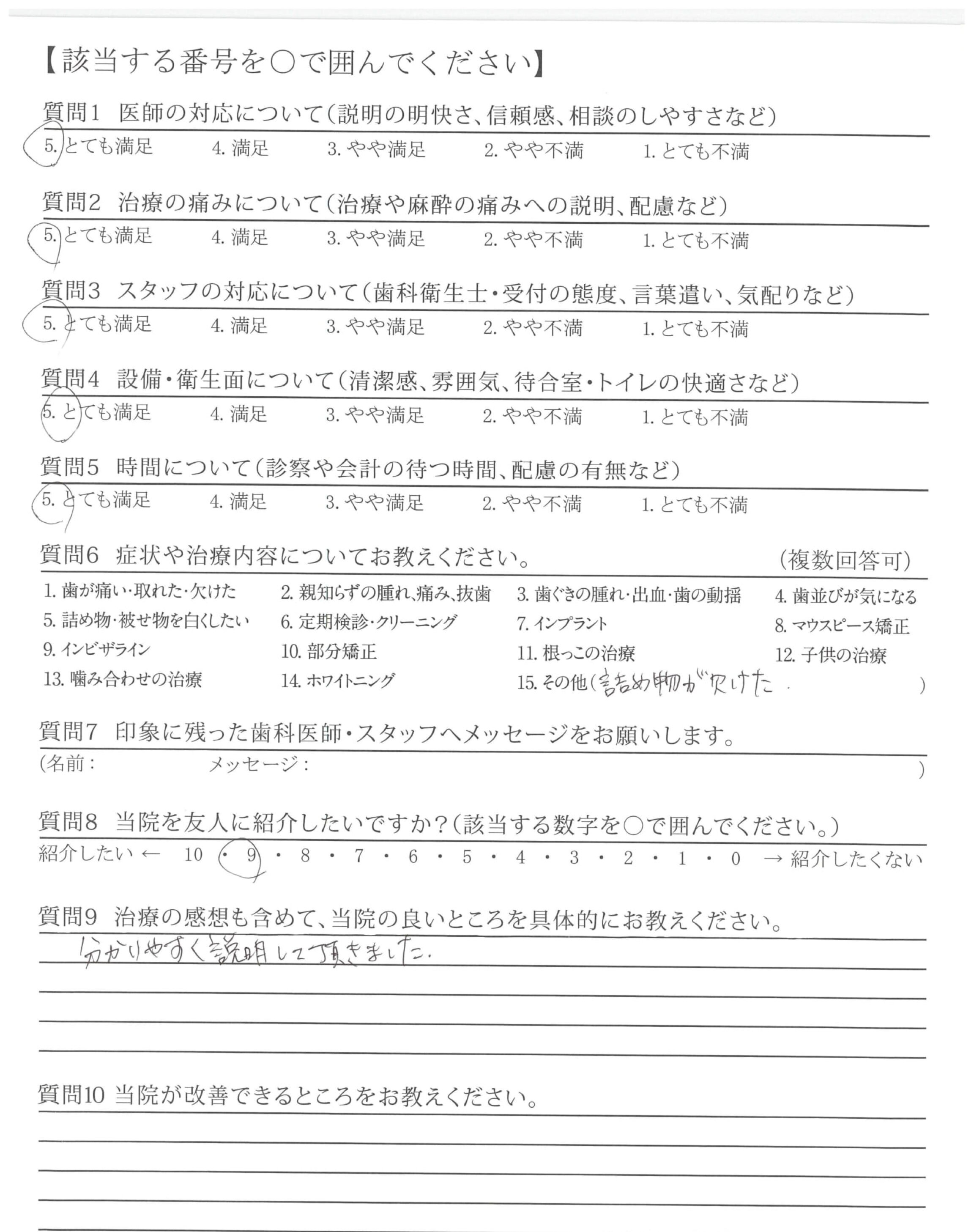 分かりやすい説明と、安心する治療でした。キレイにして頂いてありがとうございました。