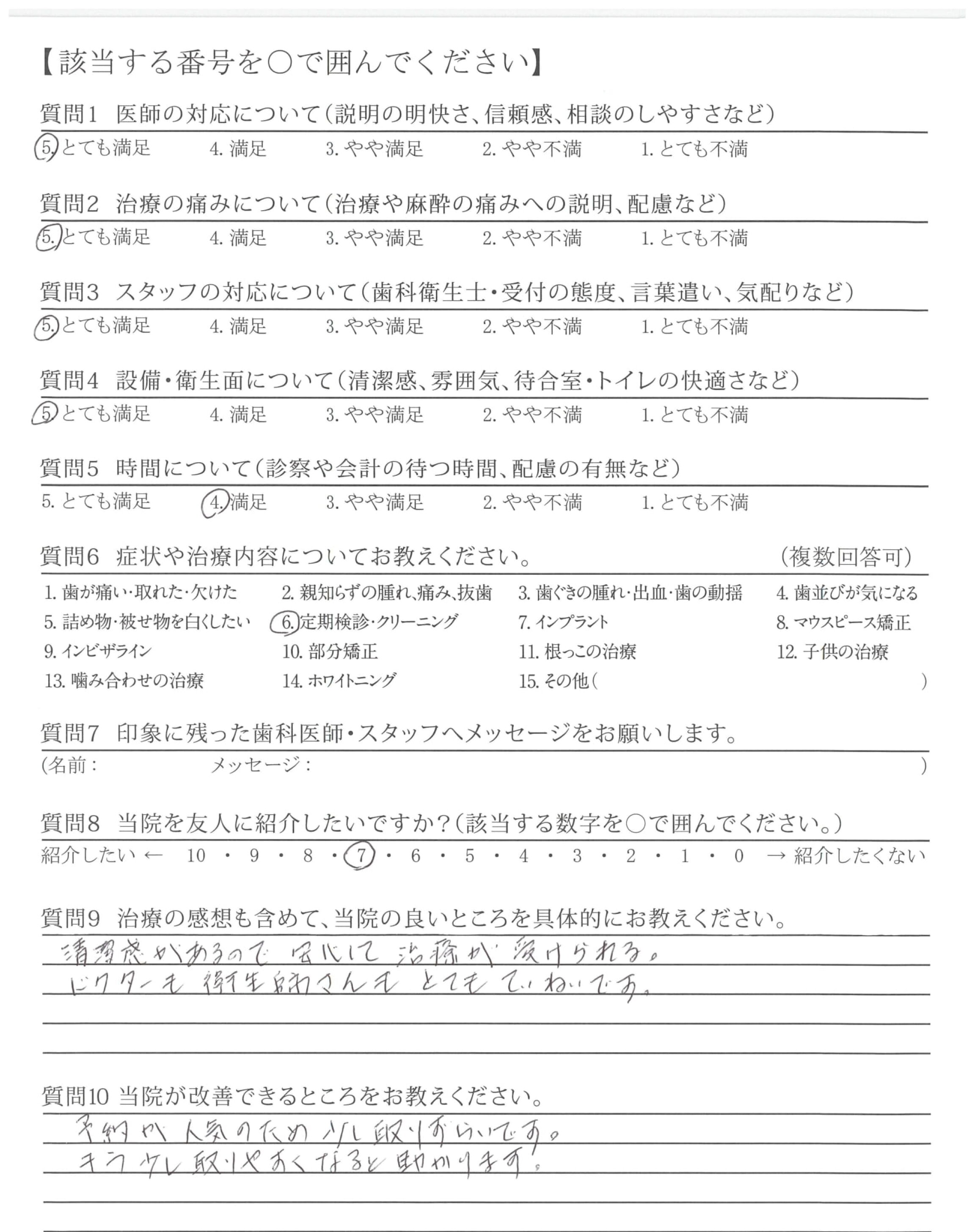 今のご担当の方が悪いわけではありませんが、衛生士さん以前の担当の方が良かったです。(退職されたので仕方ないですが)以前の担当の方のほうが、クリーニングなどかなり細かくされていたので…。