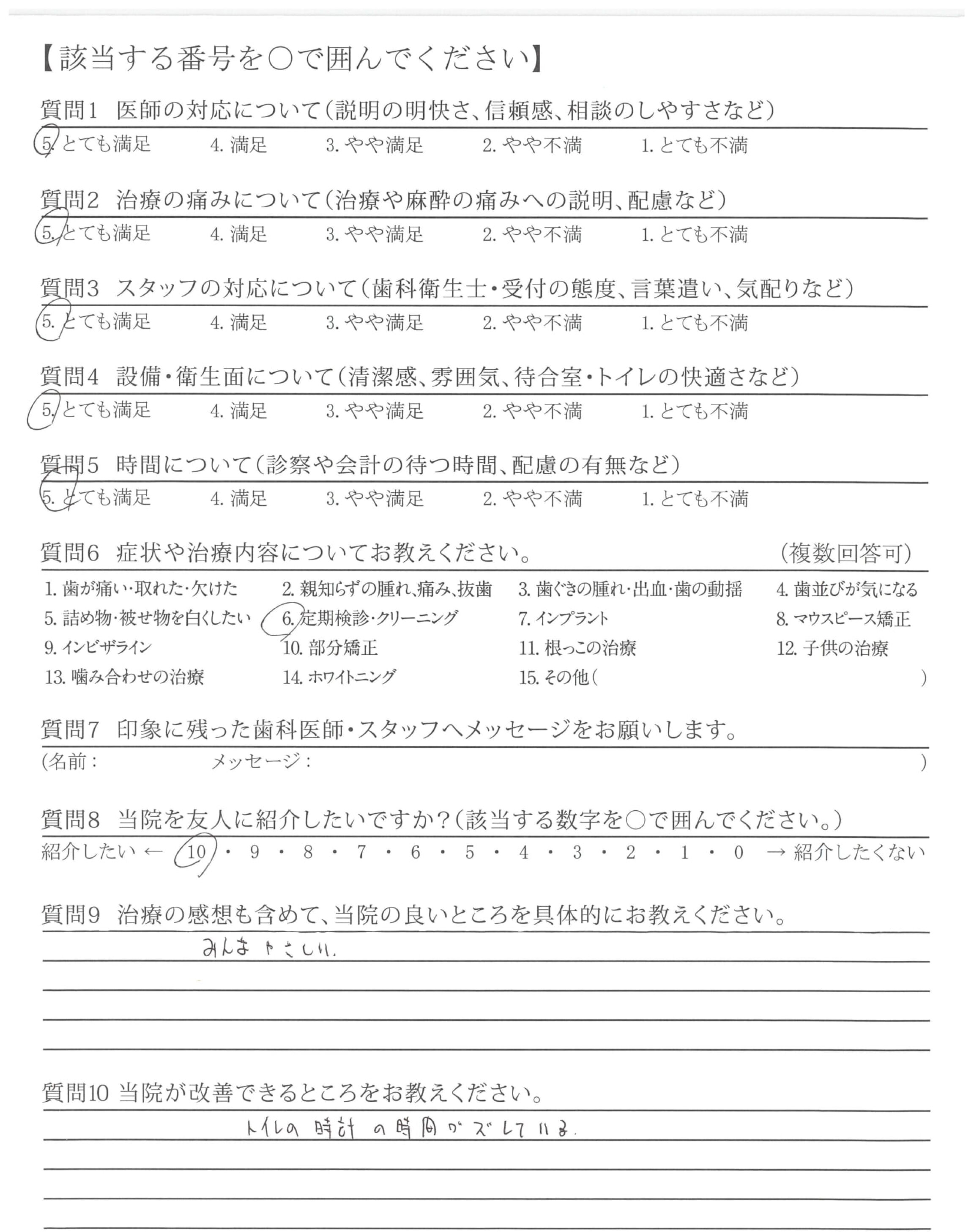 受付の方、衛生士さん、医師の方みなさん優しく丁寧な対応で感じがよかったです。