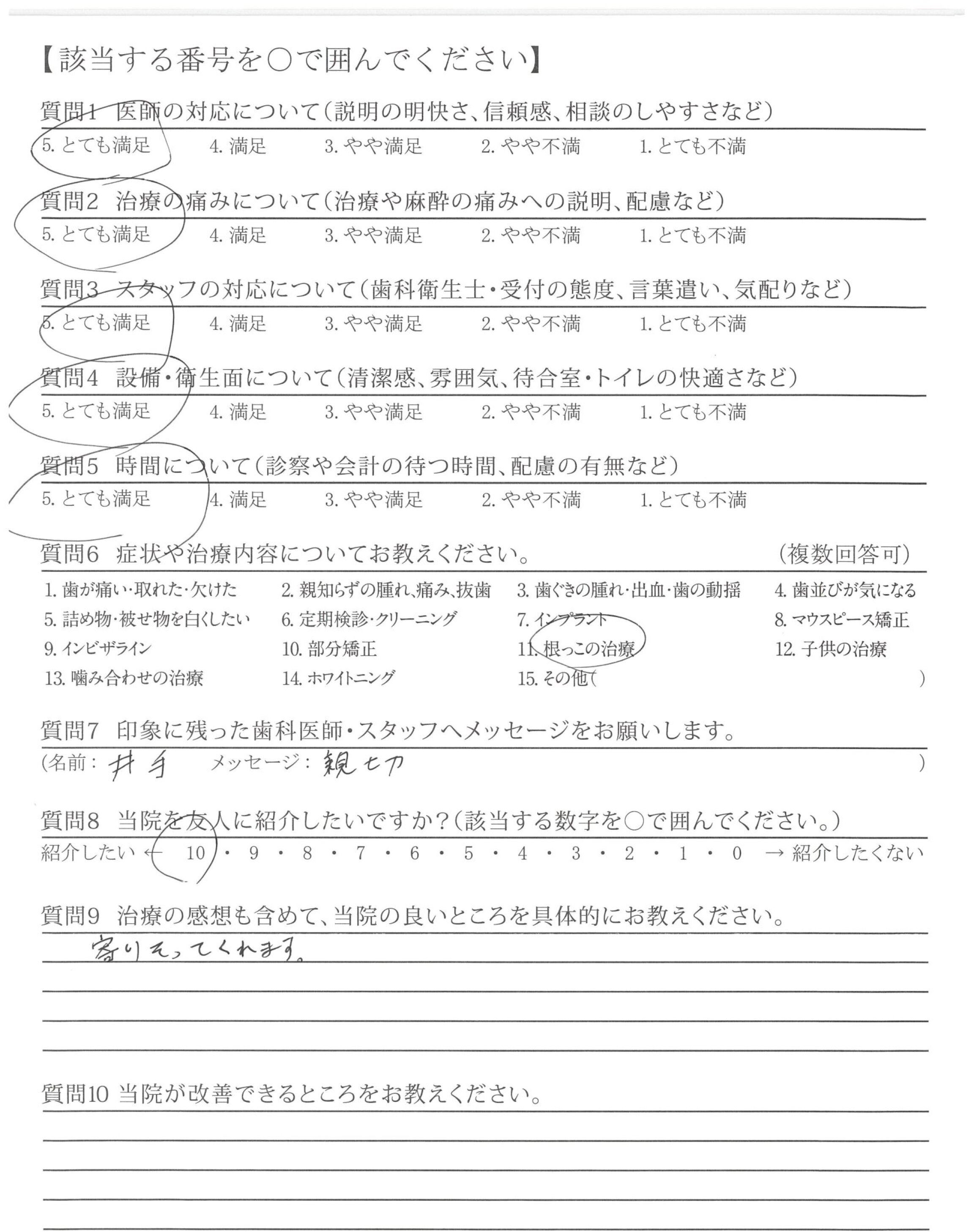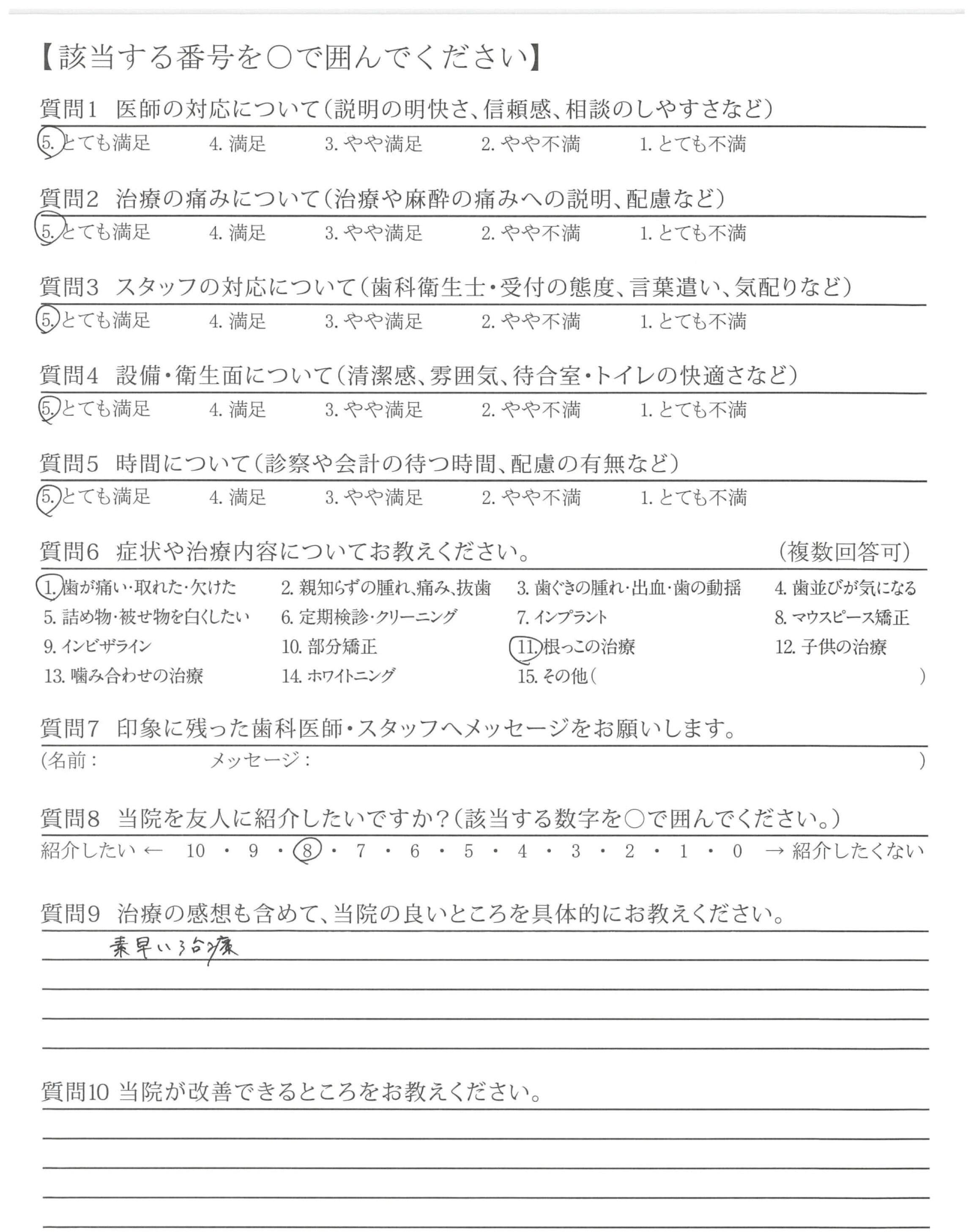 他の歯医者では歯をぬけといわれたが、長い間抜かないでいいようにしてくれたことにとても感謝してます。