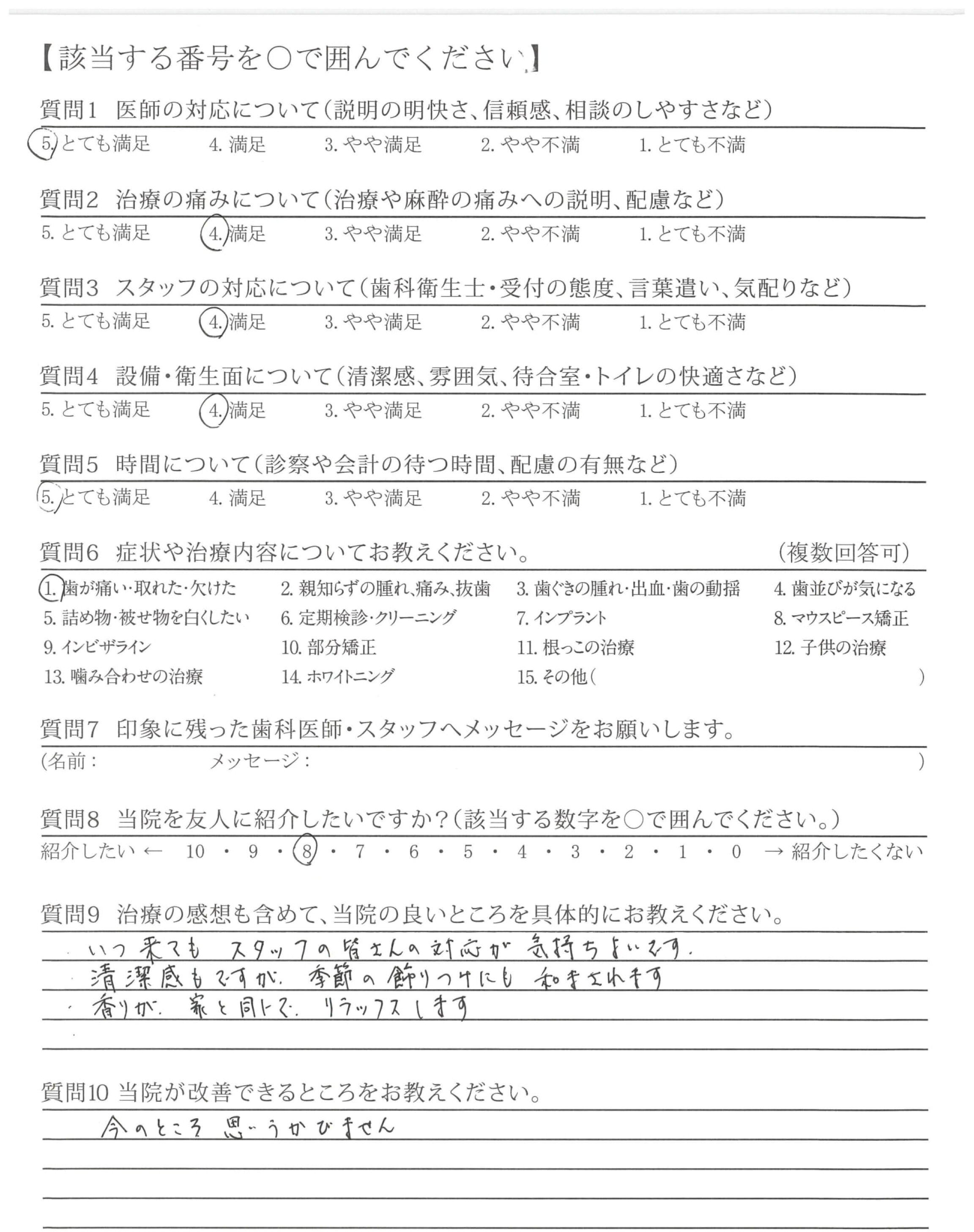 治療後に歯に対するケアにもくわしく、自ら関心を持つことができた。