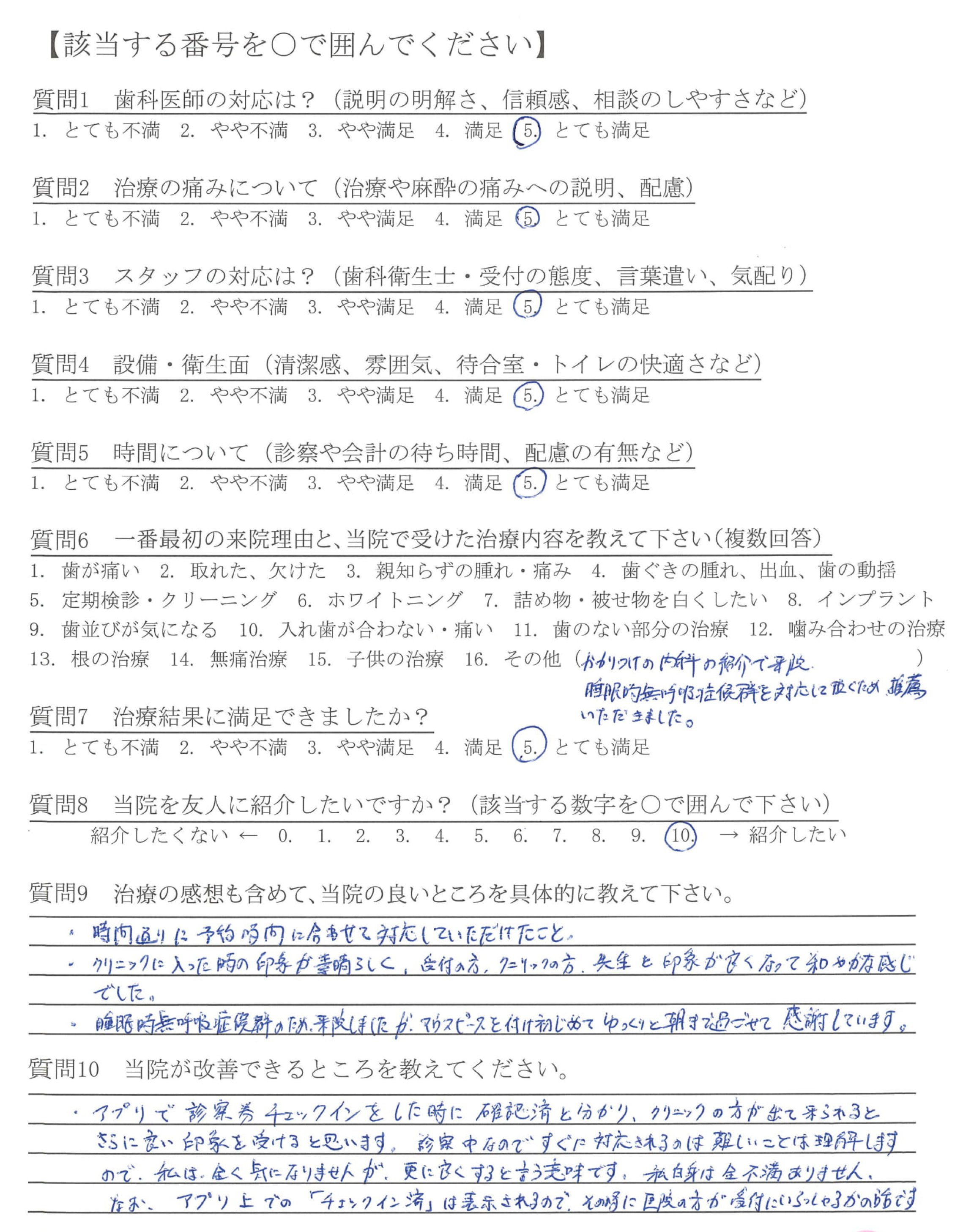 ・睡眠時無呼吸症候群のため、来院しましたが、マウスピースを付け初めてゆっくりと朝まで過ごせて感謝しています。