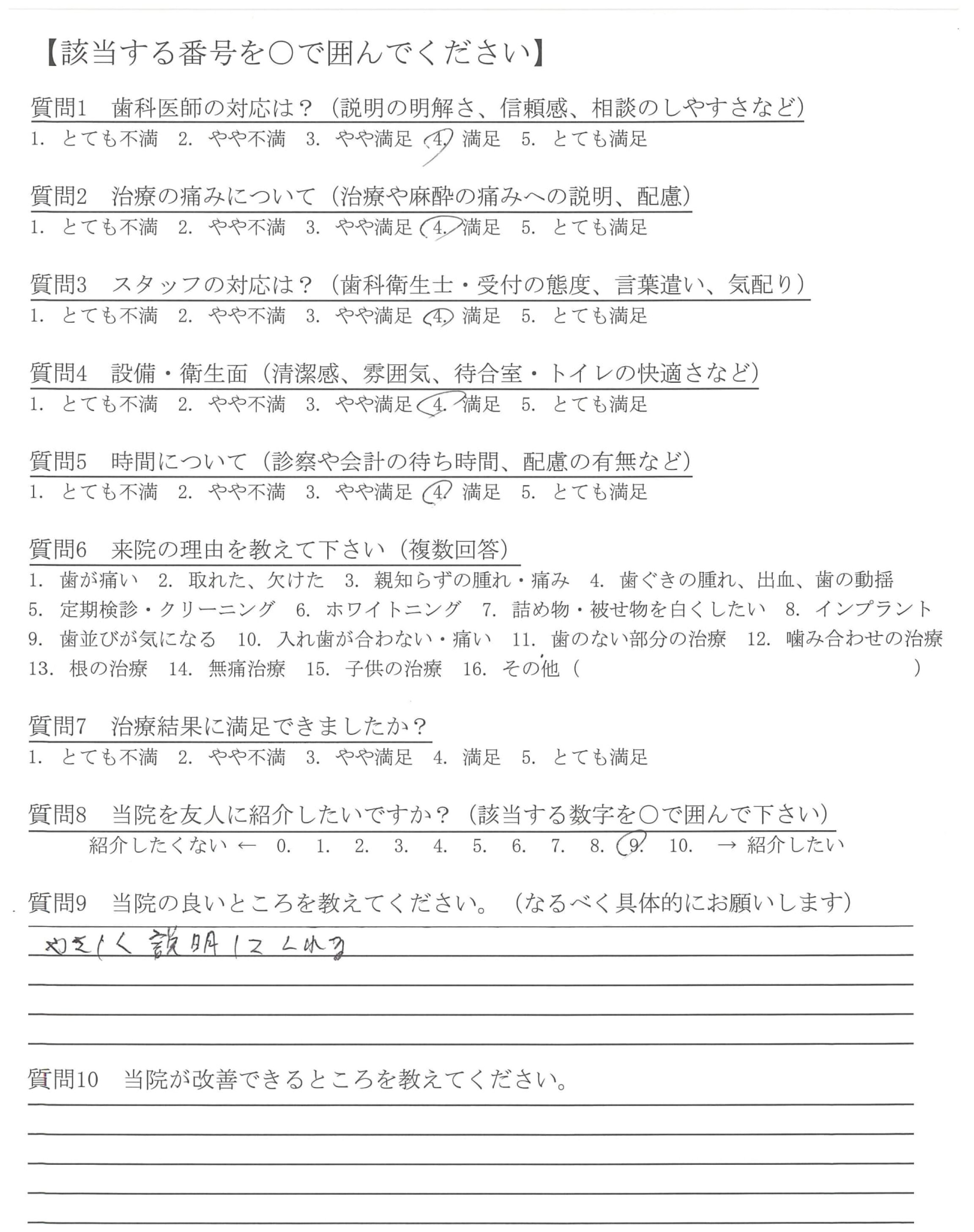 | 歯科医師の対応 | ![]() ![]() ![]() ![]() 4.51 |