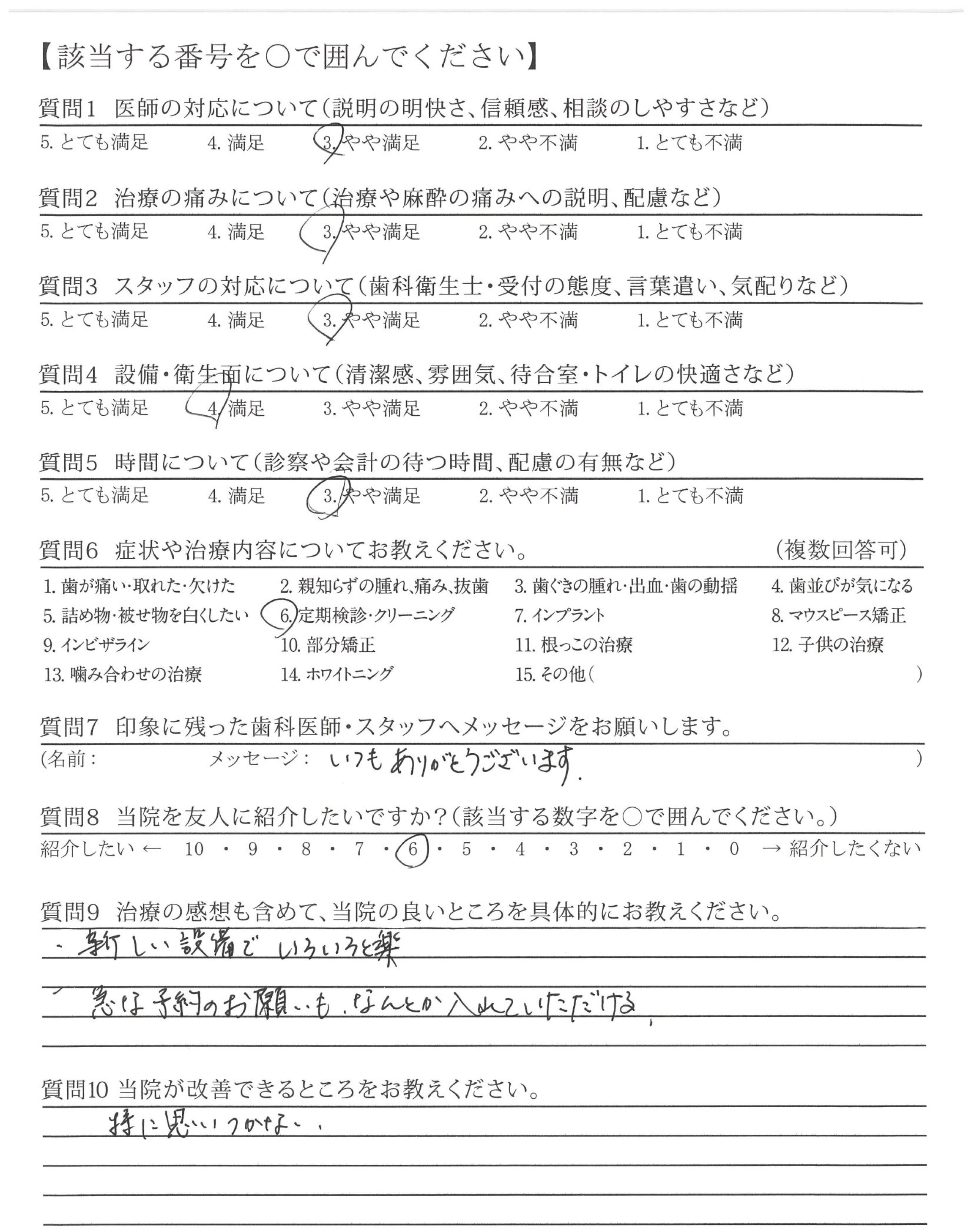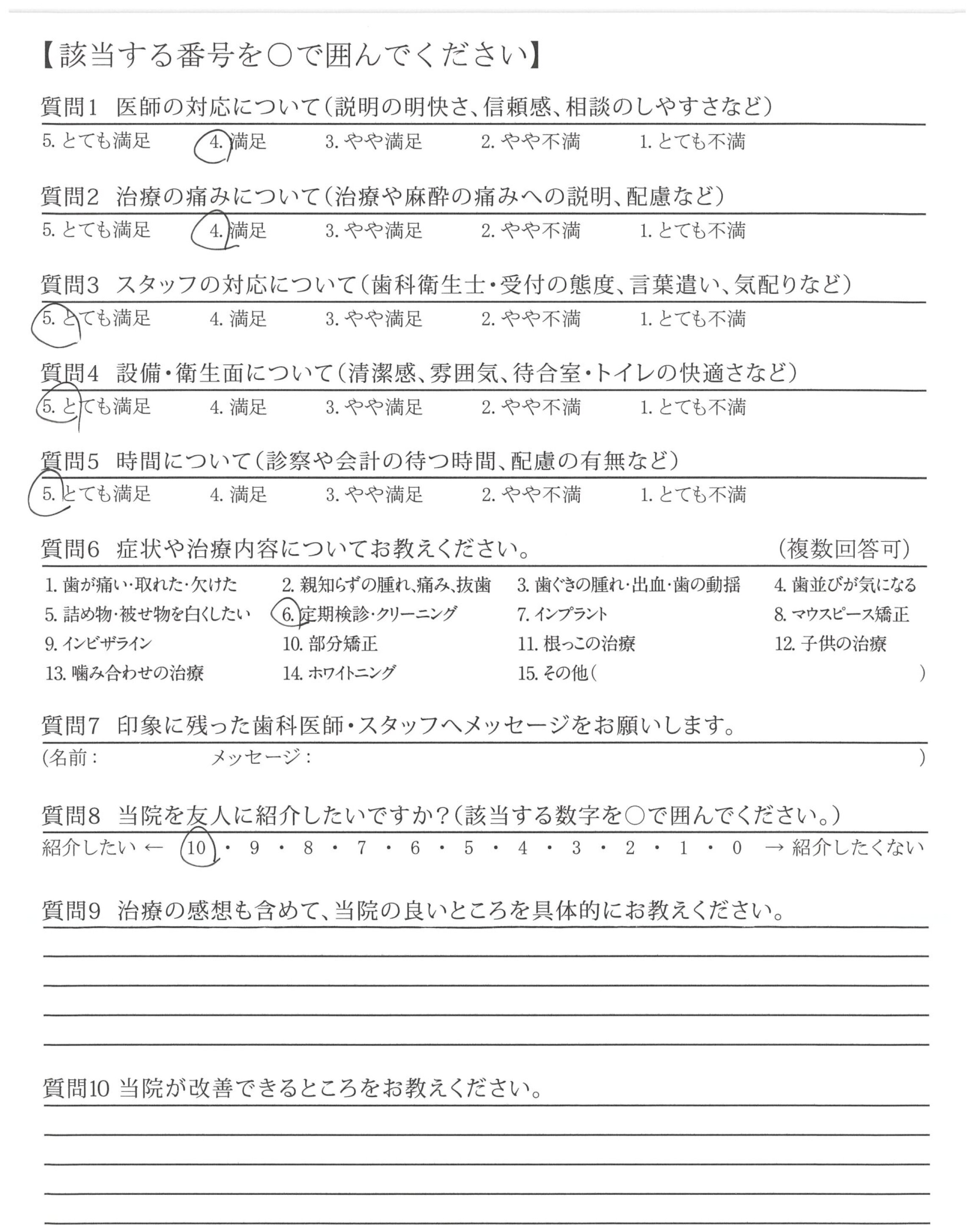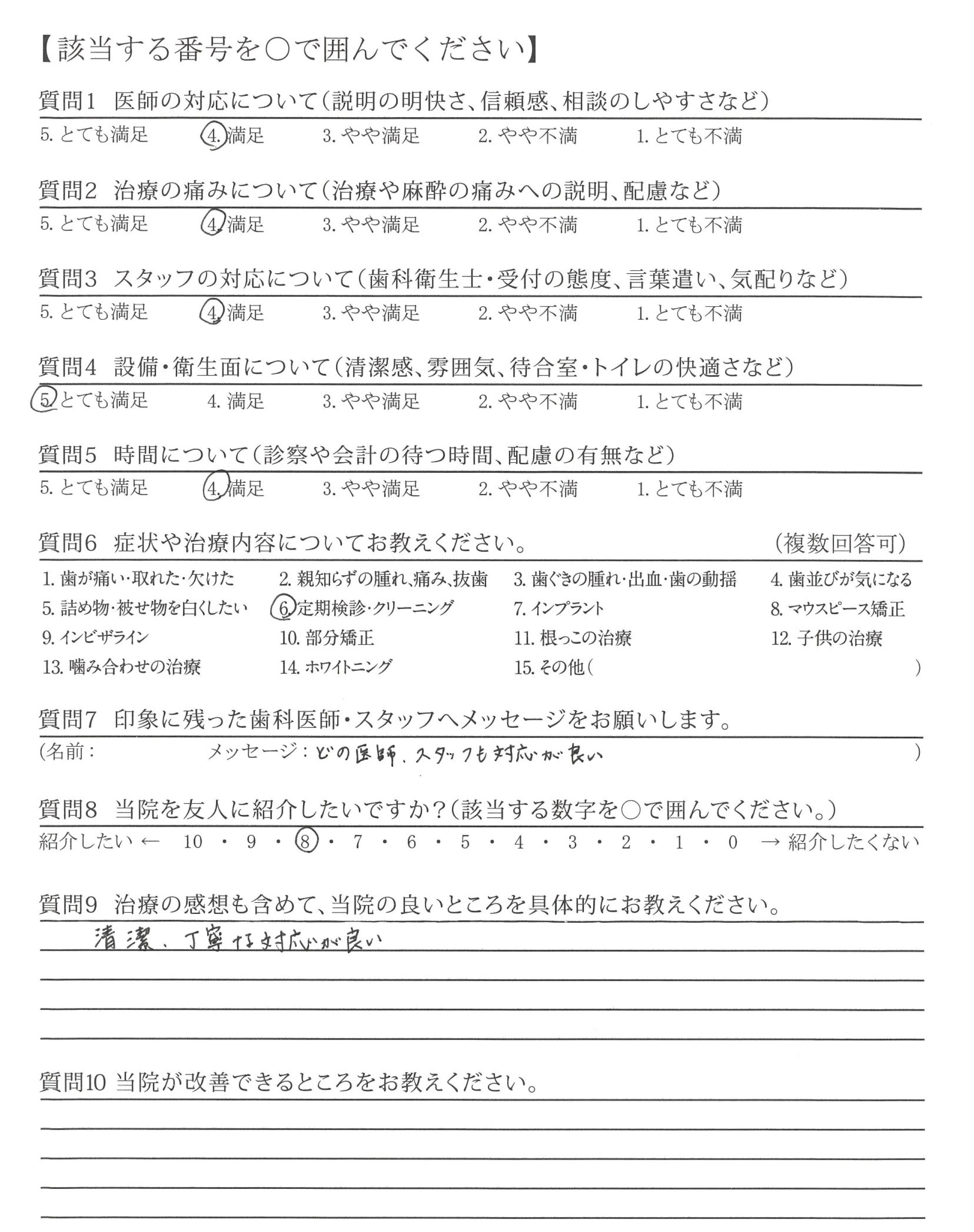 | 治療の痛みへの配慮 | ![]() ![]() ![]() ![]() 4.45 |