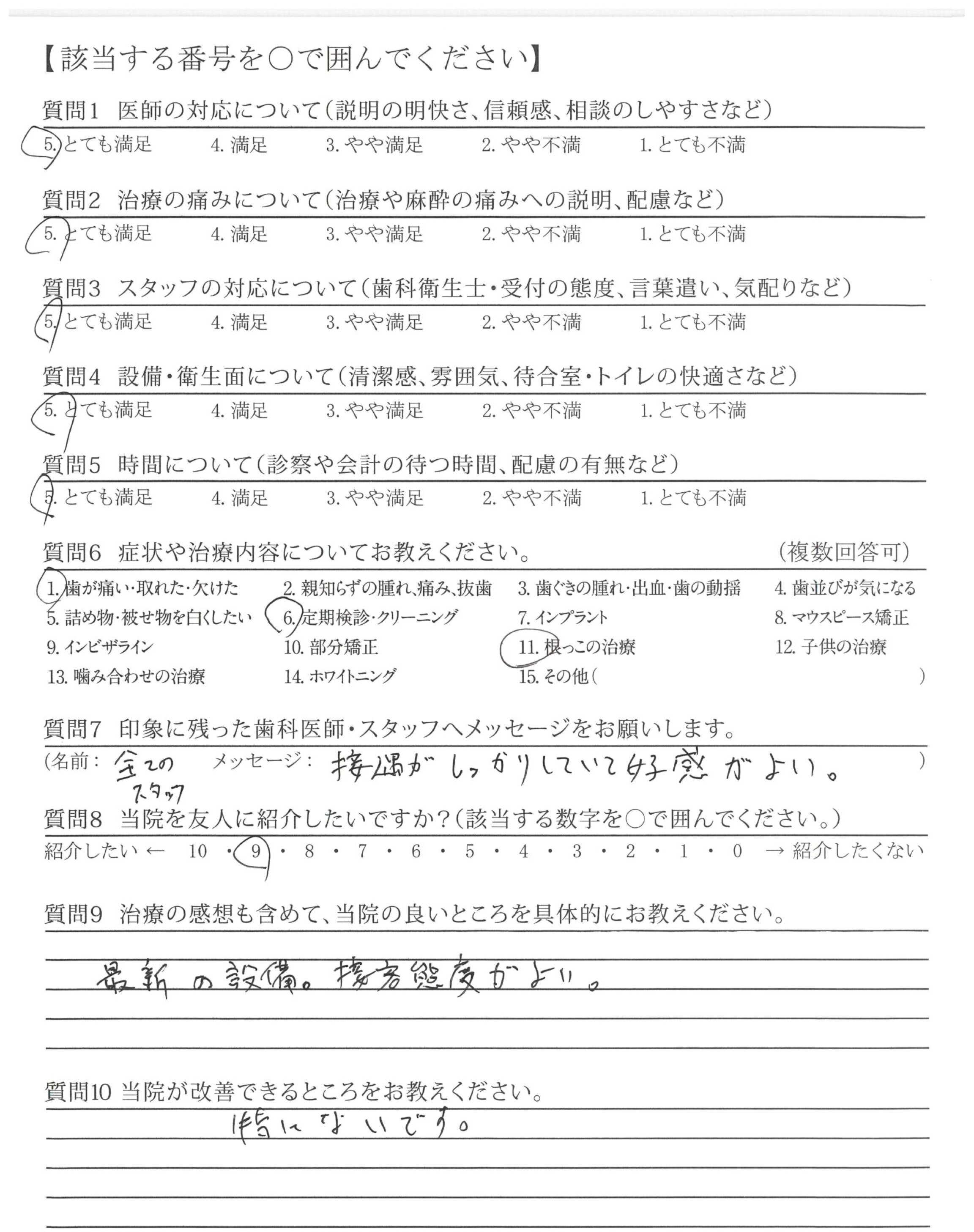 今まで5~6件歯医者さんに行きましたが今までにない対応で大変満足しています。