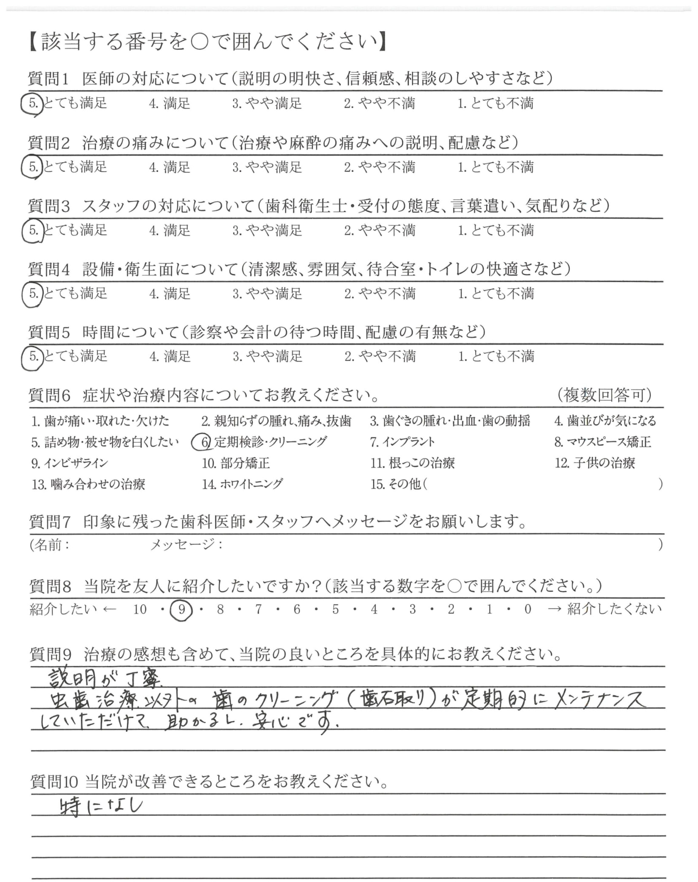改善できるところを教えていただけるので次回検診時により良い状態にしようと思えます。