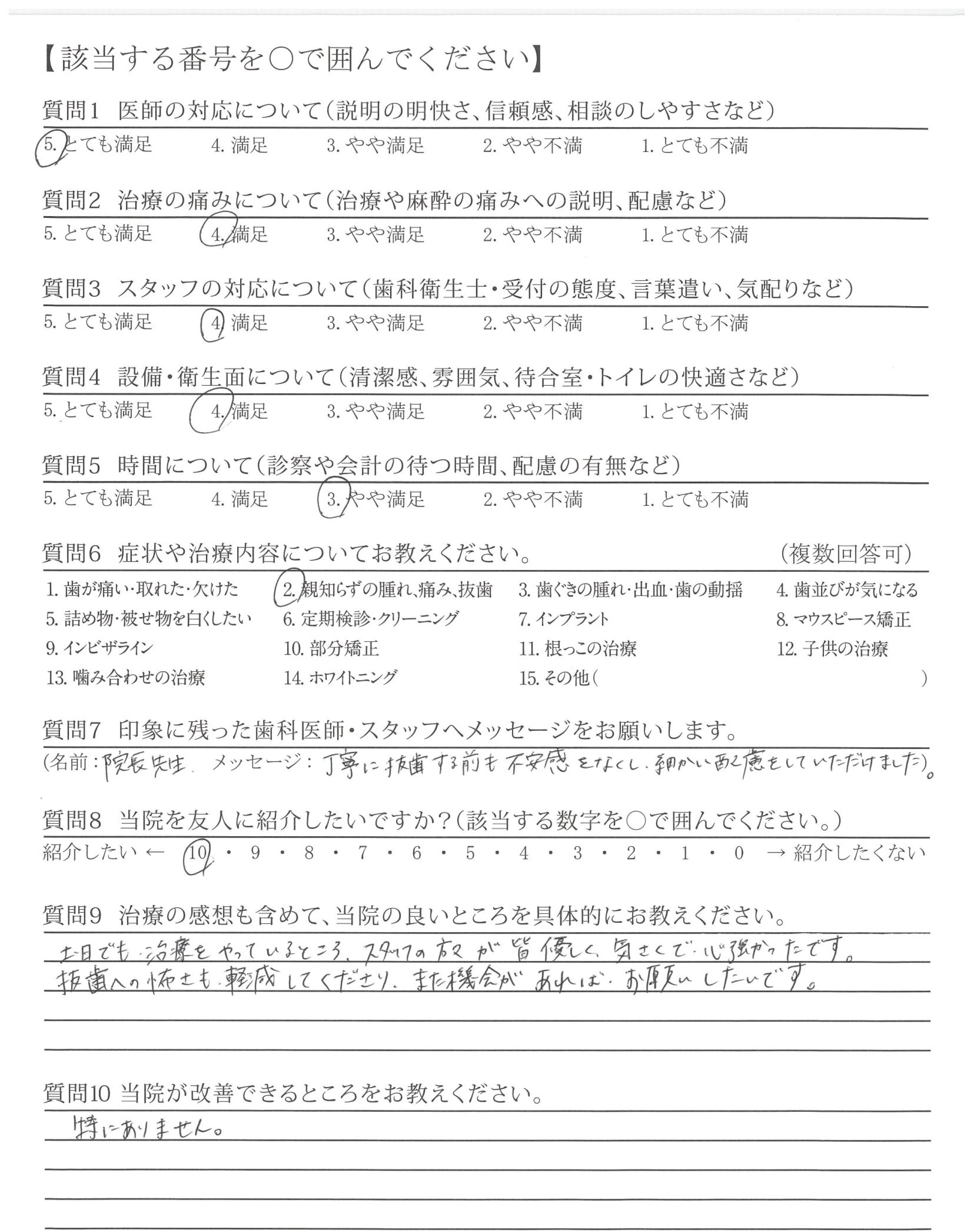抜歯への怖さも軽減してくださり、また機会があればお願いしたいです。