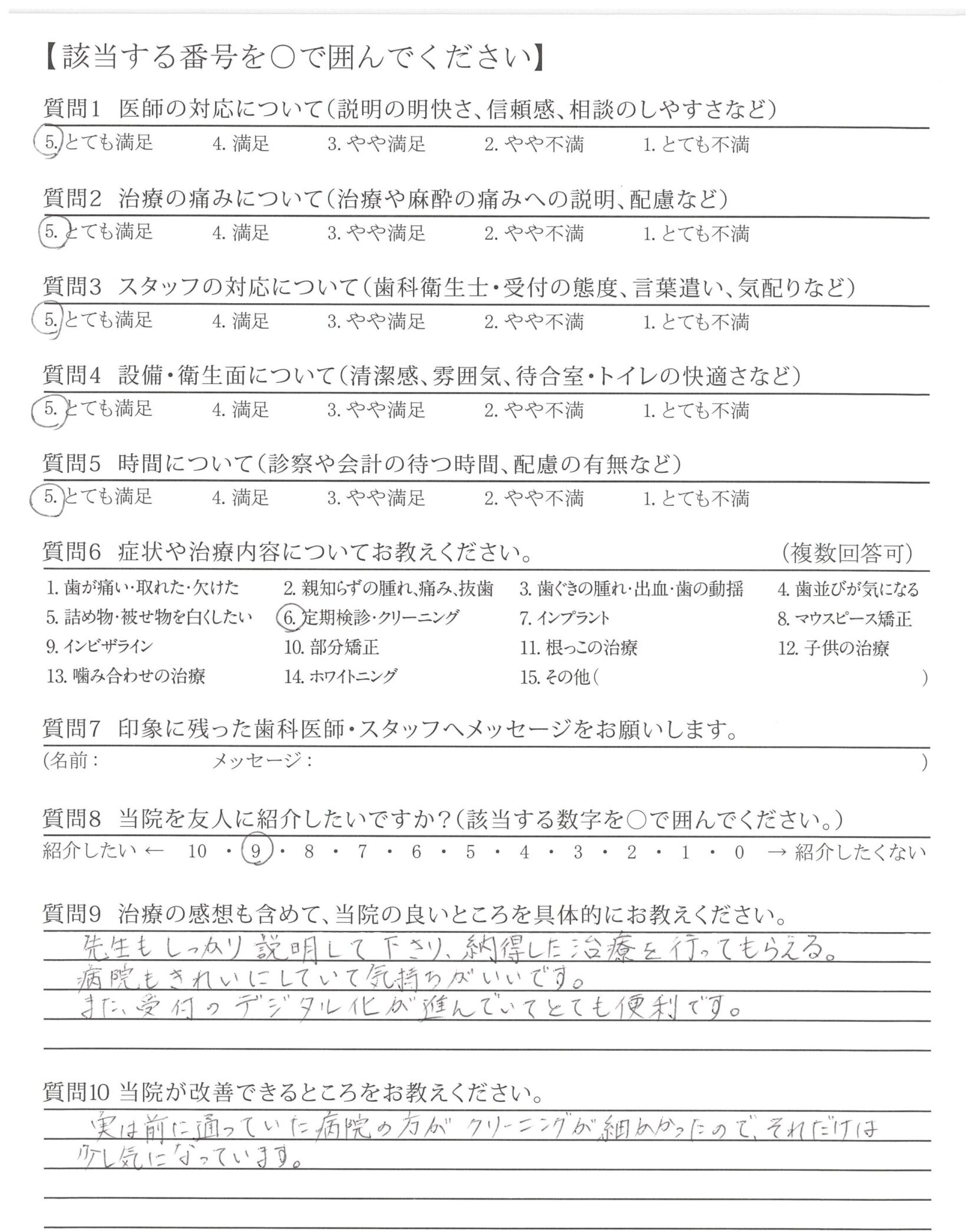 痛みもほとんどなく、短時間で終了し、感動しました。ありがとうございました。