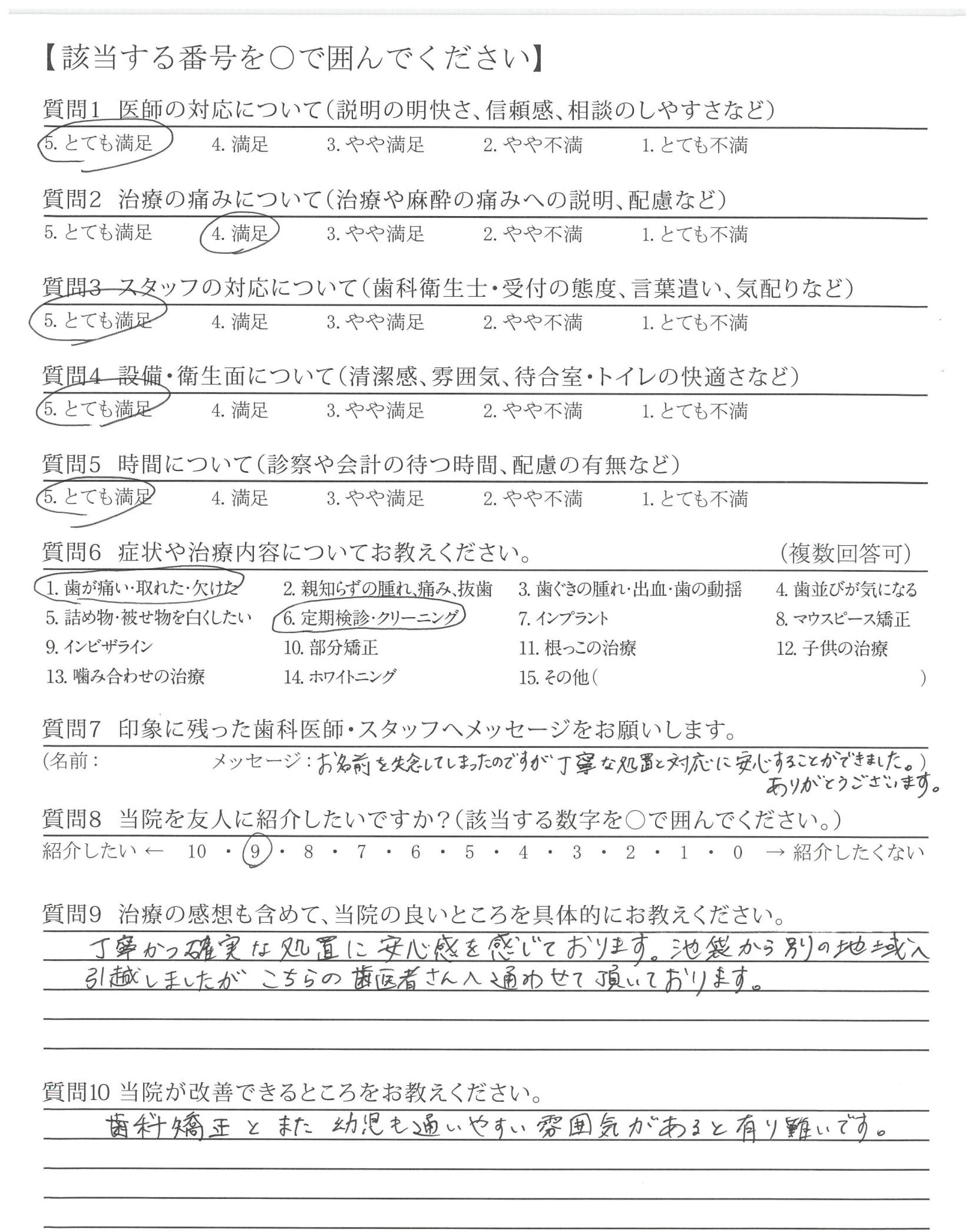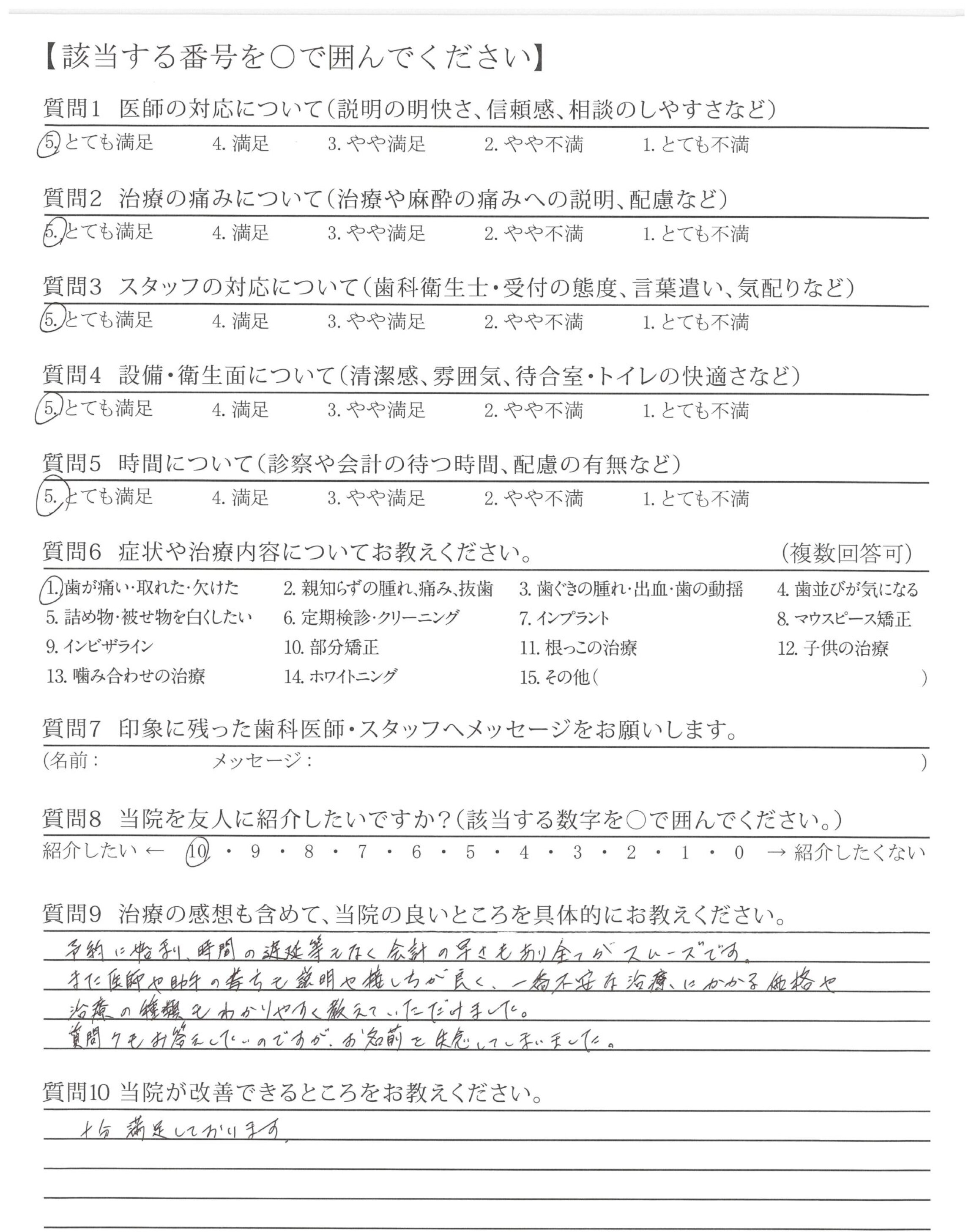これまでの治療時の説明もとてもしっかりとして下さいました。感謝しています!