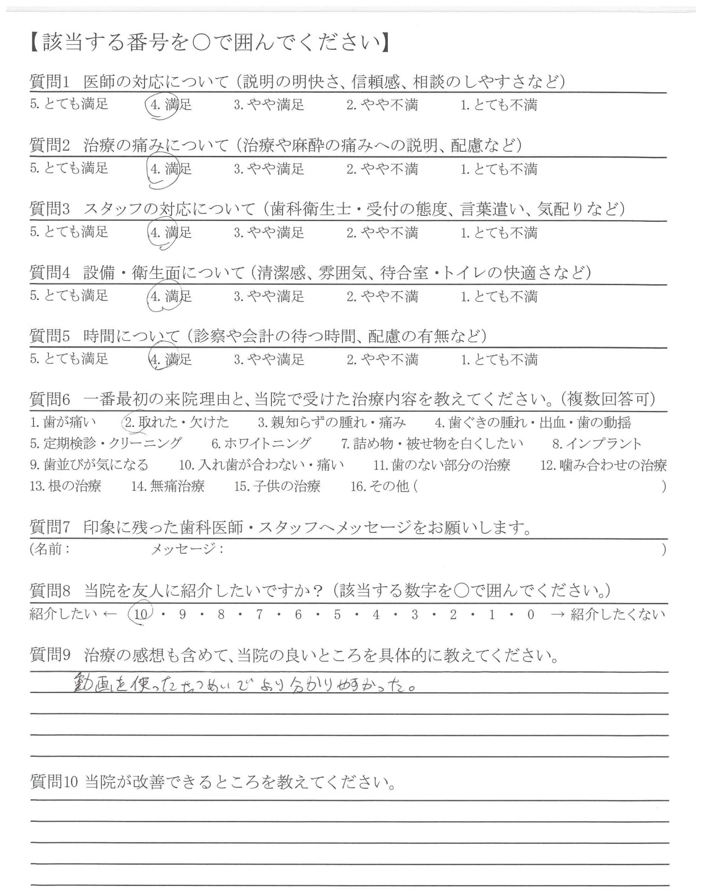 | 歯科医師の対応 | ![]() ![]() ![]() ![]() 4.25 |