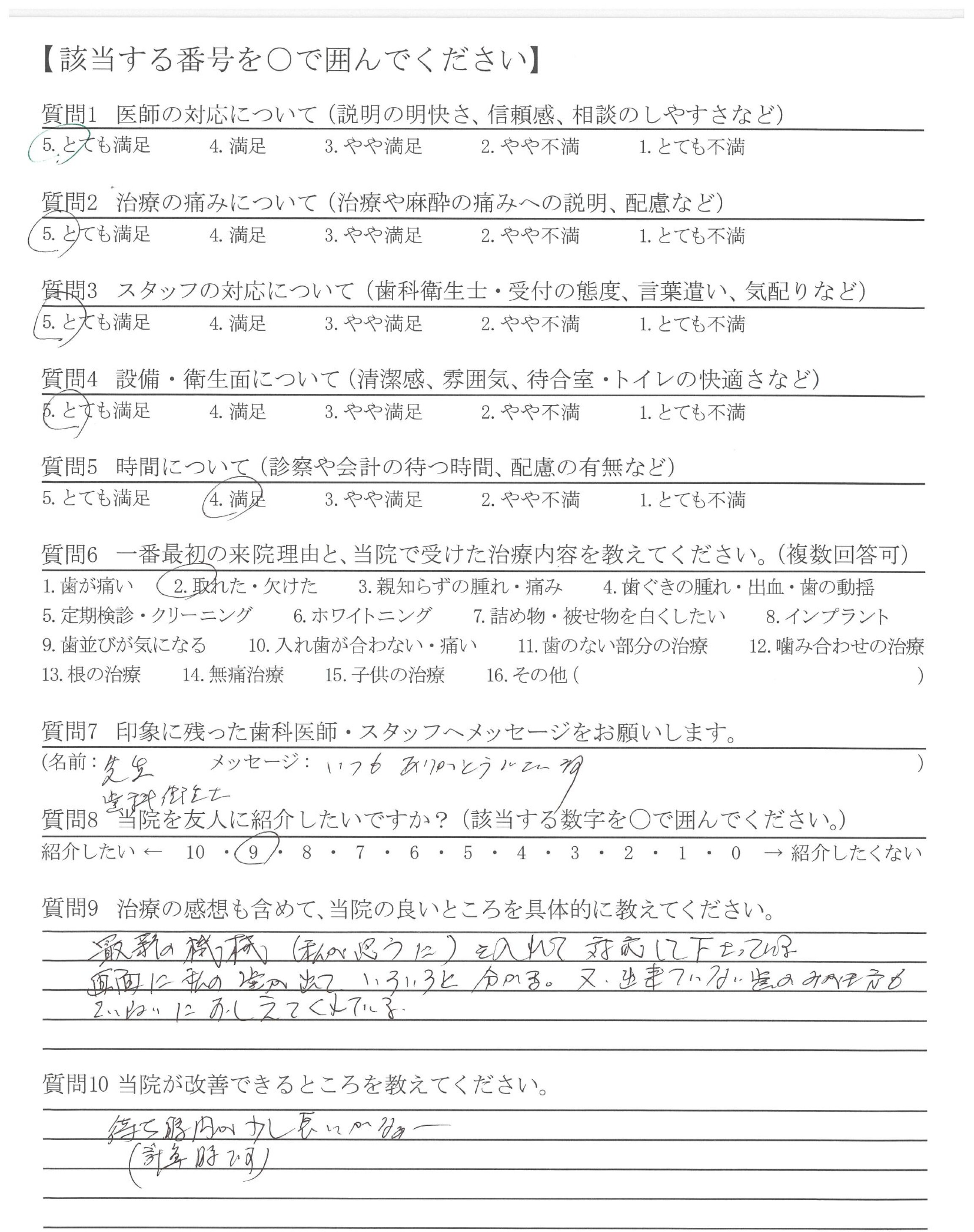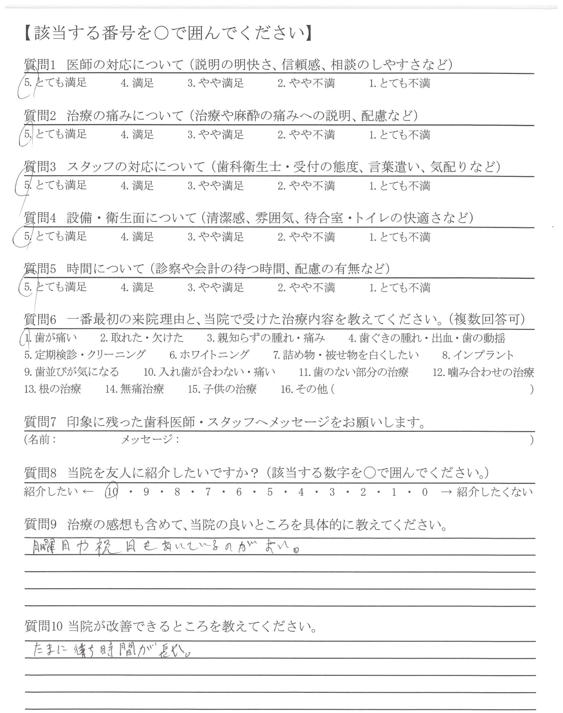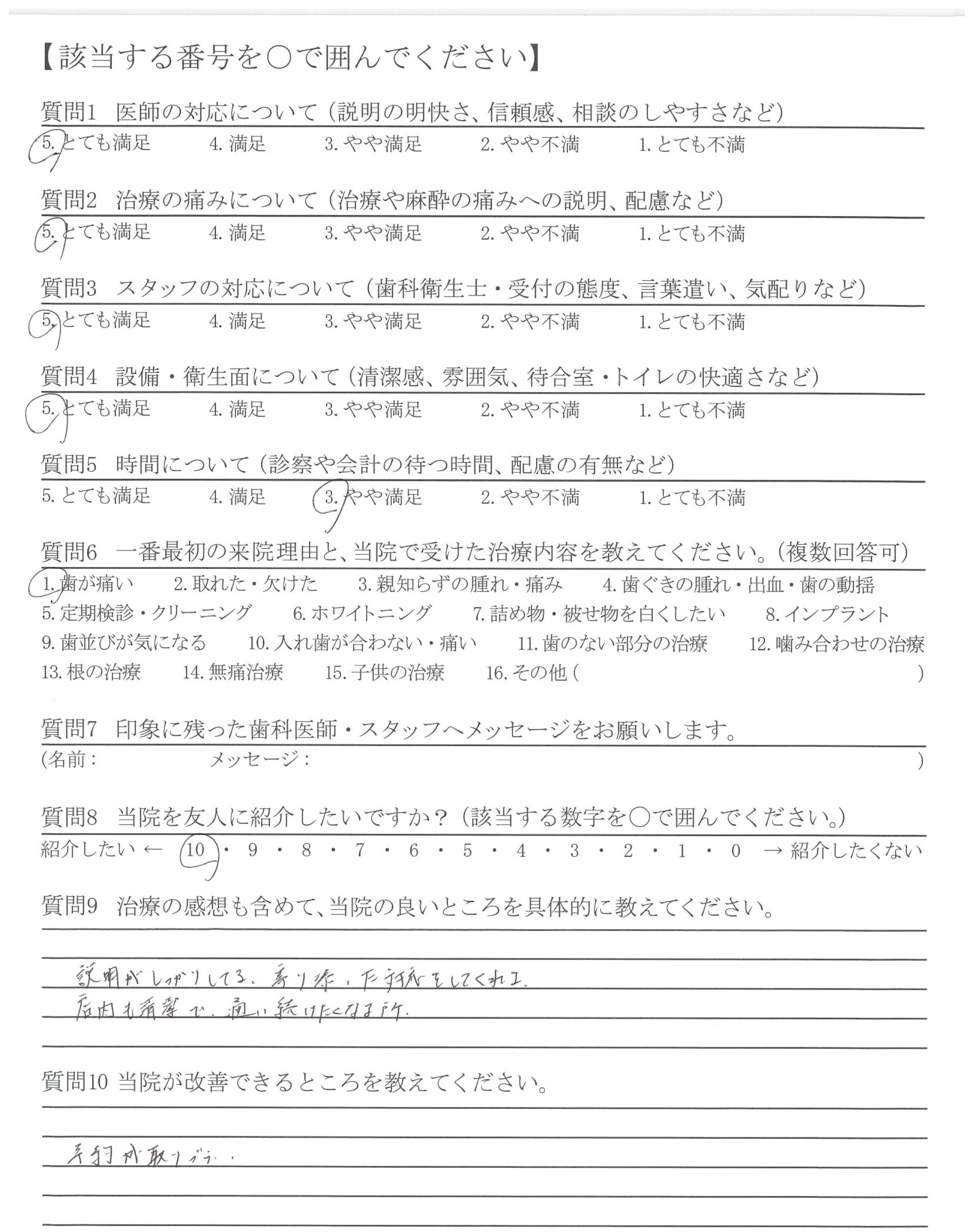 ・丁ねいに診察をしてもらえて、しっかり時間をかけて治療をしてもらえている印象があります。