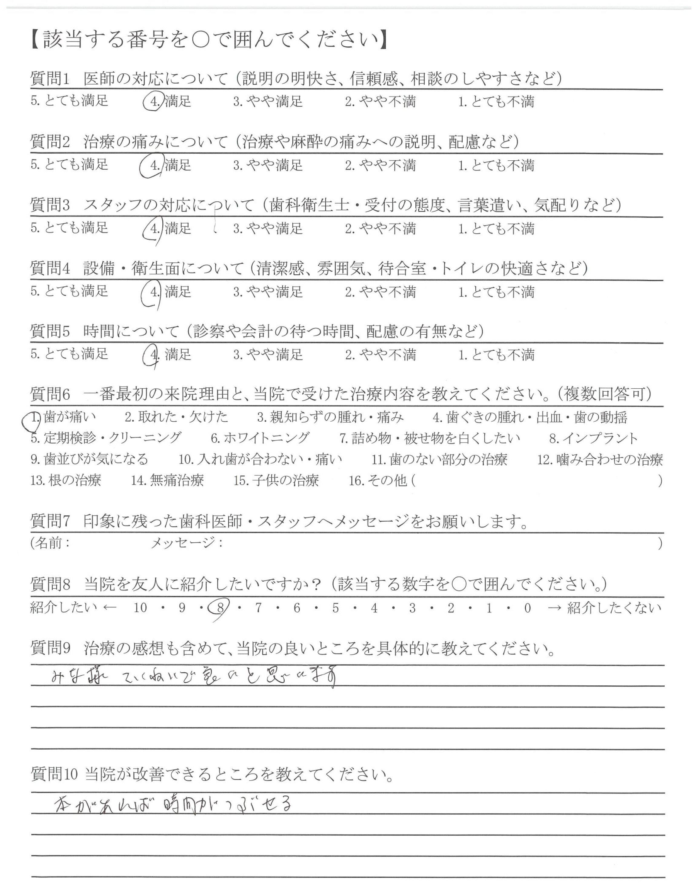 | 治療の痛みへの配慮 | ![]() ![]() ![]() ![]() 4.27 |