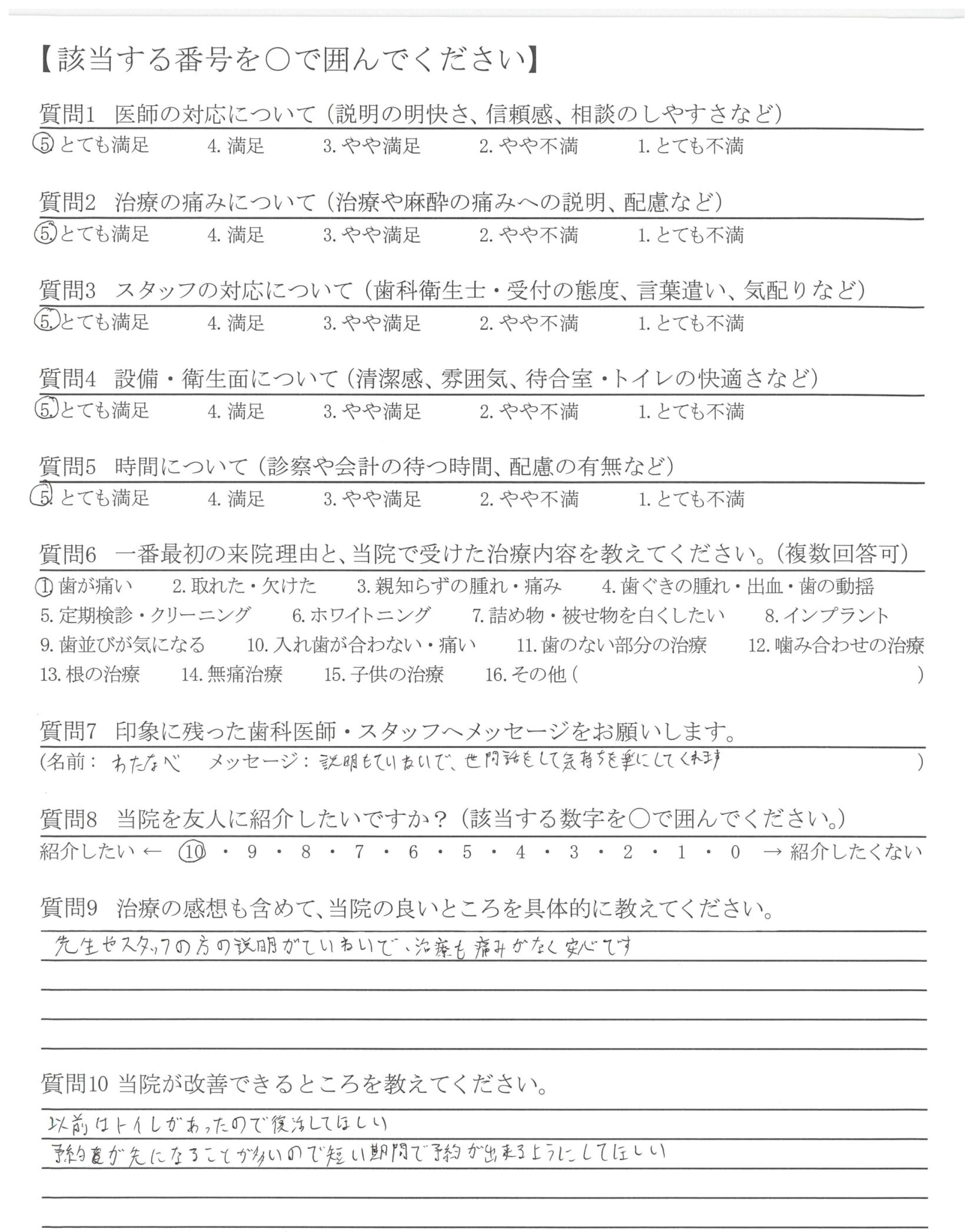 先生やスタッフの方の説明がていねいで、治療も痛みがなく安心です