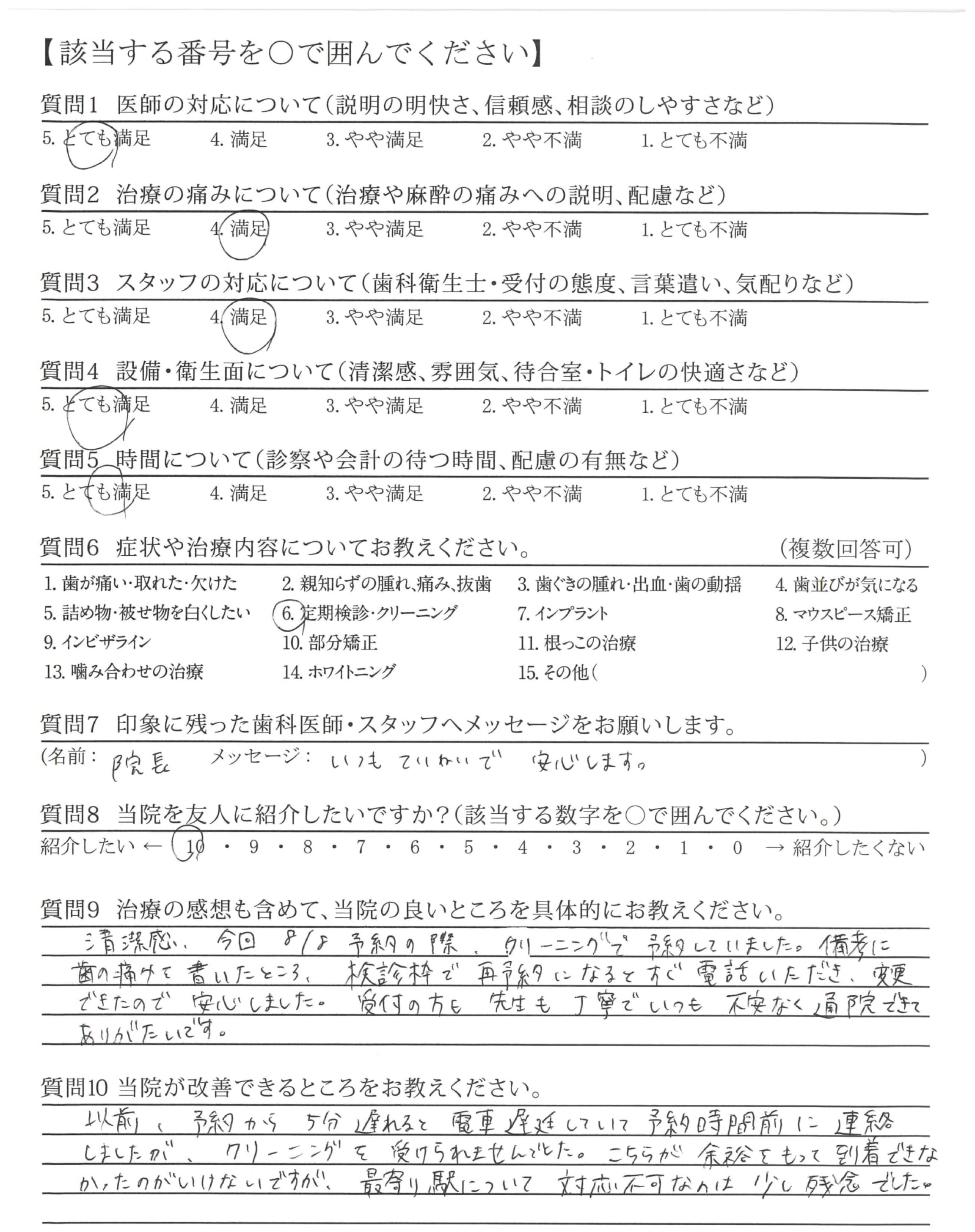 抜歯がとても上手でした。虫歯治療も丁寧で、いつもありがとうございます。