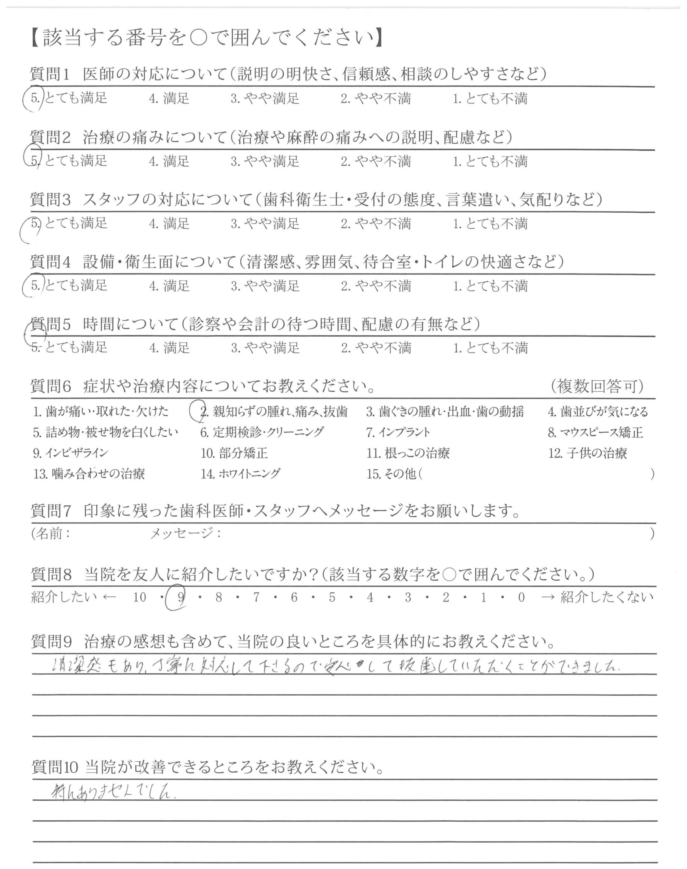 抜いた親知らずもすぐに良くなり、術後も痛みが少なく感謝してます。