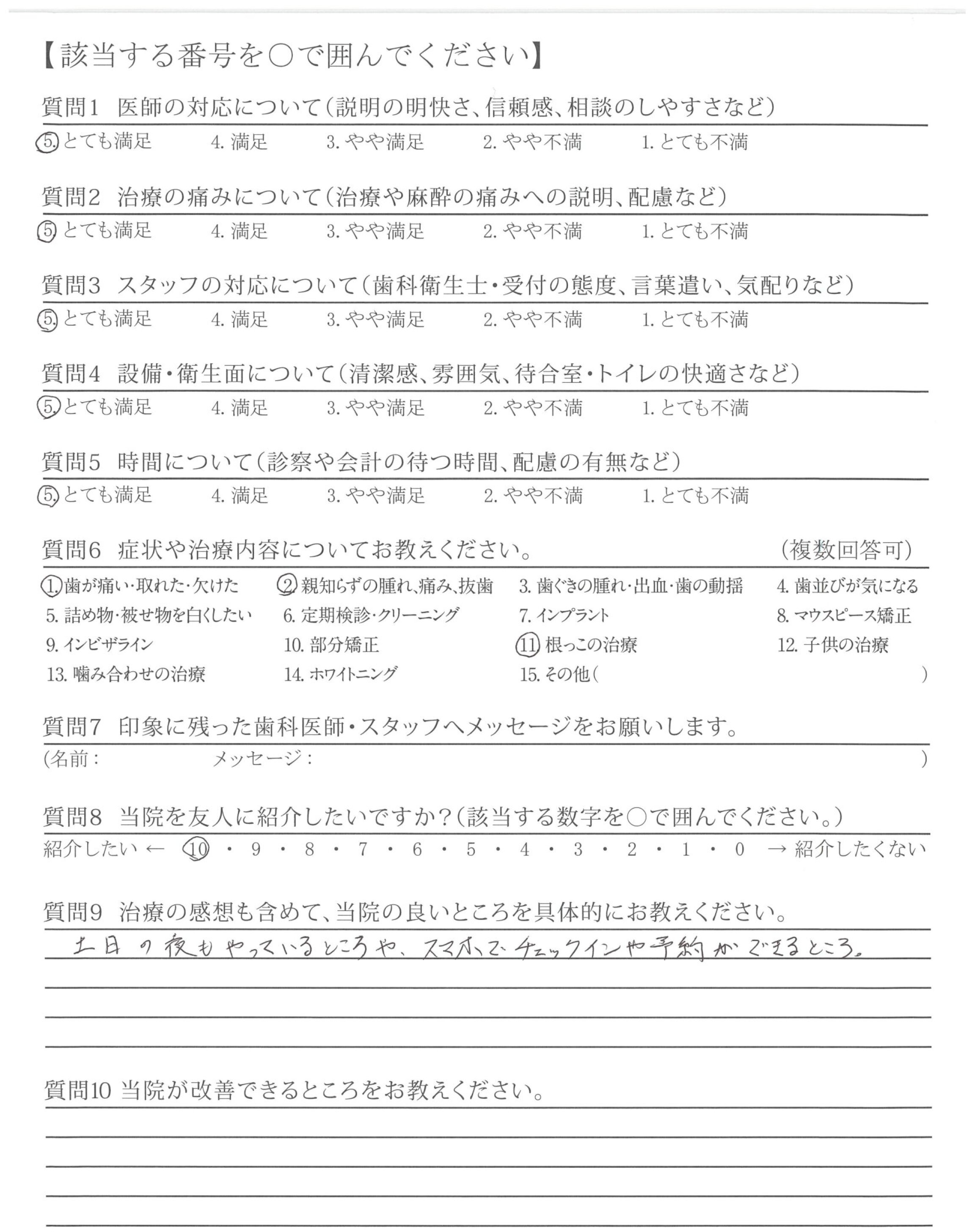 土・日の希望で予約もとりやすく、スタッフの方もていねいで適切、過度でない対応でした。