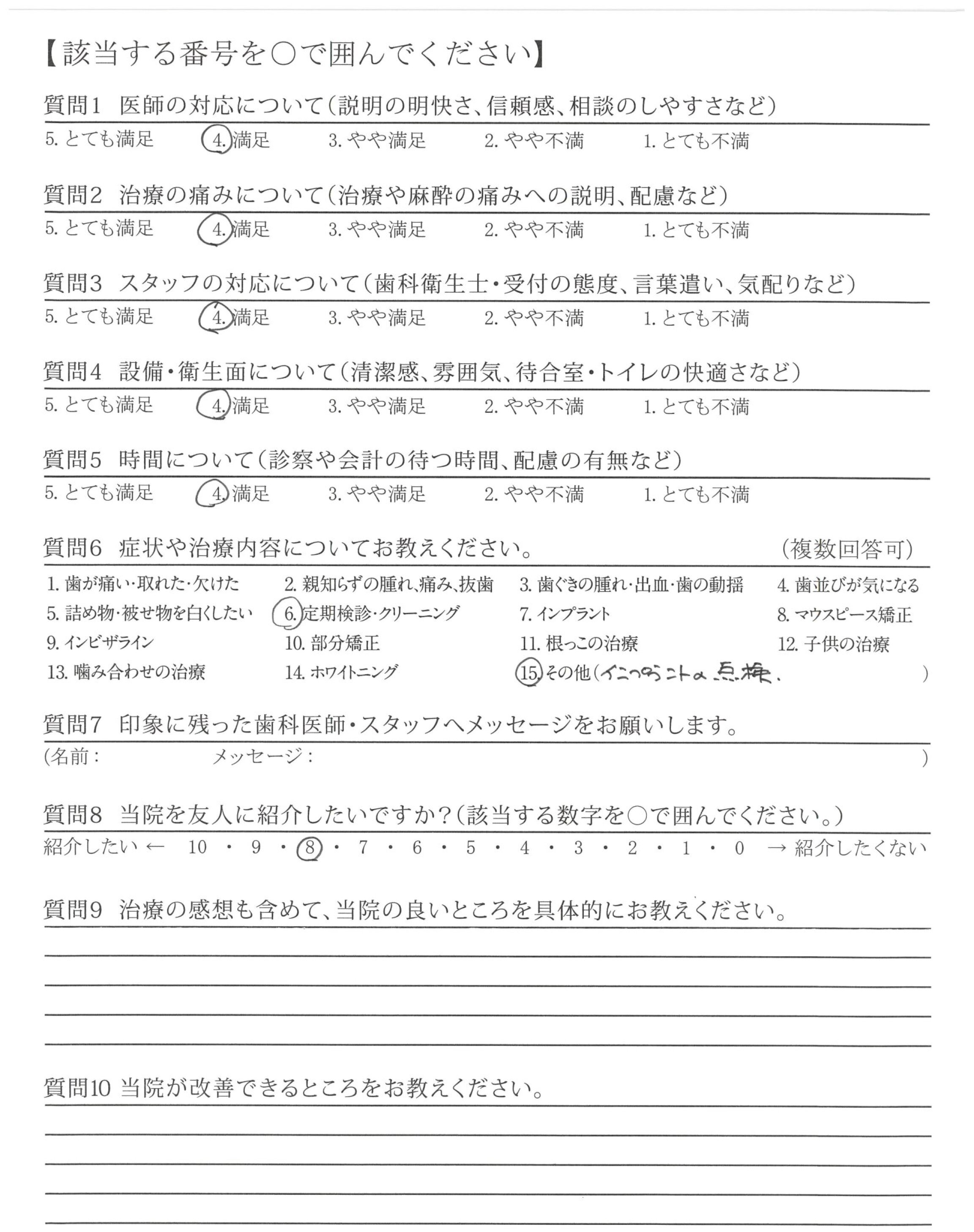 相談にものってくださり、治療も満足です。