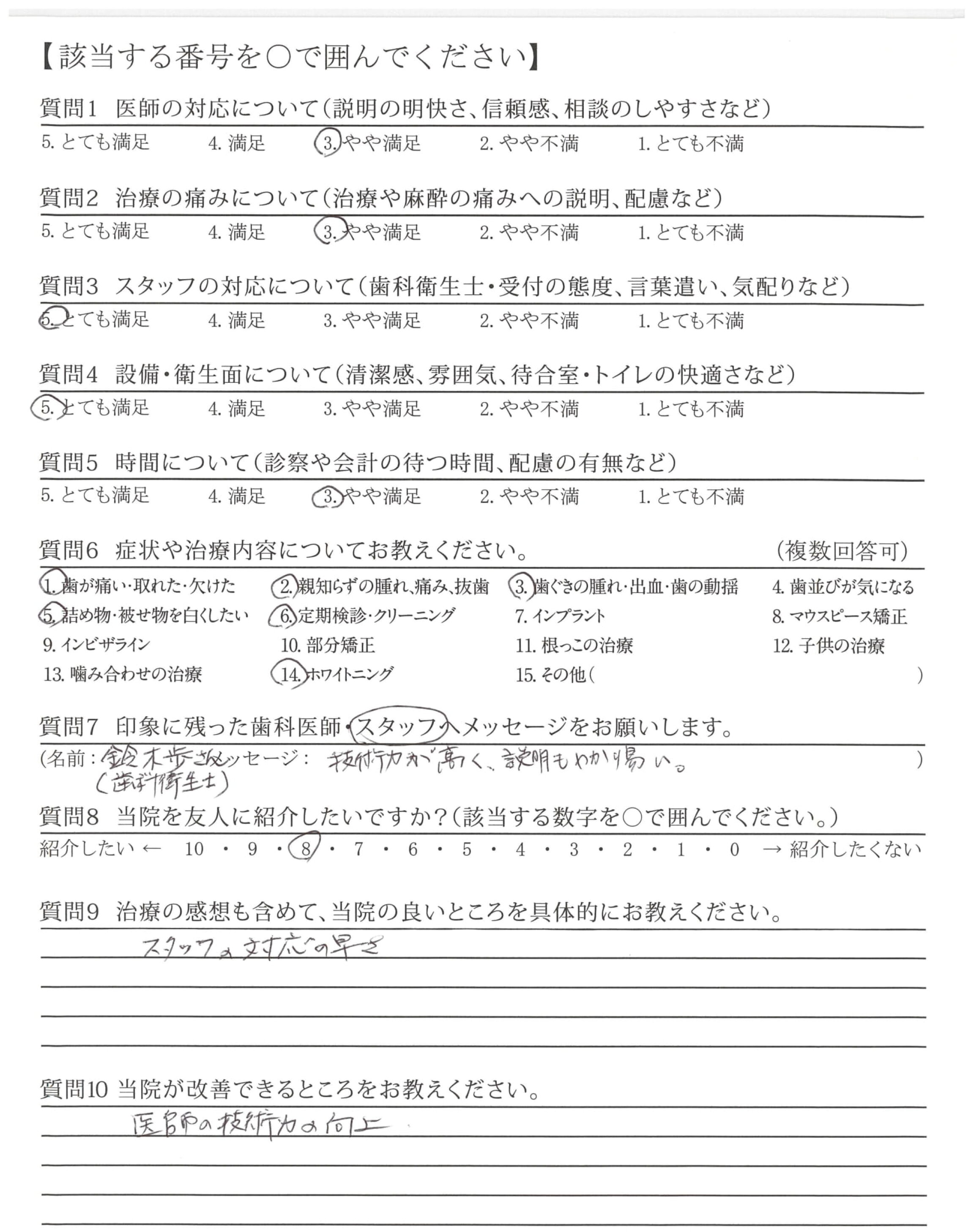 痛みもなく治りょうしていただきありがとうございました。
